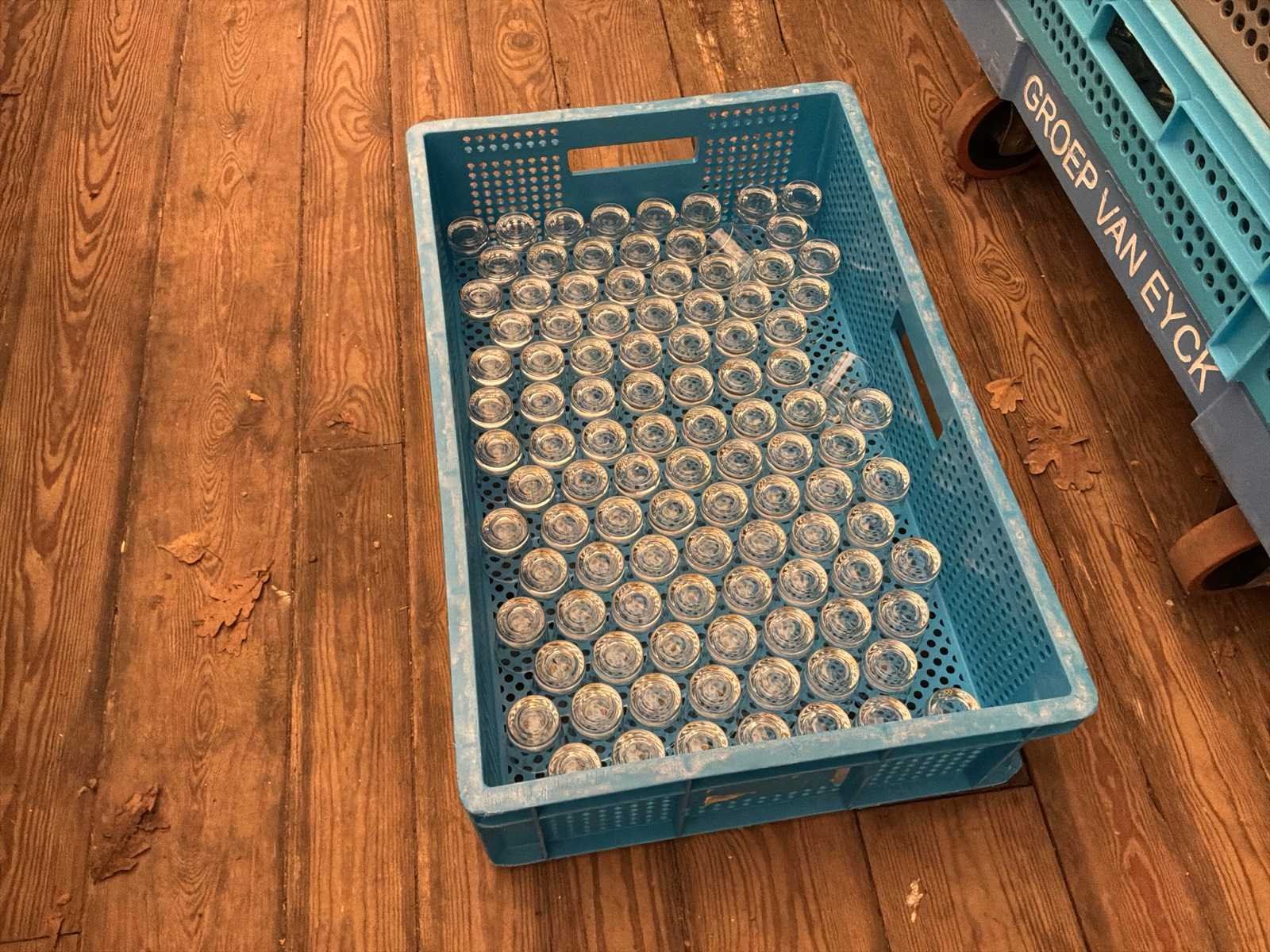 27x kist met in totaal circa 2000 jeneverglaasjes Nee