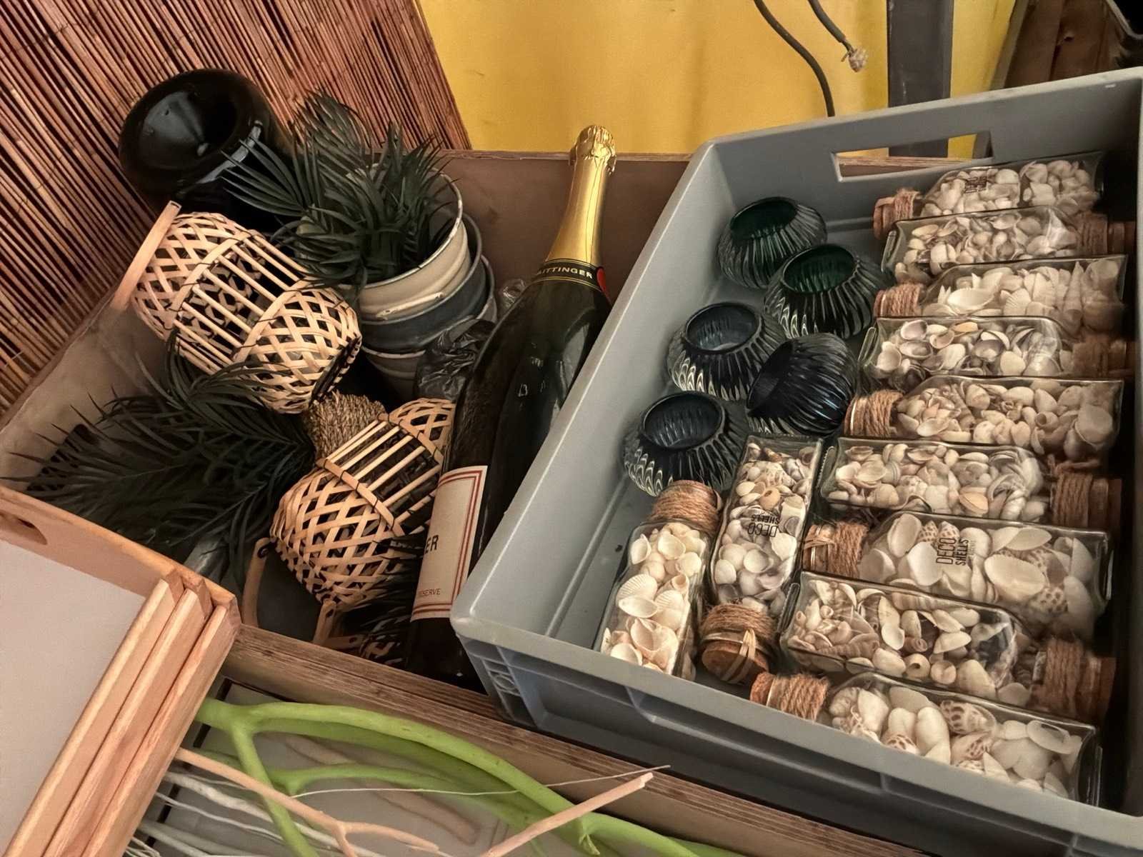 4x kist met decoratiematerialen. Inhoud niet gekend. Nee