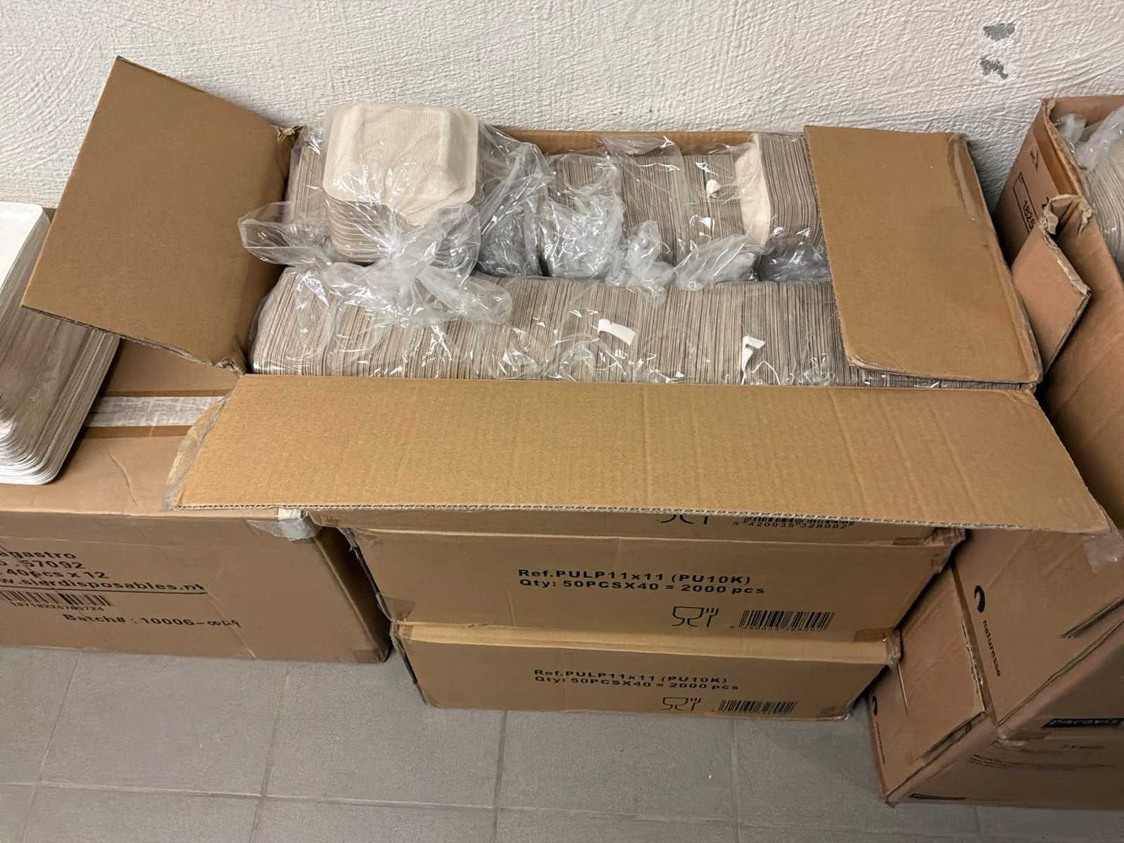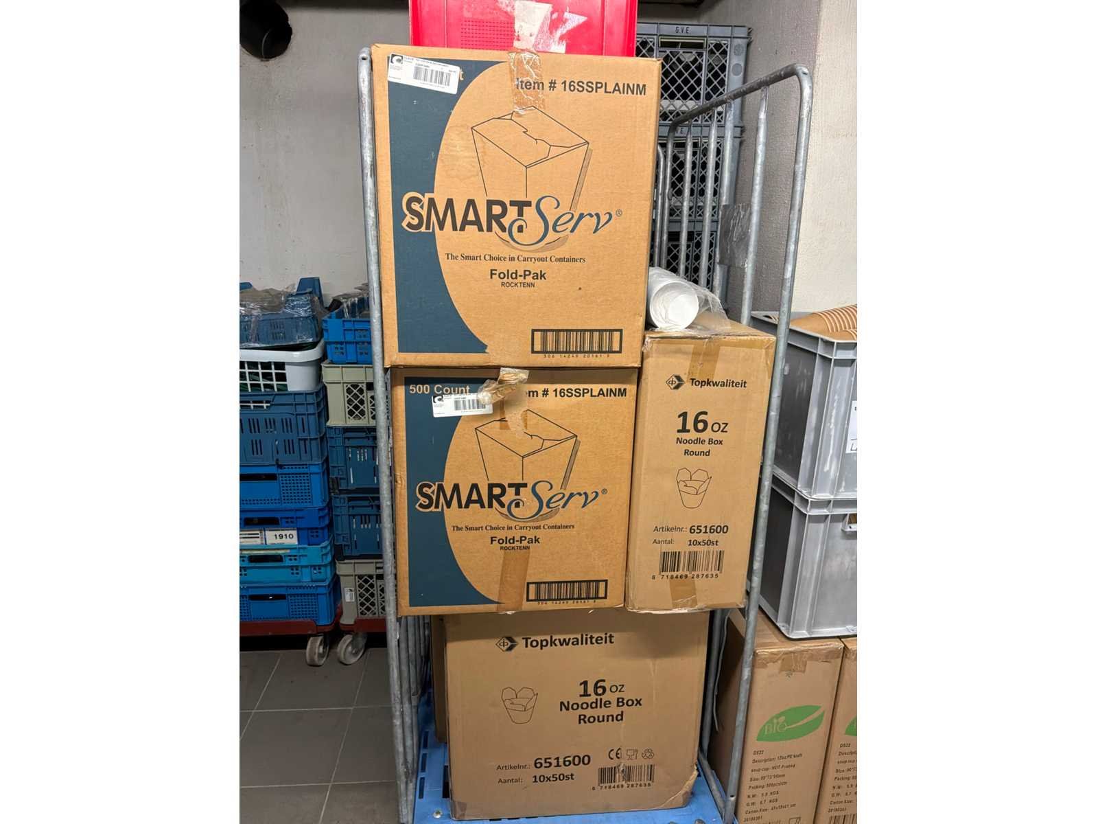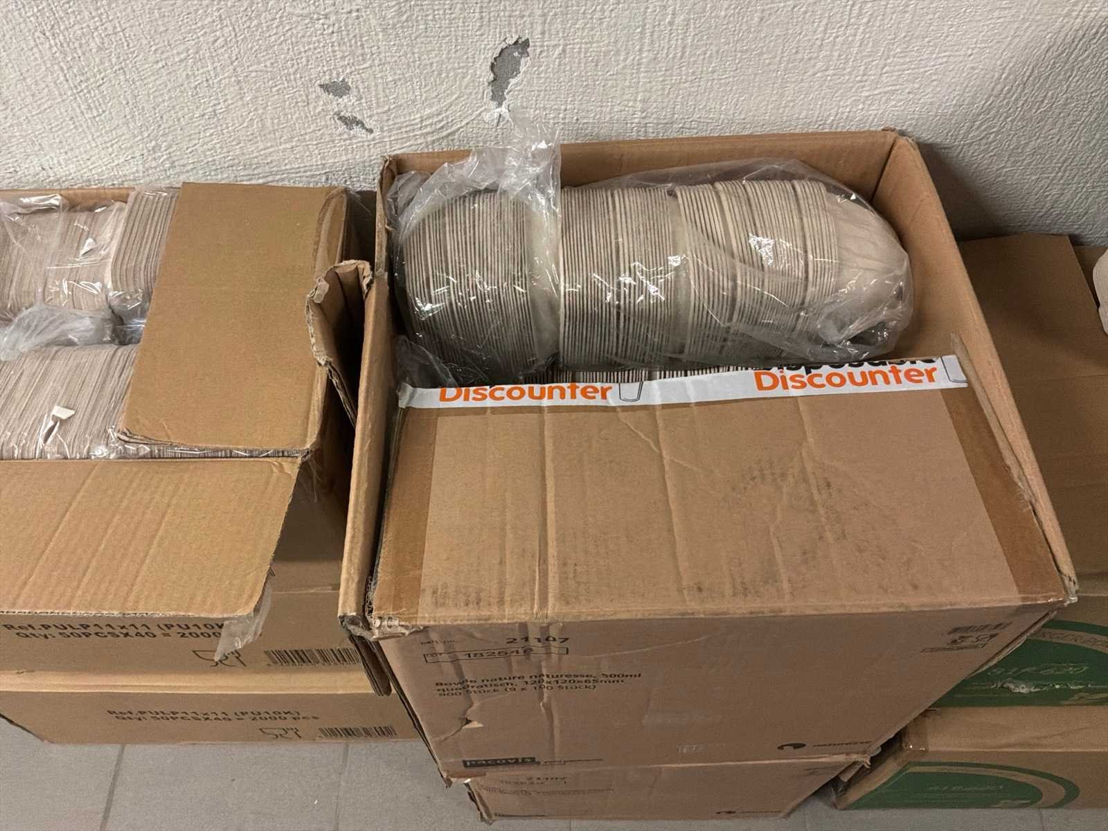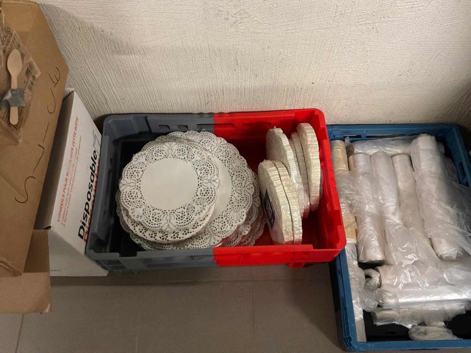 Waaronder pastacups, bestek, hamburgerbroodjes, koffiefilters, roerstokjes, theelichtjes, verpakkingsmateriaal, kommetjes, bordjes Nee