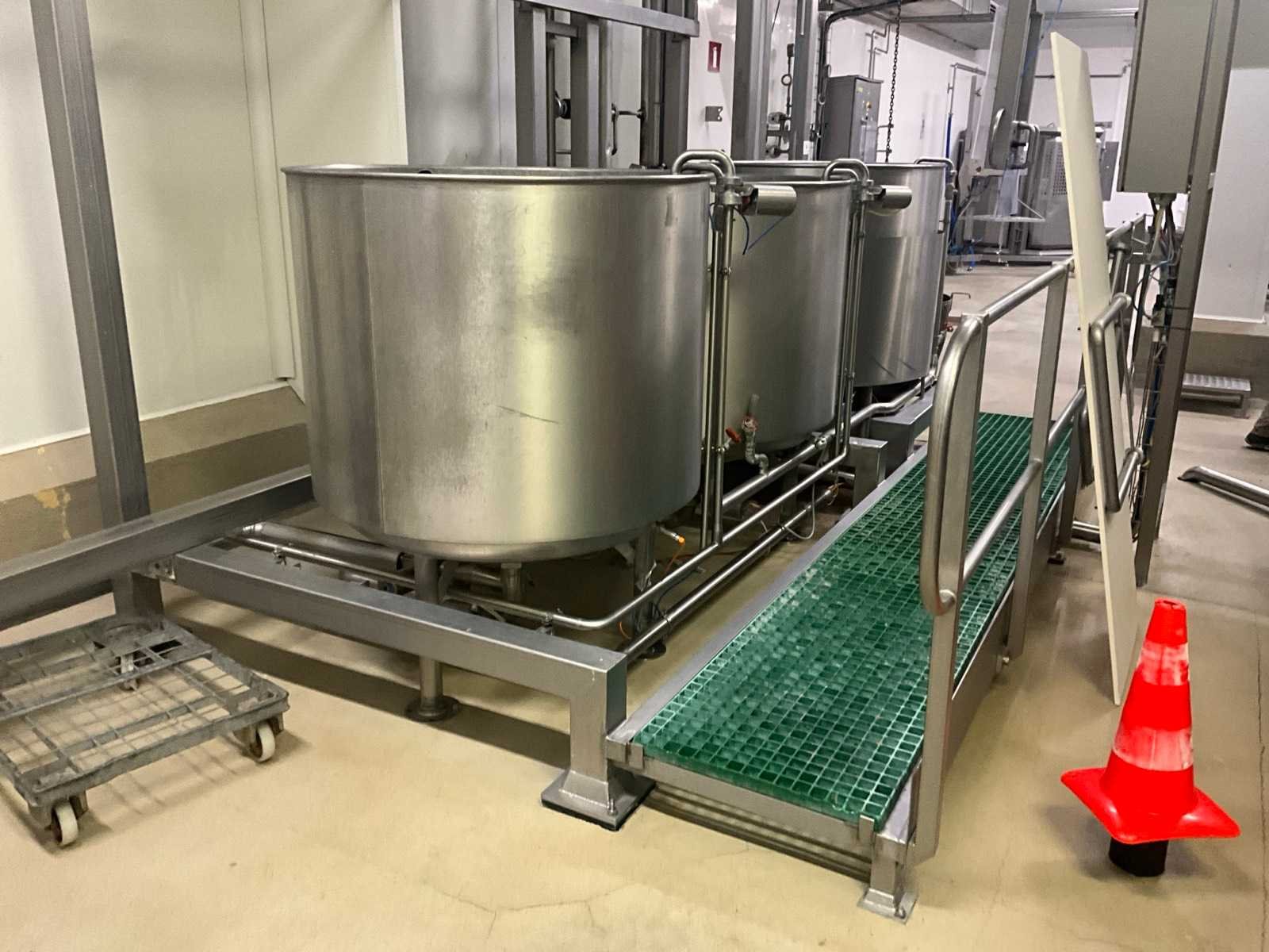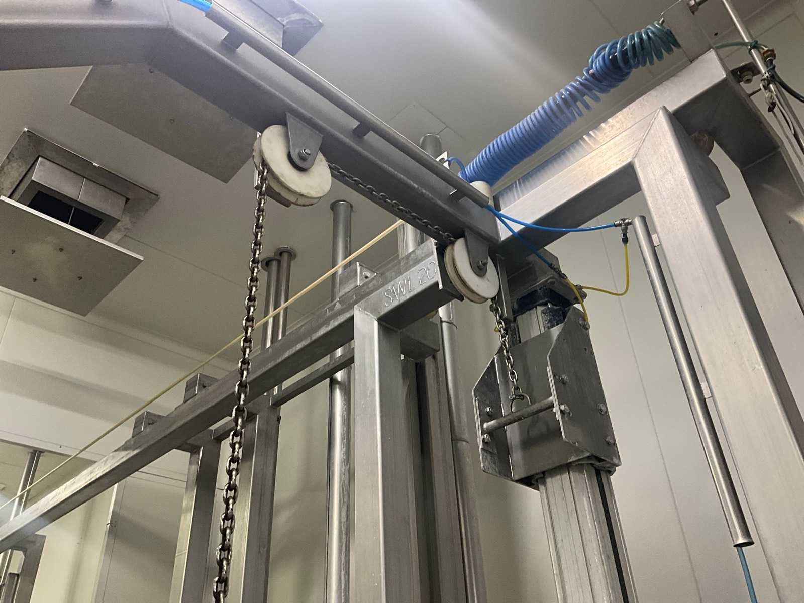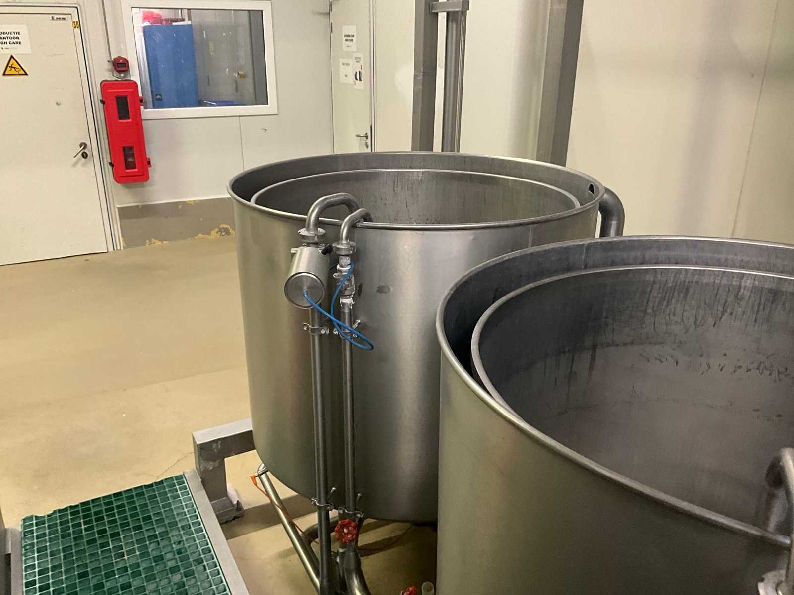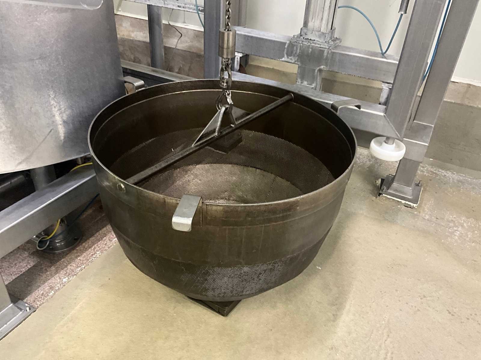 Bestaande uit 3 kookketels Alfa Laval (met afmeting 115 cm diameter en 105 cl hoog), en hefsysteem D.C. Norris & Co met uitneembaar vergiet op rolketting, met max. cap. 200 kg SWL, compleet met loopplatform en sturingskast met touch paneel Siemens Simatic. Nee Bouwjaar: 1997 Aansluiting: 400V Totale afmeting L: 6200mm Totale afmeting Breedte: 2700mm Totale afmeting Hoogte: 3250mm