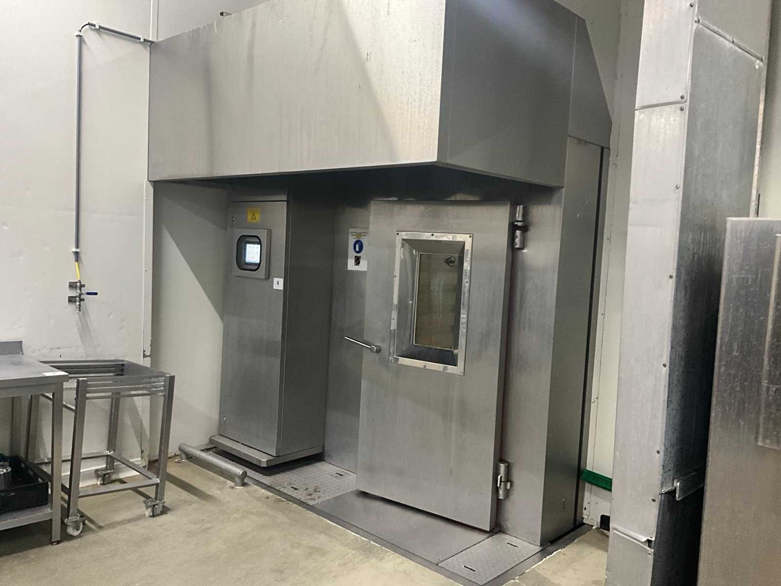 Voorzien van roteerbaar draaimechanisme, en sturingskast langs beide zijden. Mogelijkheid voor inrijkarren en met geïsoleerde deuren. Nee Merk: JBT Type: Double D Revorack Totale afmeting L: 4000mm Totale afmeting Breedte: 2800mm Totale afmeting Hoogte: 2900mm