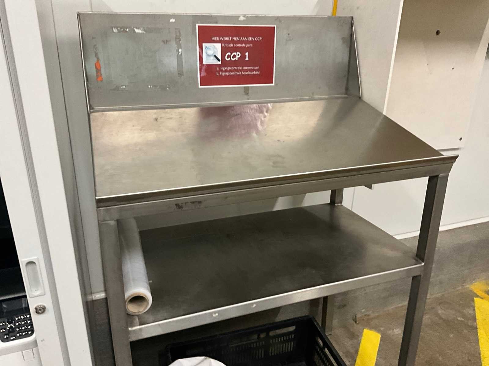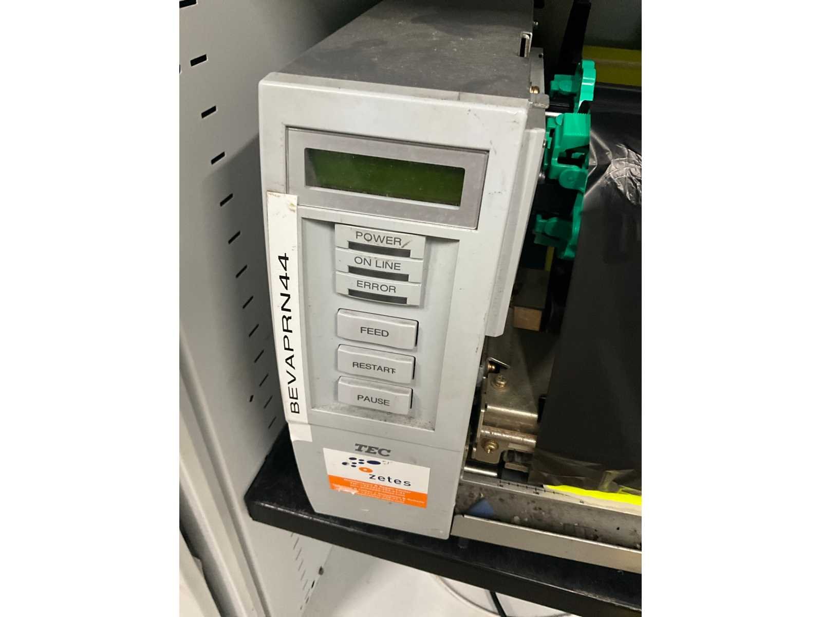 Waaronder etiketteermachine TEC type B-SX4T, compleet met printer HP LaserJet M605, in verrijdbare dossierkast van circa 100 x 60 x 172 cm hoog en rvs werkstand van circa 100 x 60 x 155 cm hoog. Nee