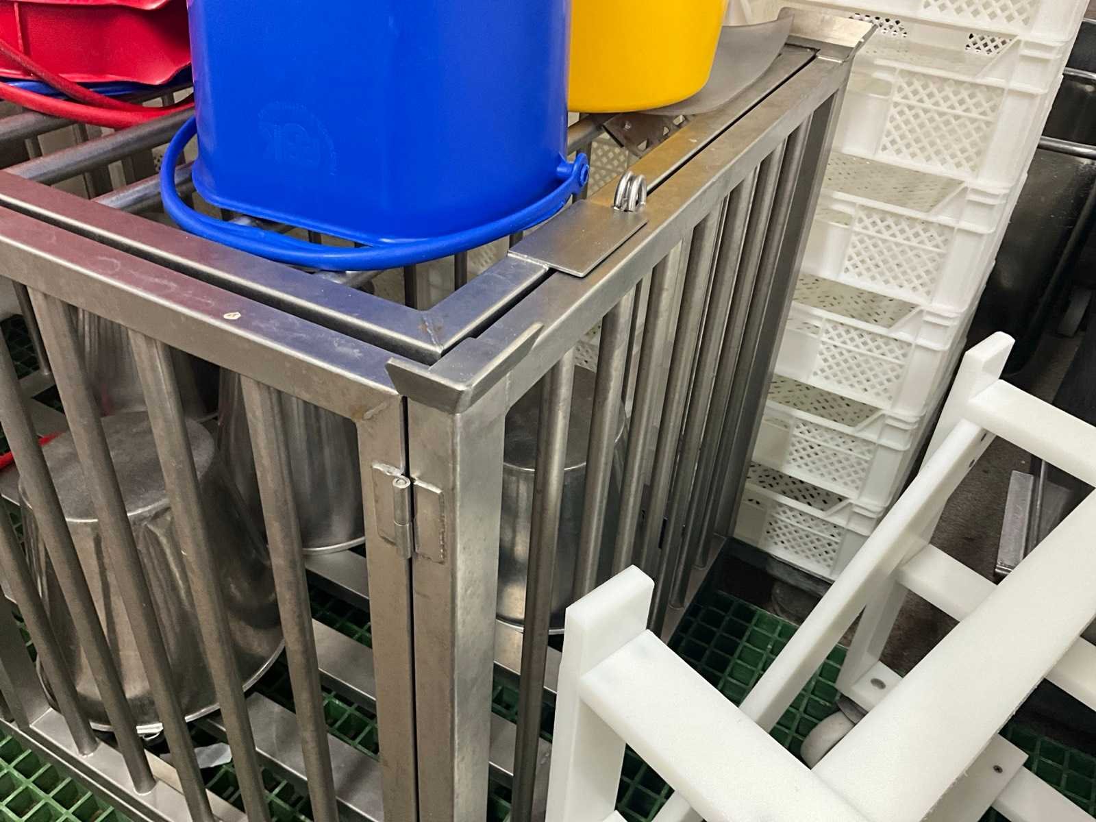 Voorzien van 2 deuren en bovenaan van klapdeksel, met inhoud van 4 rvs emmers. Nee Merk: Brokelmann Afmeting l: 1220mm Afmeting b: 830mm Afmeting h: 880mm