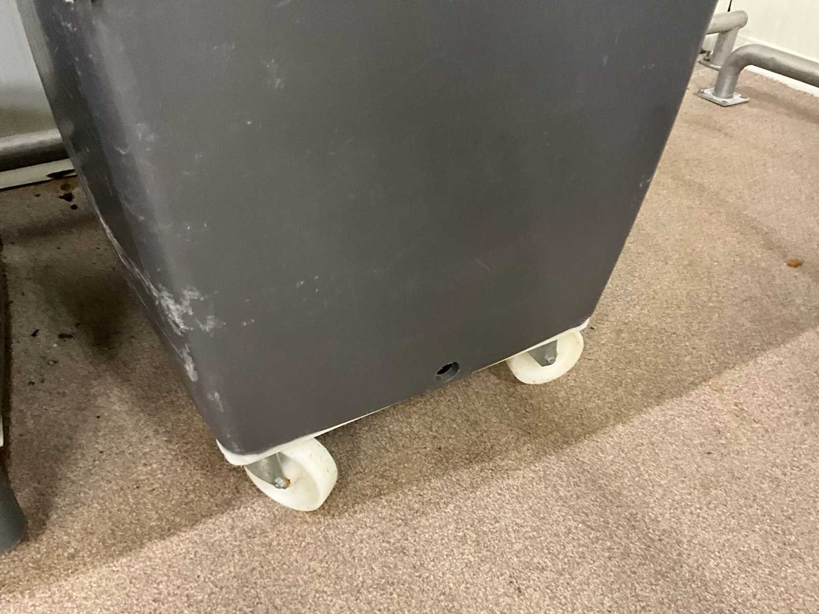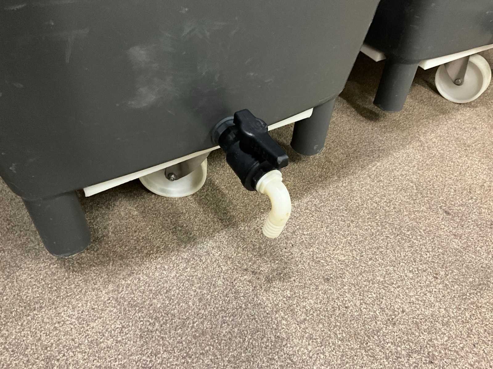 Voorzien van 2 vaste wielen en 2 zwenkwielen en 3 exemplaren met aftapkraan onderaan. Waarvan 1 met vergiet. Nee Totale afmeting L: 700mm Totale afmeting Breedte: 950mm Totale afmeting Hoogte: 870mm