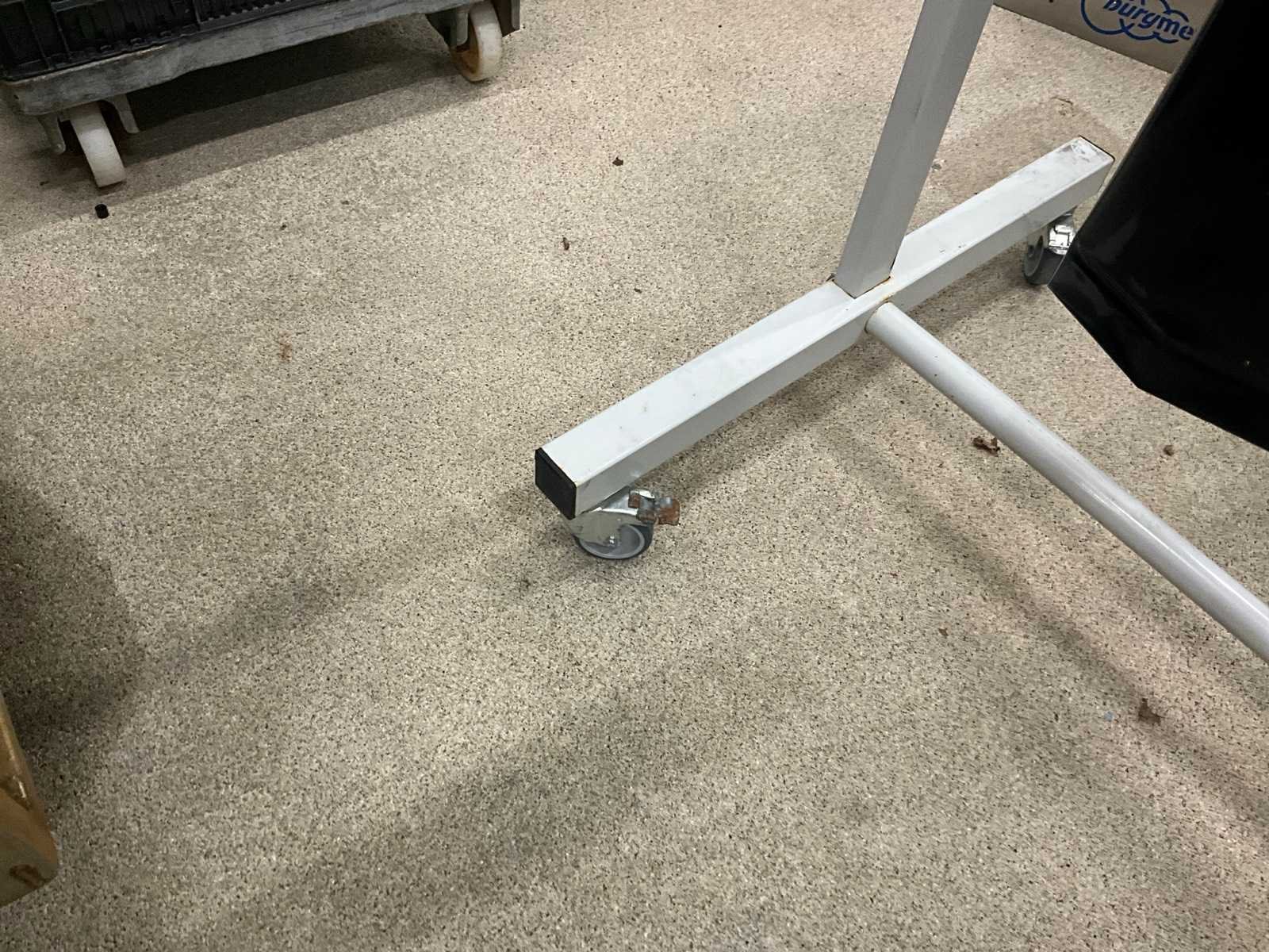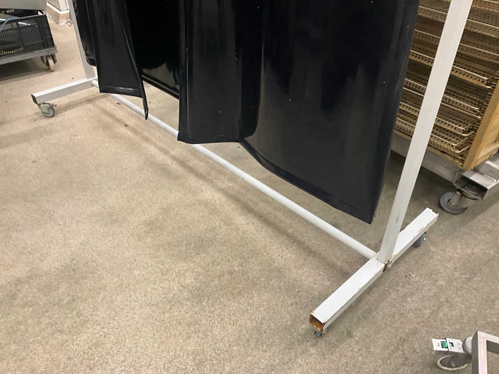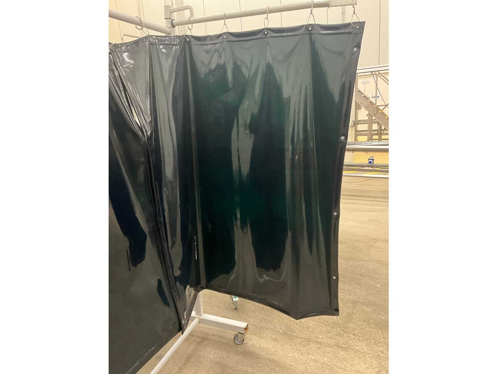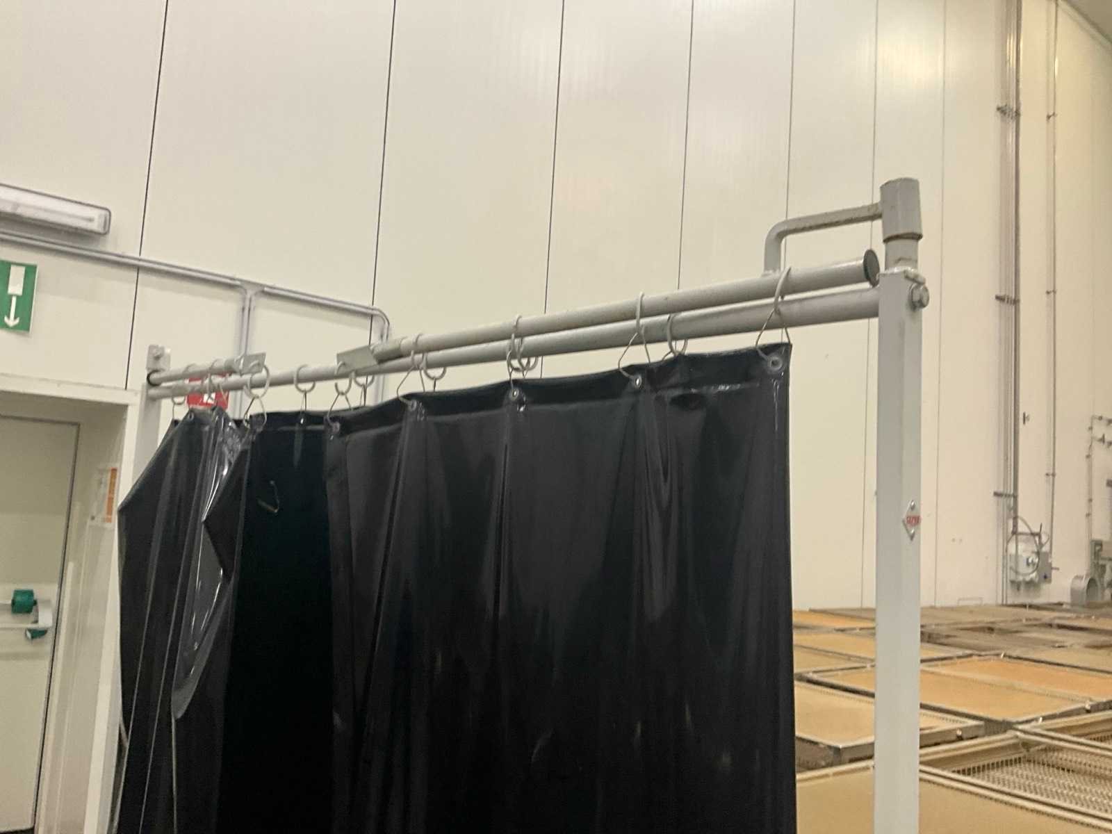 Voorzien van kunststoffen gordijn en 2 uitklapbare metalen baren/elementen van elk 100 cm. Op metalen opstelling en voorzien van 4 zwenkwielen waarvan 2 met rem. Nee Merk: CEPRO Lengte: 210cm Breedte: 75cm Hoogte: 215cm