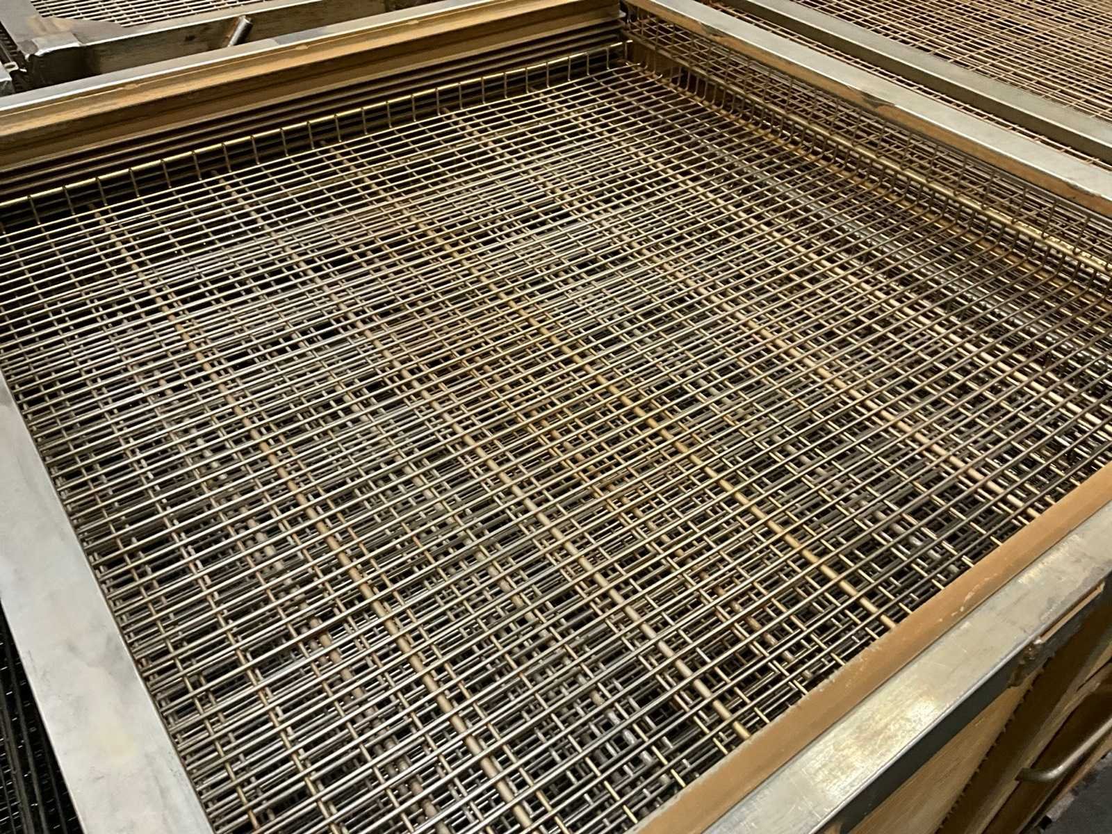 Metalen plateaukar inhoudende minimum 10 diverse roosterschalen, elk van circa 82 x 80 x 3,5 cm hoog, in diverse motieven. Afmeting elke kar : 86 x 82 x 115 cm. hoog. Voorzien van 2 zwenkwielen en 2 vaste wielen. Nee