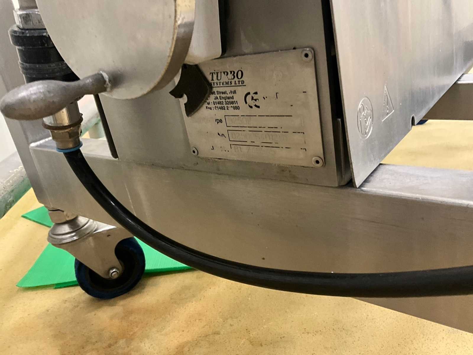 Getekend Turbo systems D250P, voorzien van trechterketel. Verrijdbaar en luchtgestuurd. Nee Merk: Sismatec Afmeting l: 1860mm Afmeting b: 640mm Afmeting h: 1380mm
