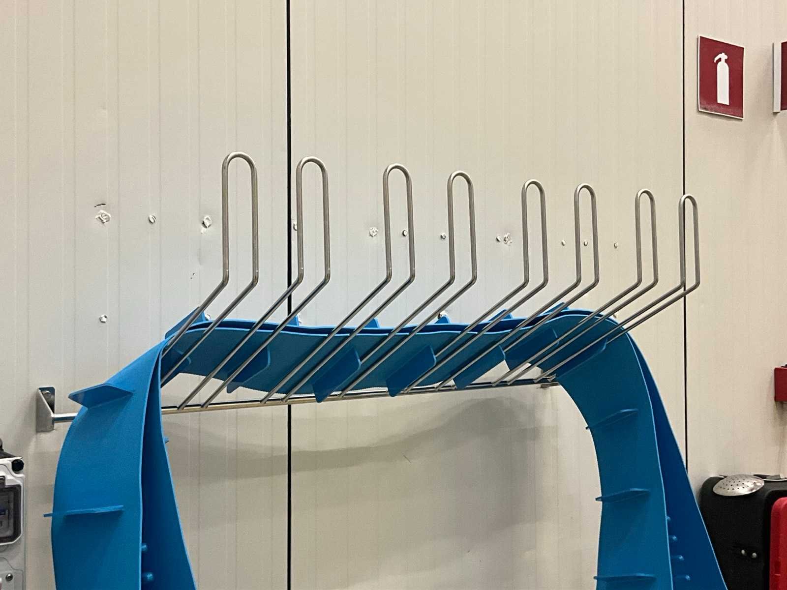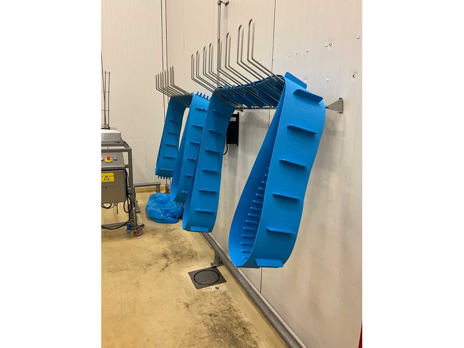 Elk voorzien van 8 haakelementen, compleet met 2 kunststoffen transportrolbanden, elk ongeveer 6 meter lang en 23 cm breed. Door koper te demonteren van wand. Nee Lengte: 115cm