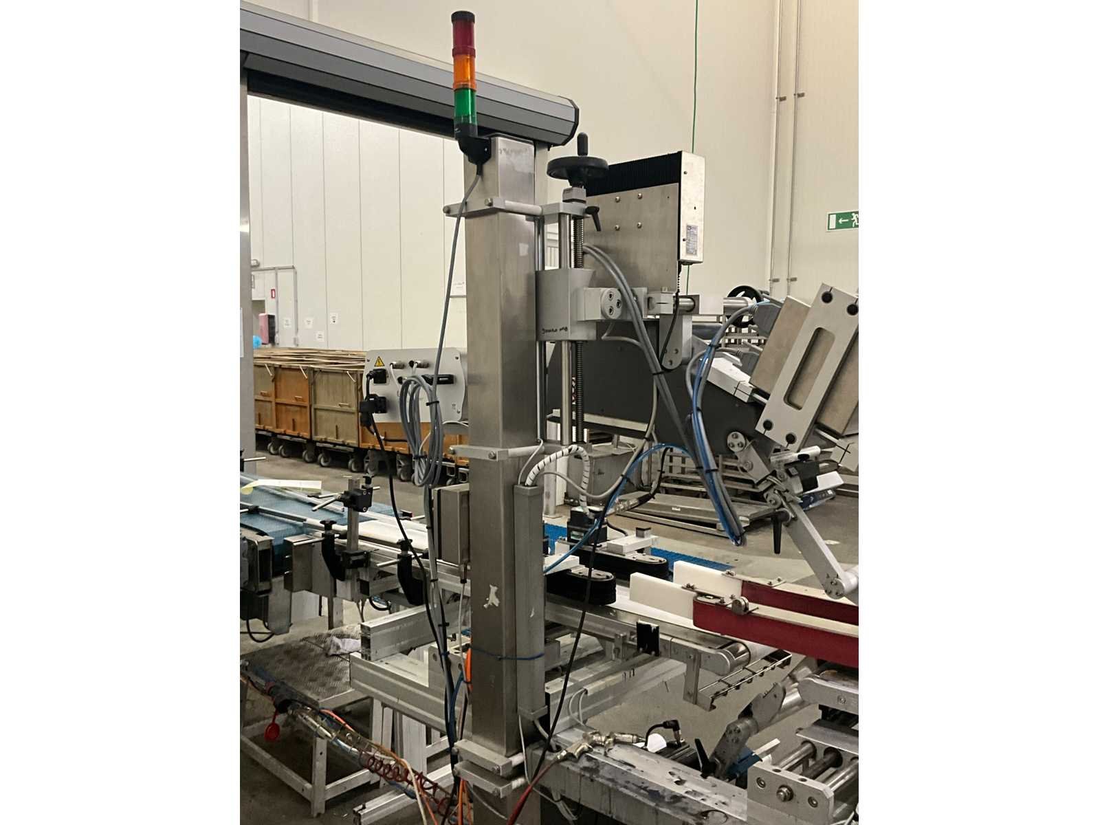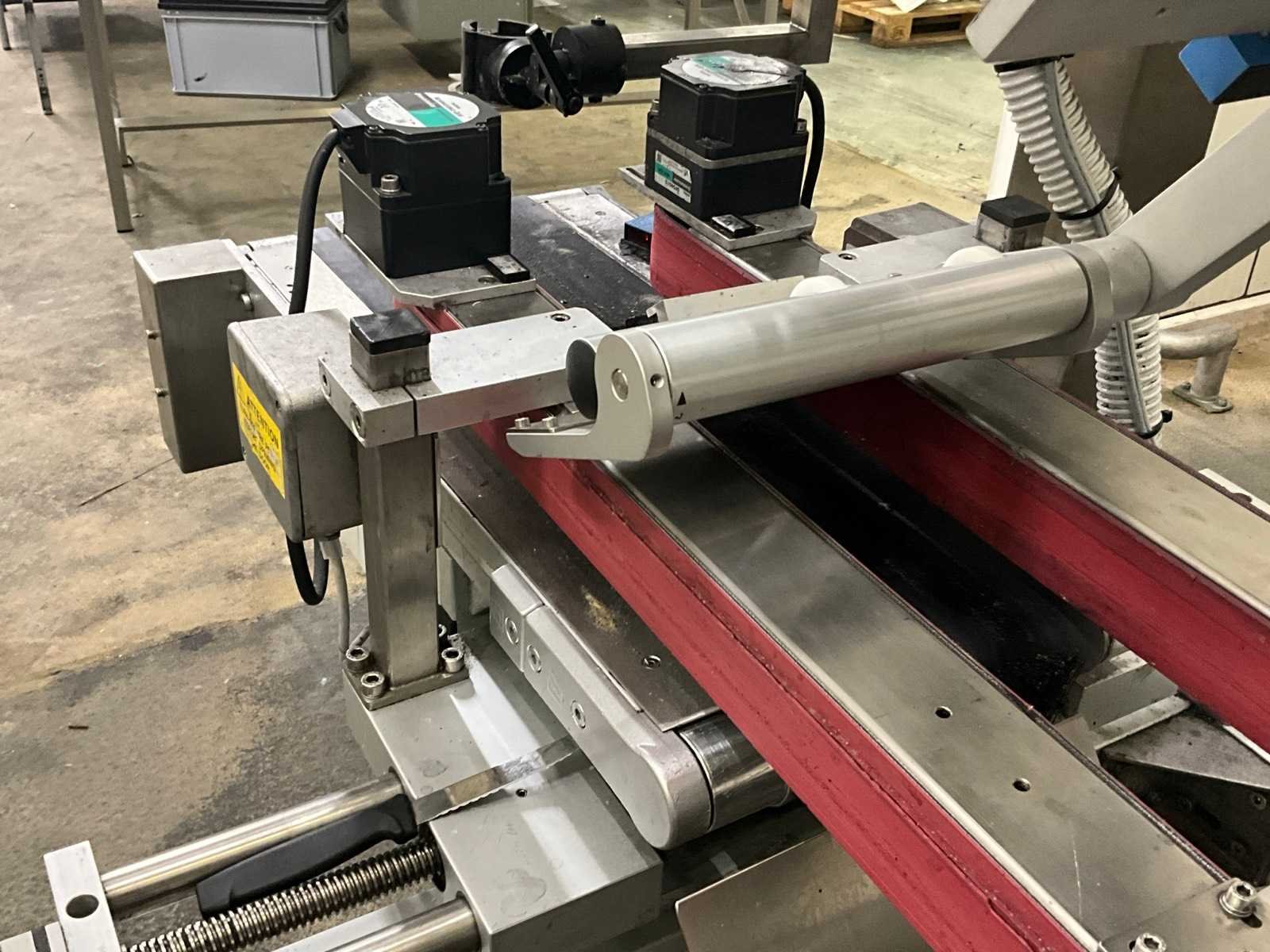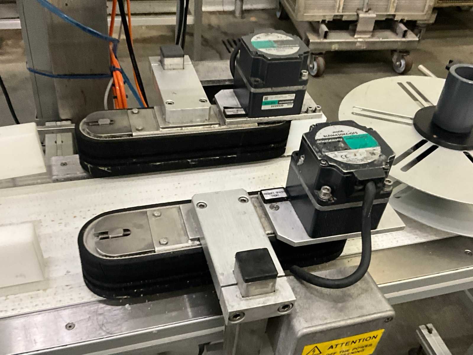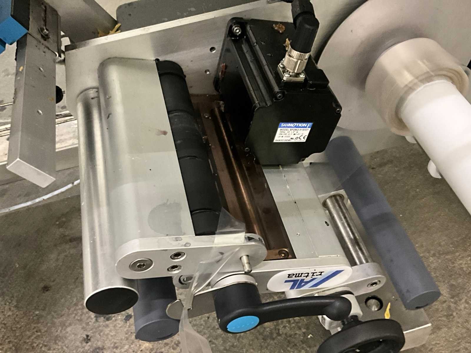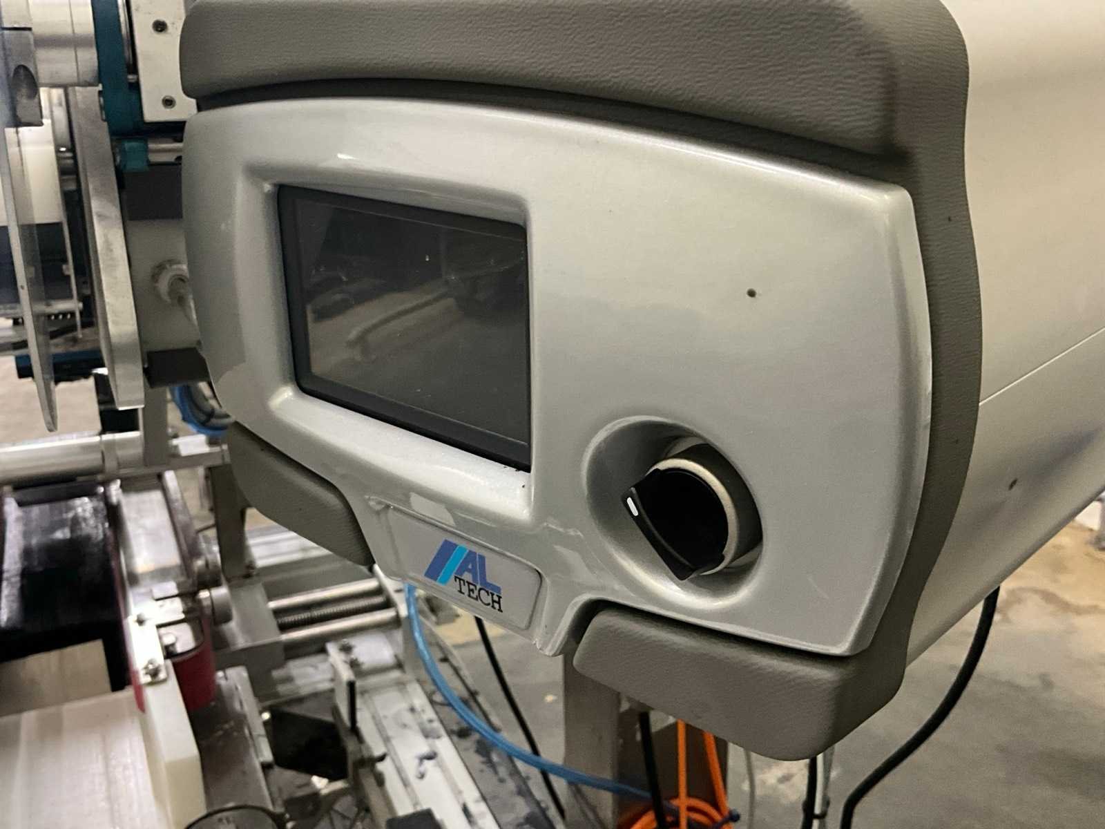 Bestaande uit etiketteermachine AL TECH model AL belt op RvS staander Getra en voorzien van verstelbare bedieningskast/monitor AL TECH, direct folie printer Carl Valentin type Dynacode II 53 - 12 met digitaal controlepaneel, 2x etiketteerkop AL ritma en bedieningskast Presa, voorzien van 2 diverse transportbanden op onderstel waaronder van 160 en 70 cm lang. Beiden banden 20 cm breed en met diverse spoelen voor etikettenrollen. Nee Merk: AL TECH Totale afmeting L: 2500mm Totale afmeting Breedte: 1000mm Totale afmeting Hoogte: 2150mm