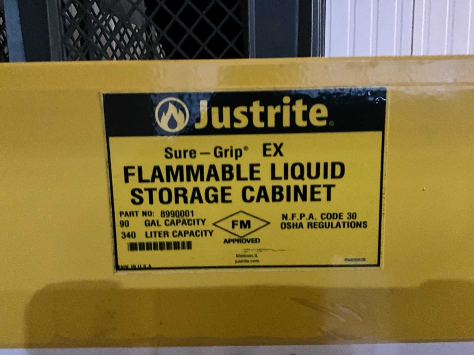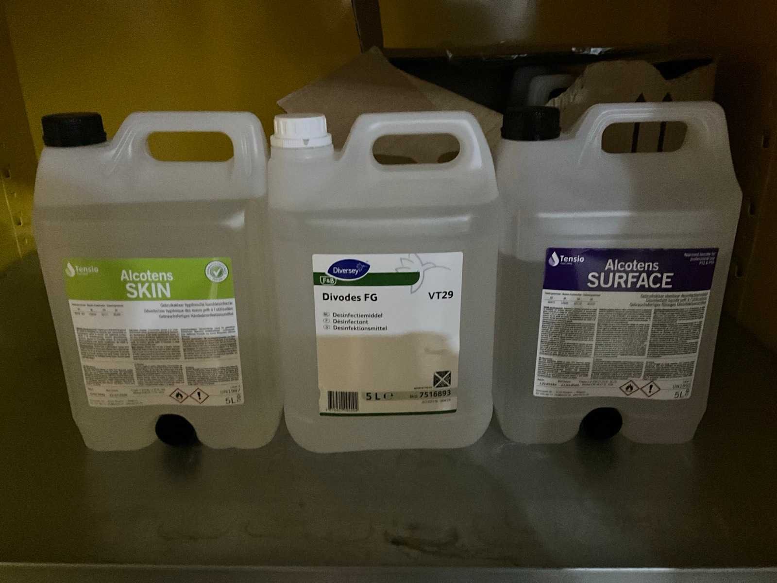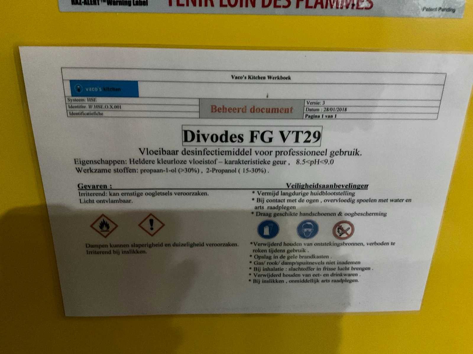 Cap 340L, inhoudende 16 diverse bussen detergenten Nee Merk: Justrite Model: Sure-grip Lengte: 1100 Breedte: 860 Hoogte: 1650