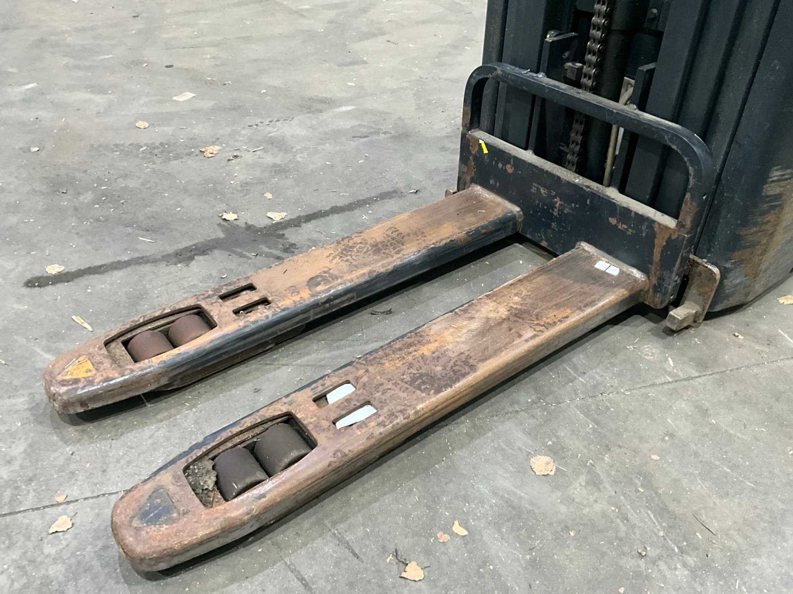 Zonder lader. Code 1258 Nee Merk: Crown Type: 2300 series Bouwjaar: 2012 Hefvermogen: 2000kg Hefhoogte: 5230mm Lepellengte: 1150mm Afgelezen urenstand: 2094 Eigen gewicht: 1622kg Minimale doorrijhoogte: 2200mm