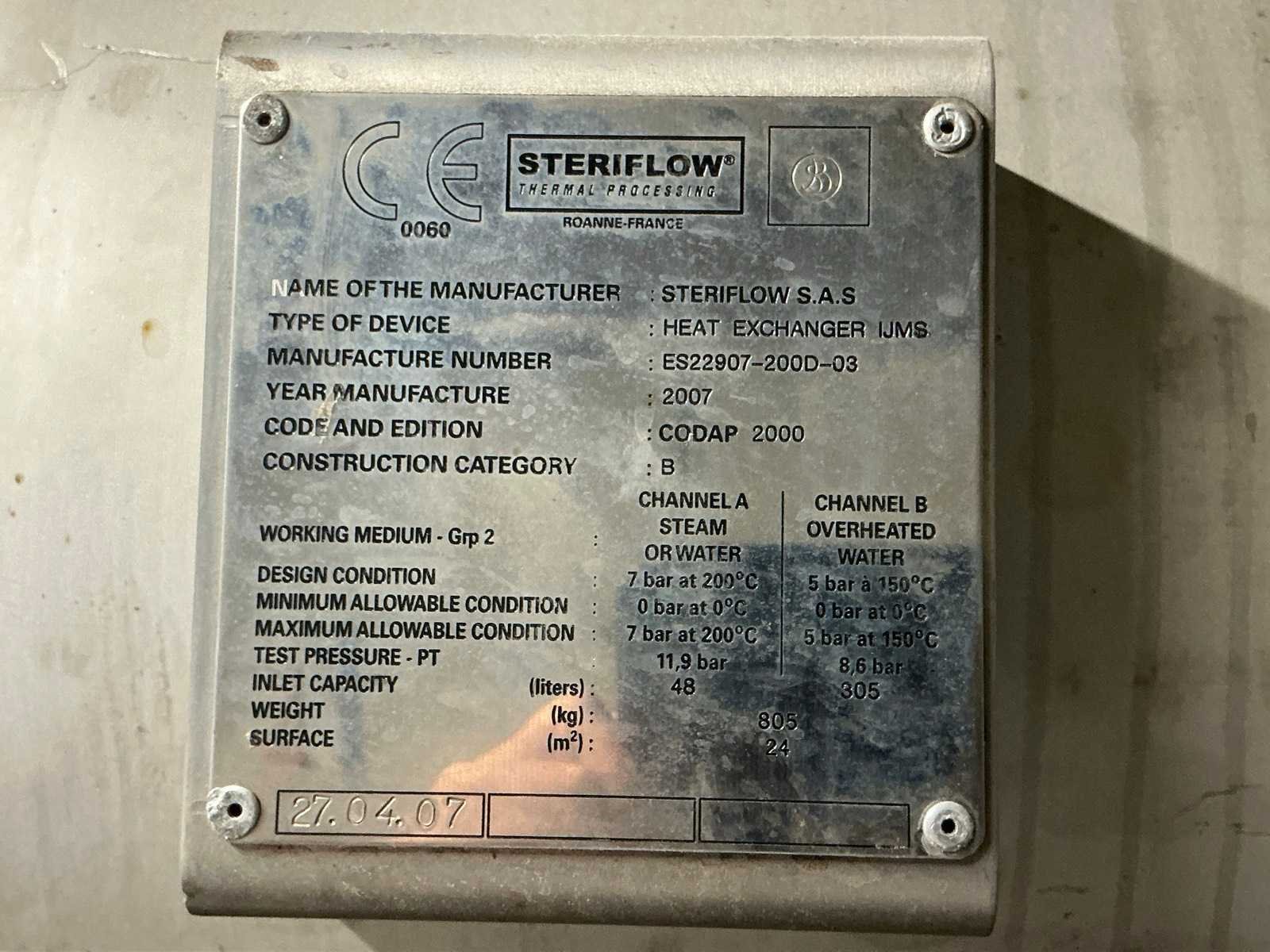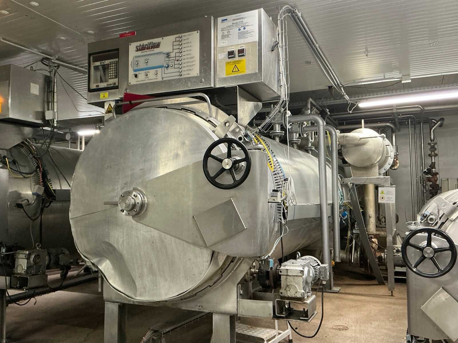 Compleet met rvs sturingskast en heat exchanger Bj2007, Door klant vakkundig te demonteren tot aan afvoer, Afgifte volgens aanwijzing Nee Merk: Barriquand Type: Steriflow Bouwjaar: 1995 Serienummer: S1072 Inhoud: 10378l Aansluiting: 400V Totale afmeting L: 10000mm Totale afmeting Breedte: 2450mm Totale afmeting Hoogte: 2650mm
