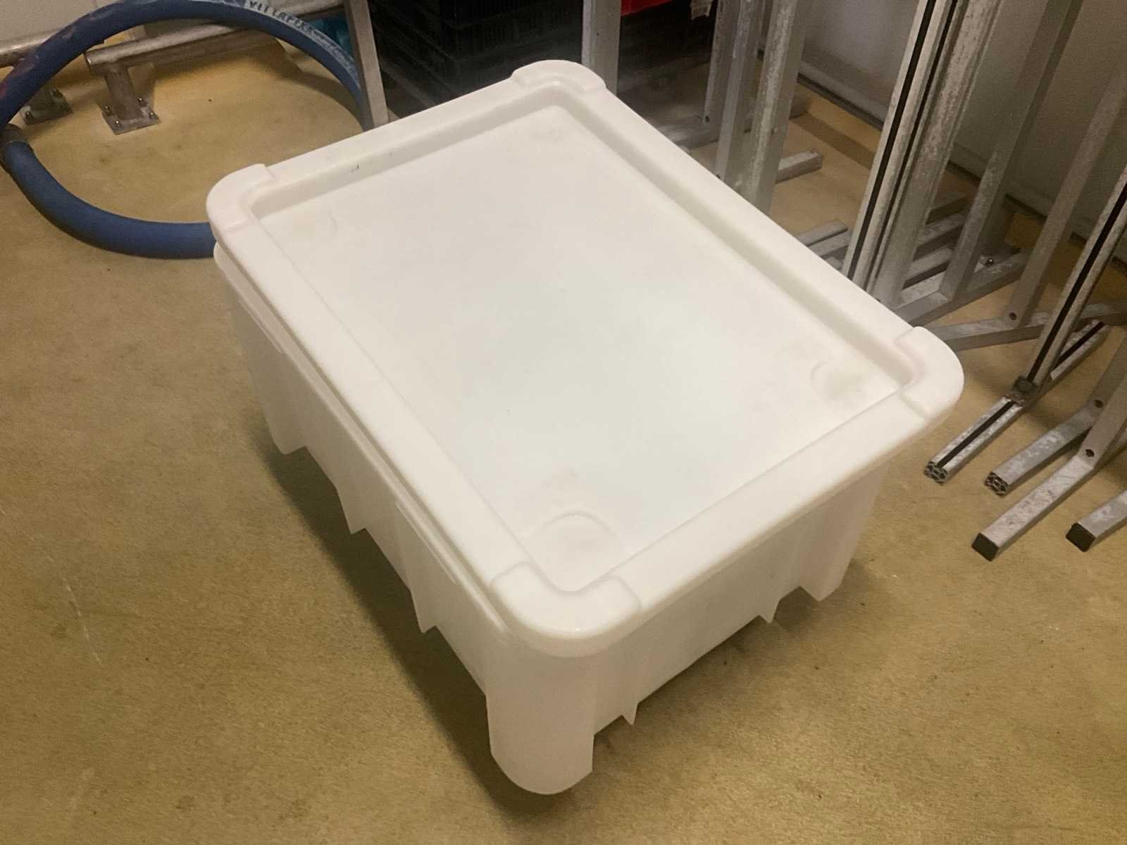 Met een maximale diameter van 40 cm en hoogte 70 cm, in pvc opbergbak voorzien van verrijdbaar onderstel, rvs handvat en deksel. Nee