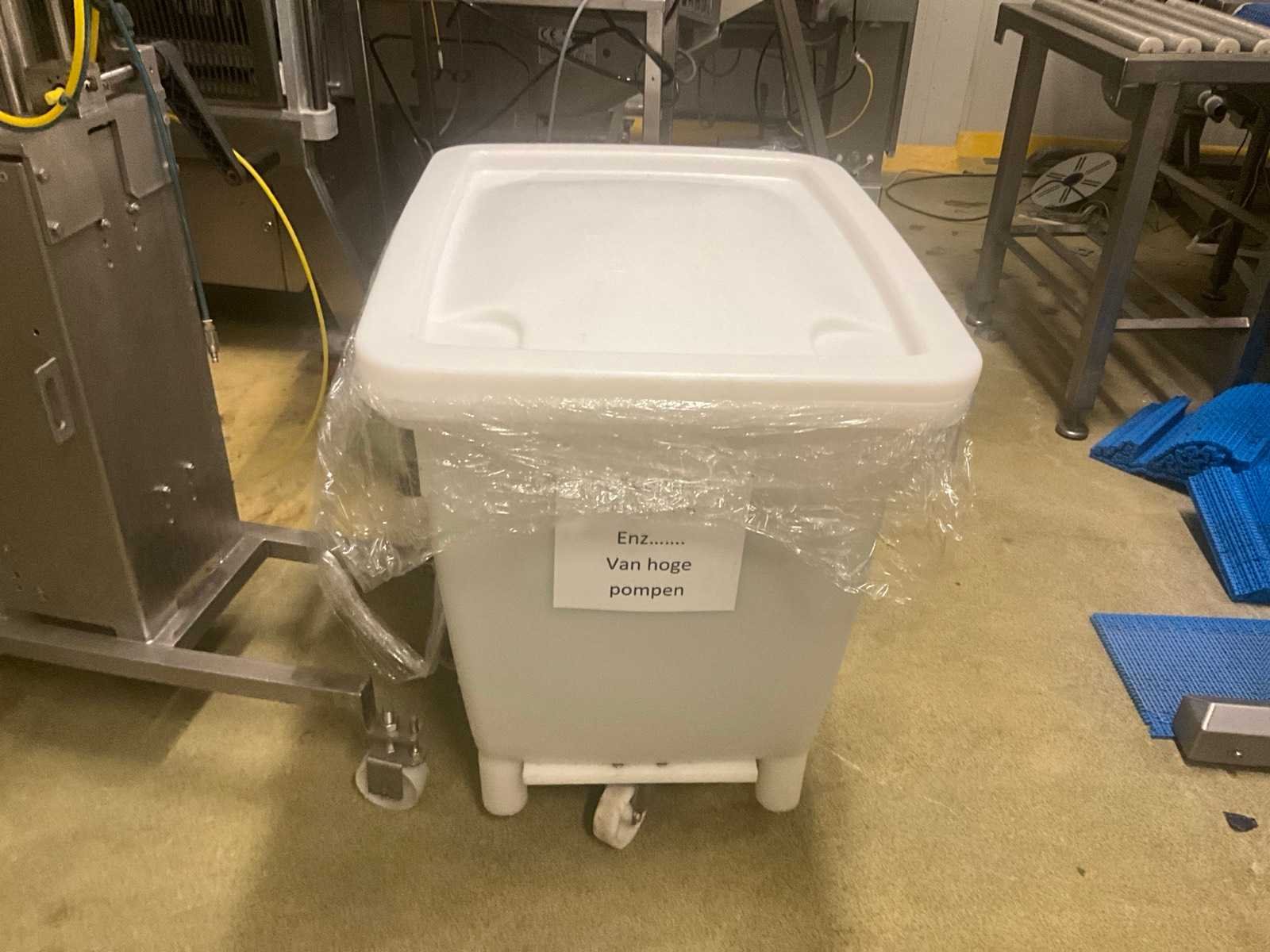 Compleet met enig rvs toebehoren/accessoires in pvc opbergbak voorzien van verrijdbaar onderstel en deksel. Nee