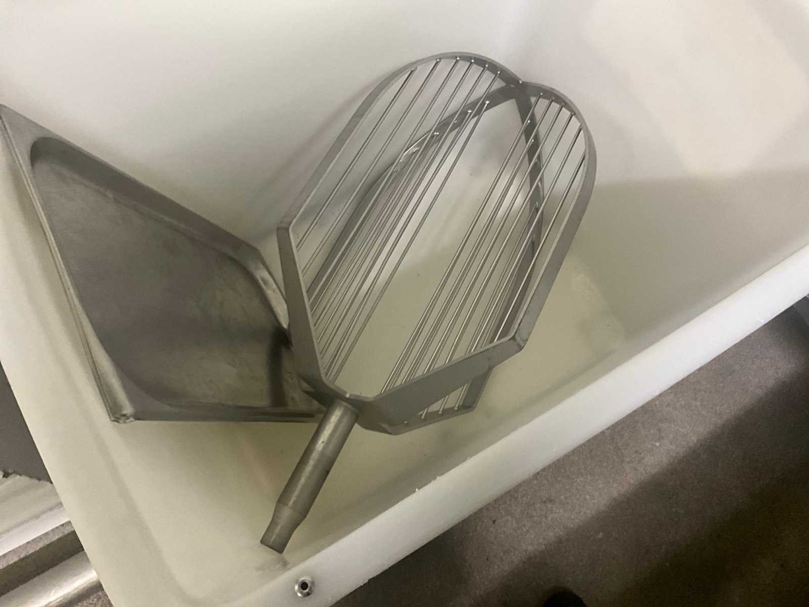 Rvs opzetstuk menger in verrijdbare pvc opslagbak en divers
