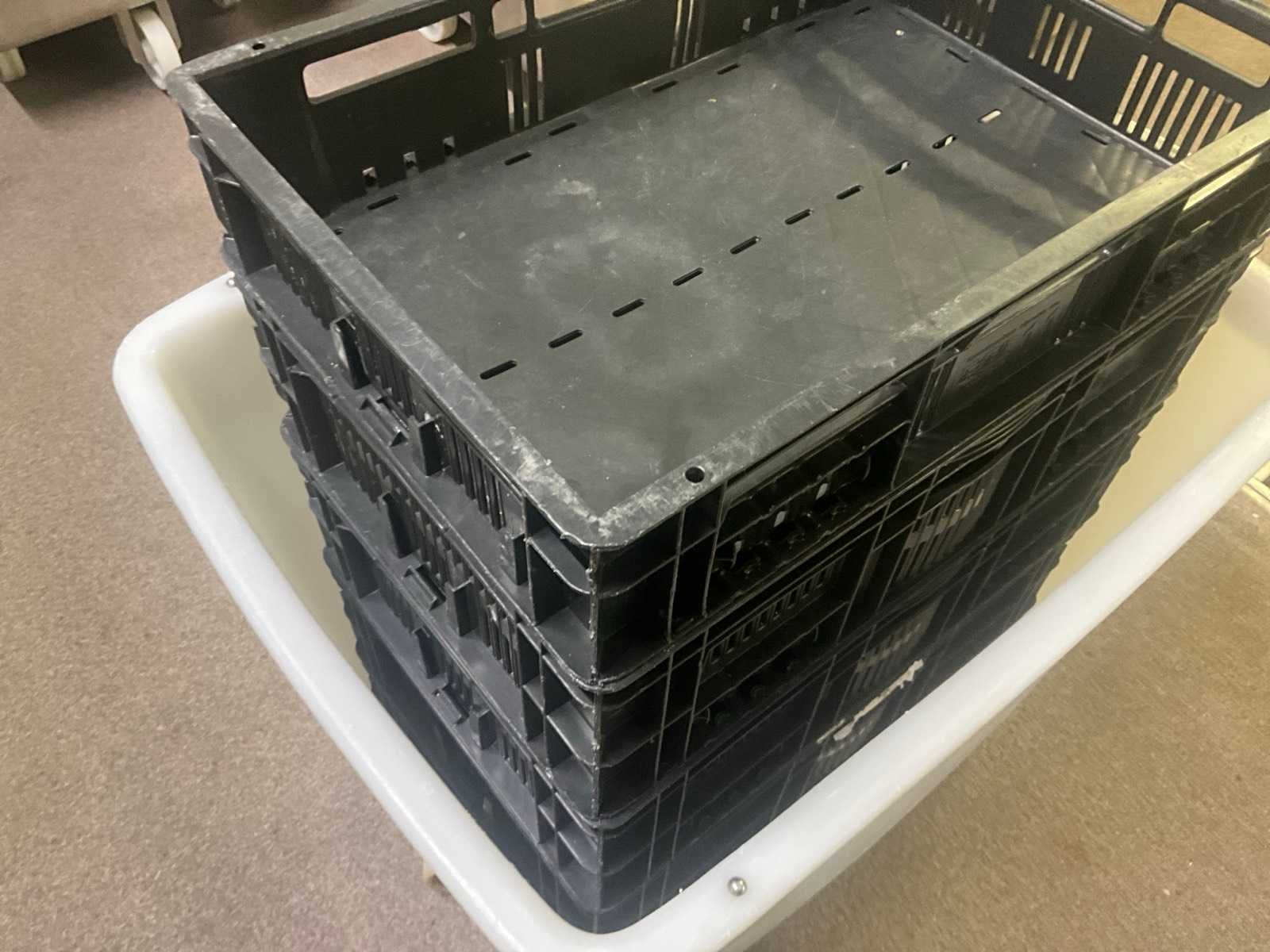 Met een maximale diameter van 30 cm en hoogte 70 cm, in pvc opbergbak voorzien van verrijdbaar onderstel ( 2 vaste en 2 zwenkwielen). Compleet met dito bak inhoudende 5 stapelbare pvc opbergbakken 60x40 cm in diverse hoogtes. Nee