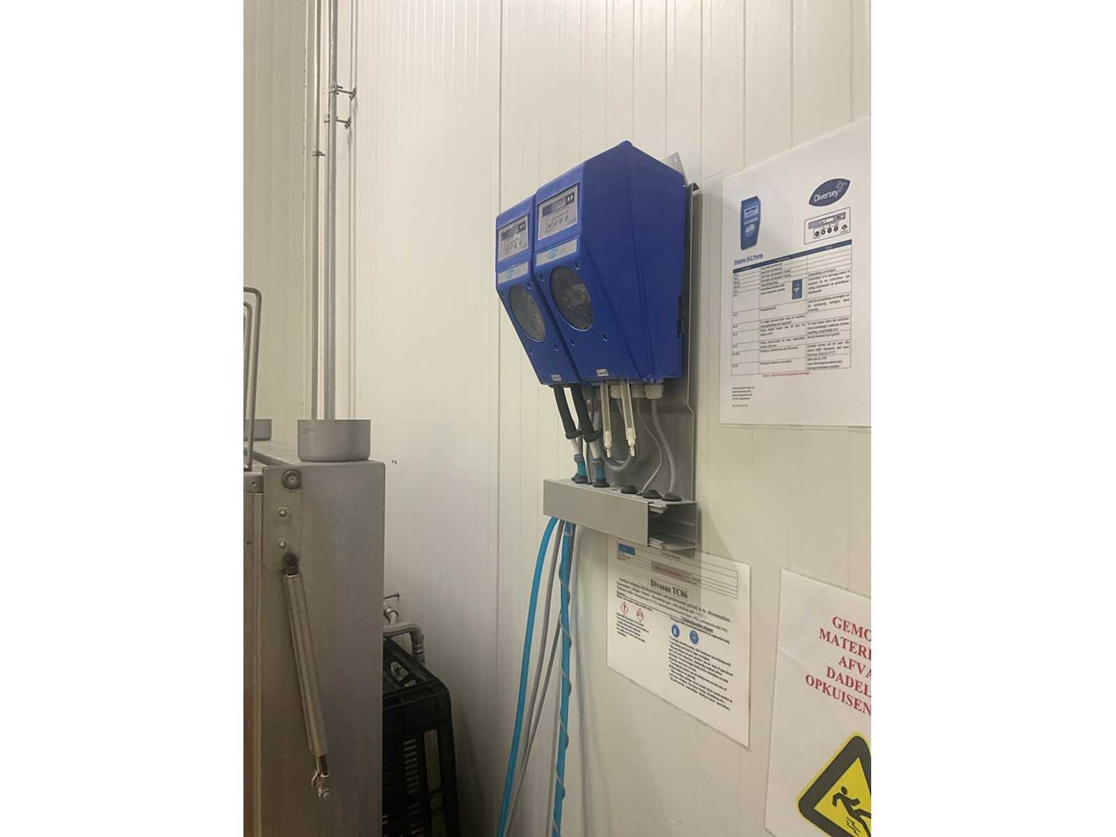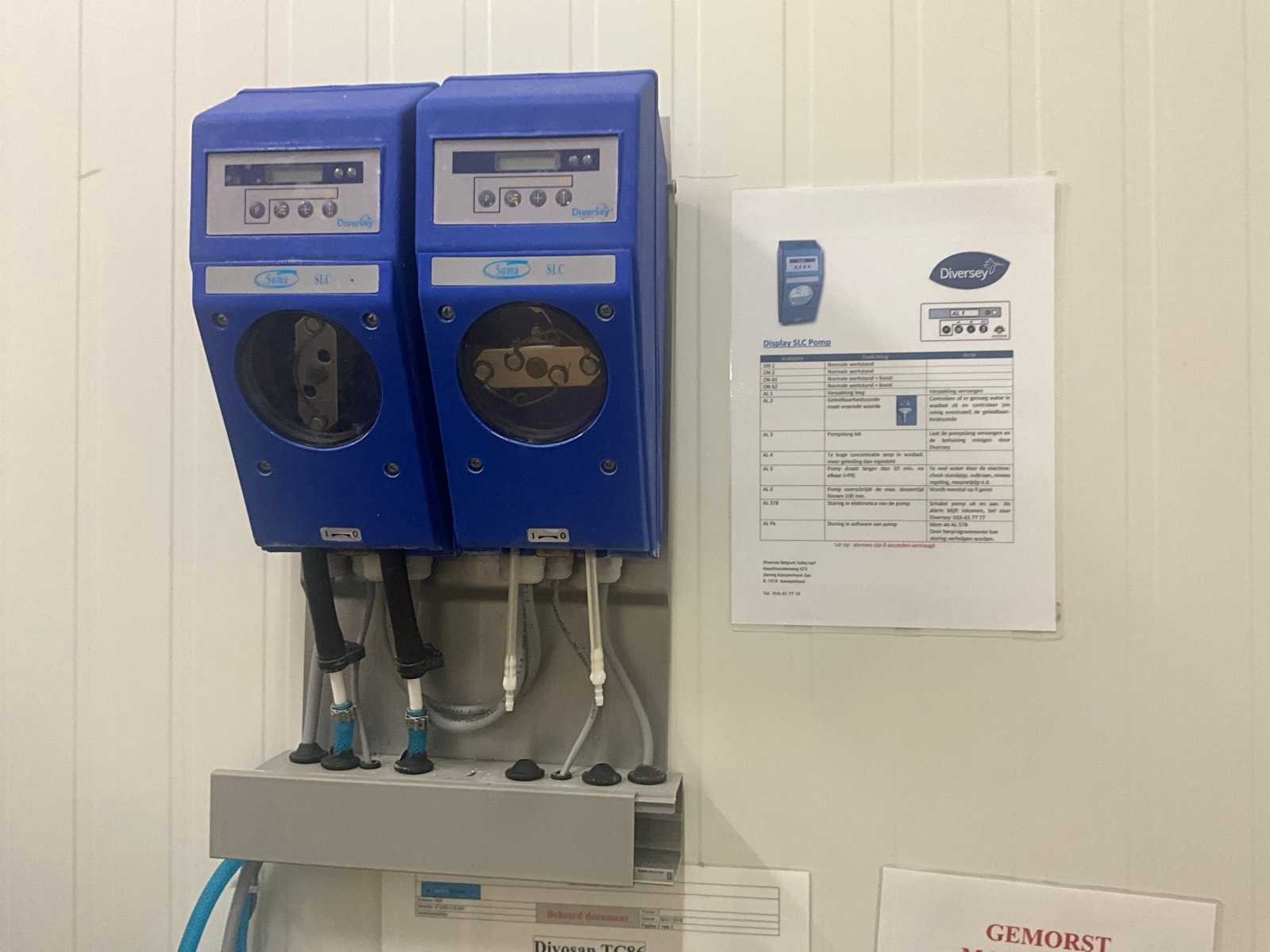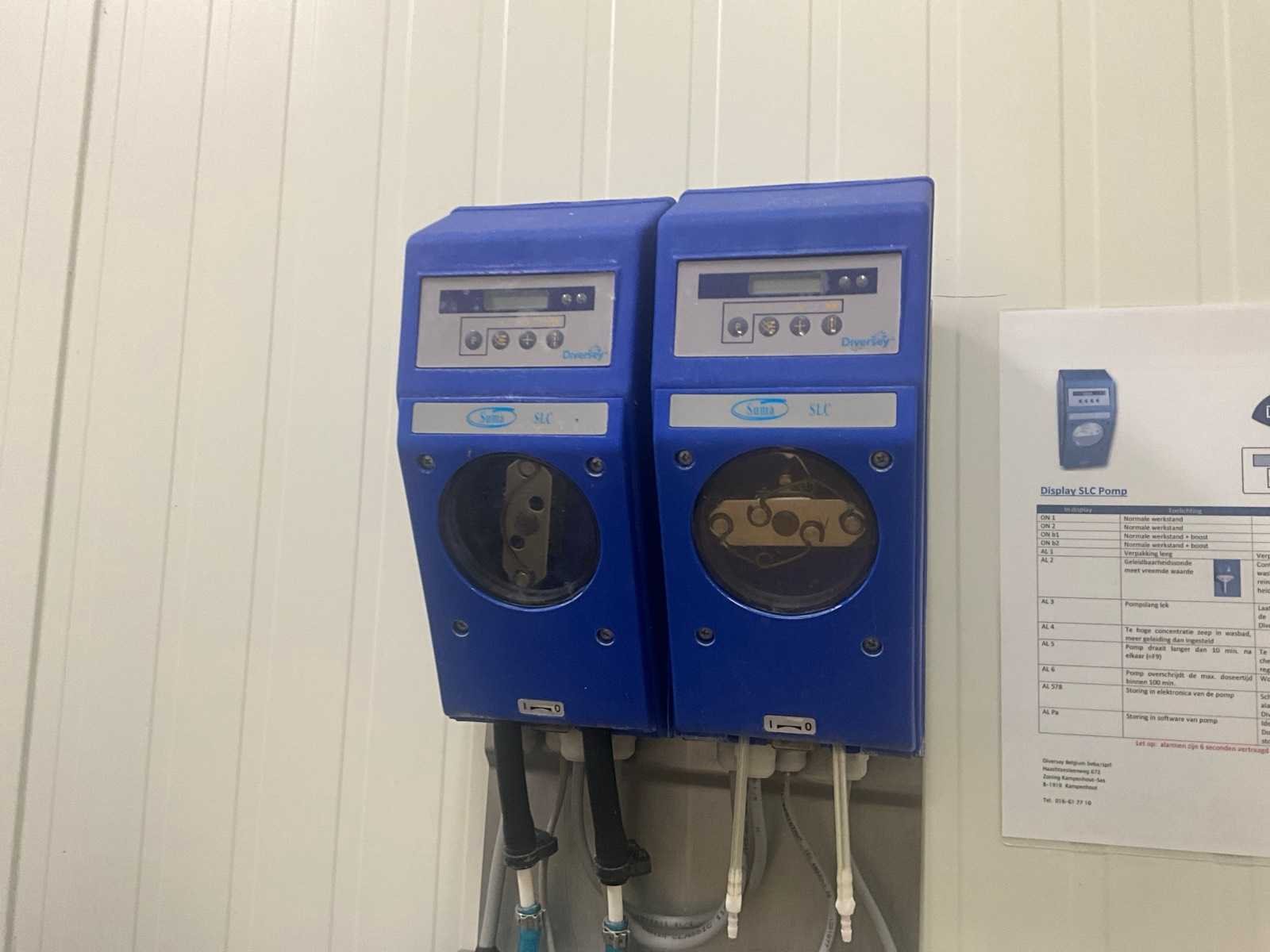 Compleet met 2 SLC pompen met display Diversey. Bovenkap opent moeilijk ! No Merk: Jeros Type: 8130 Aansluiting: 230V Totale afmeting Breedte: 770mm Lengte: 1500 Totale afmeting Hoogte: 1600mm
