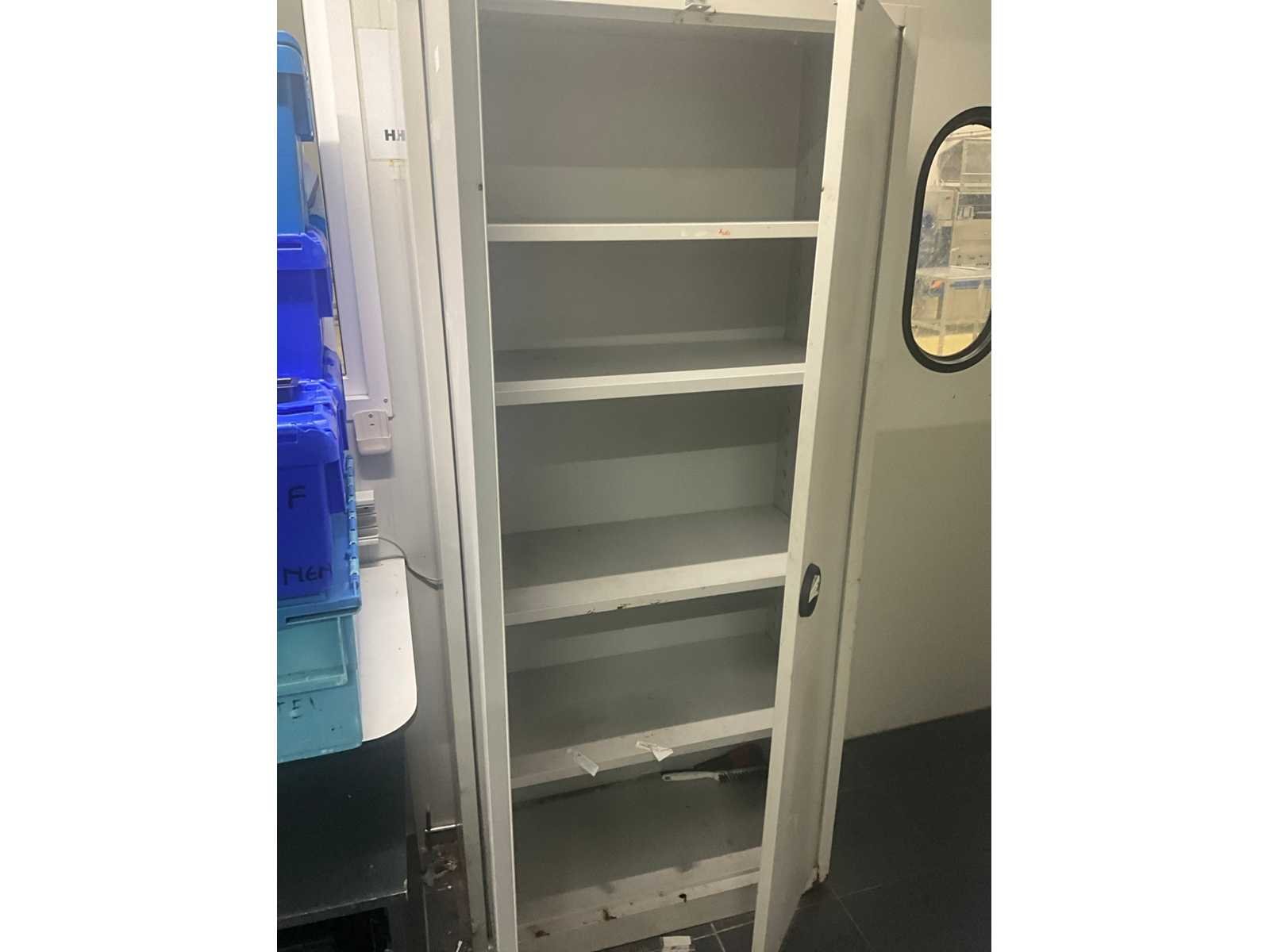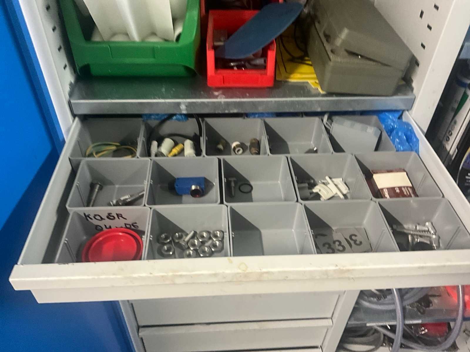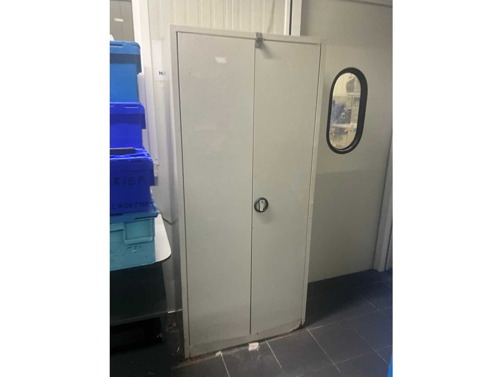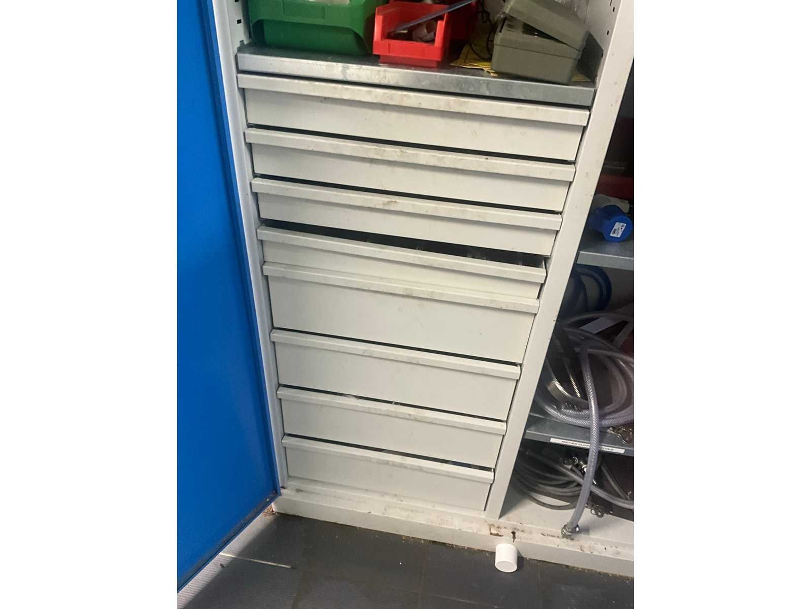 Waaronder opbergkast van circa 120 x 50 x 195 cm hoog, met inhoud, zijnde partij diversen en ingebouwde 8-schuifspel ladenblok en kast met afmeting 80 x 38 x 180 cm hoog. Nee