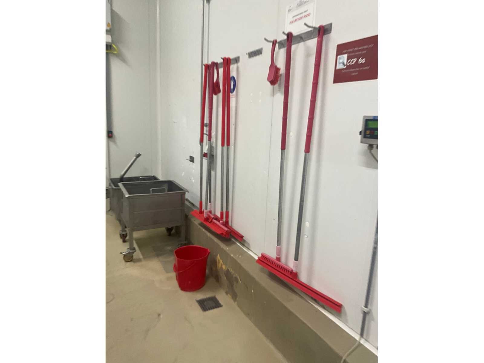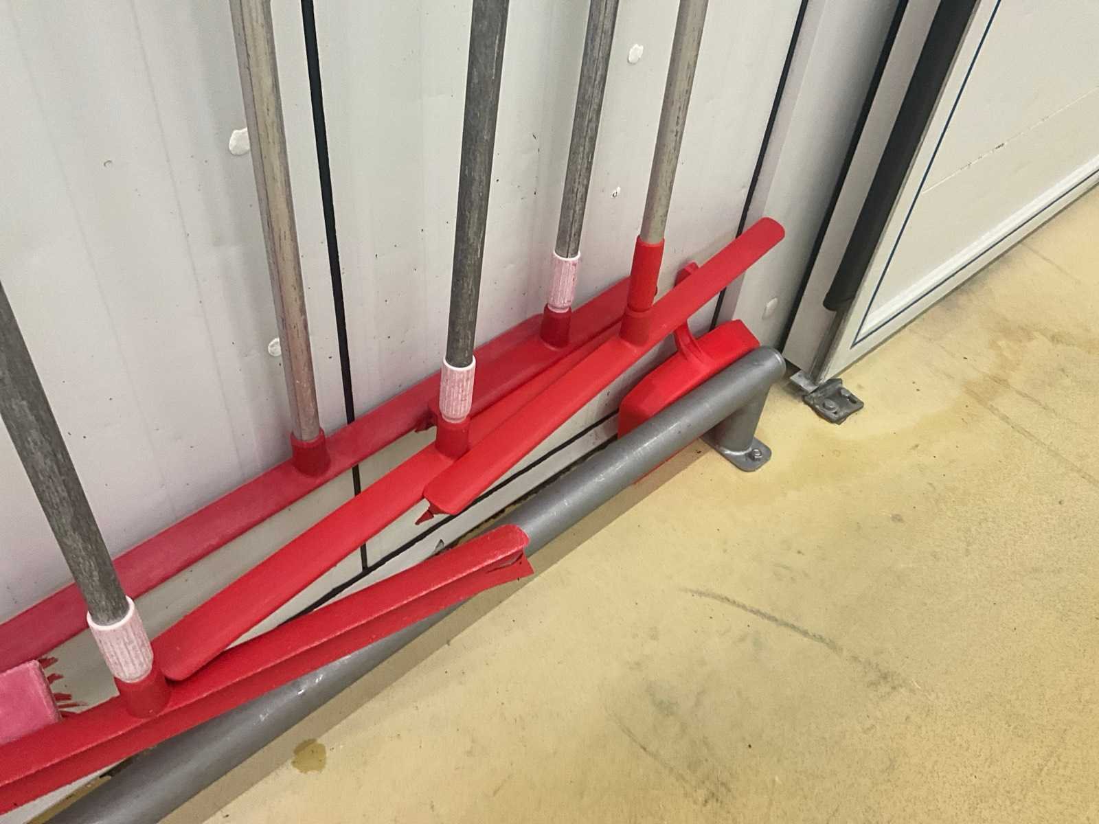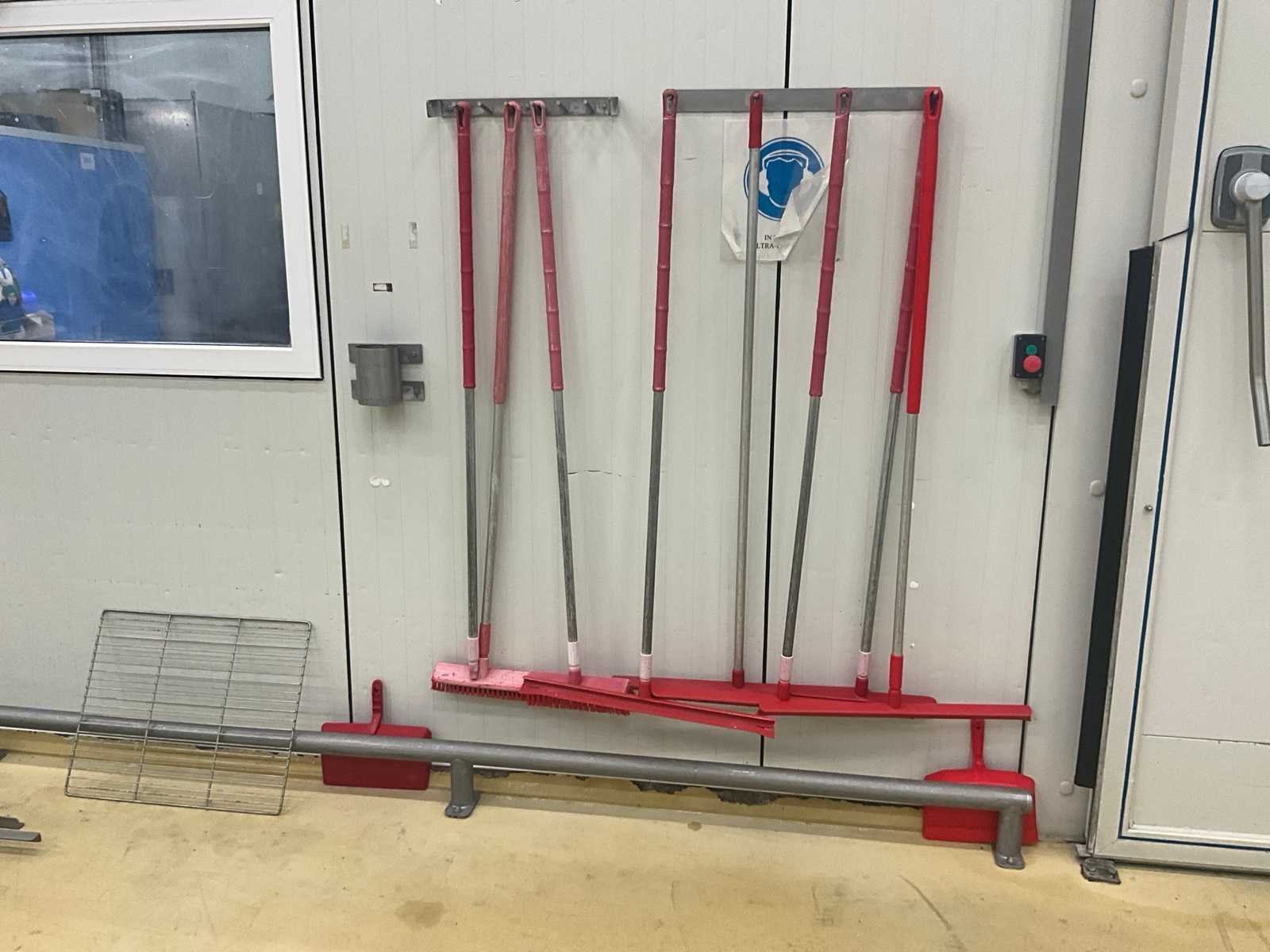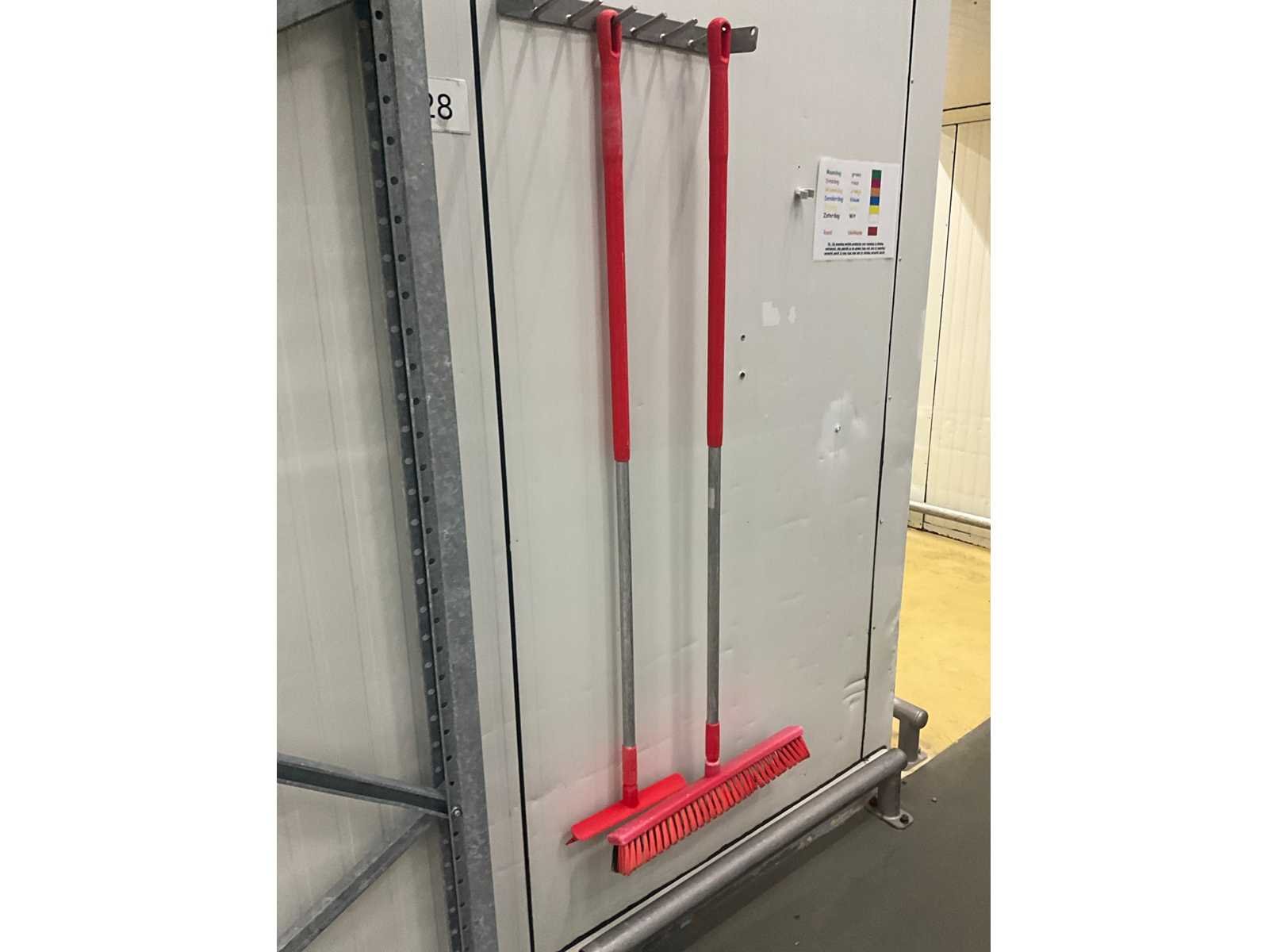 Waaronder diverse aftrekkers, borstels, vuilblikken, … (Hangend aan muur) Nee