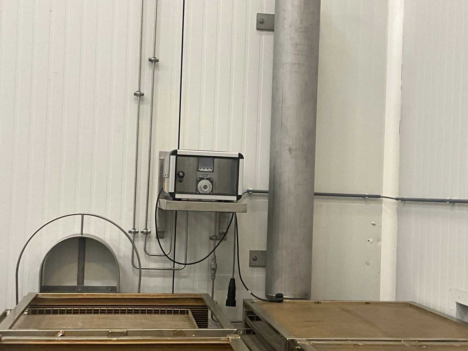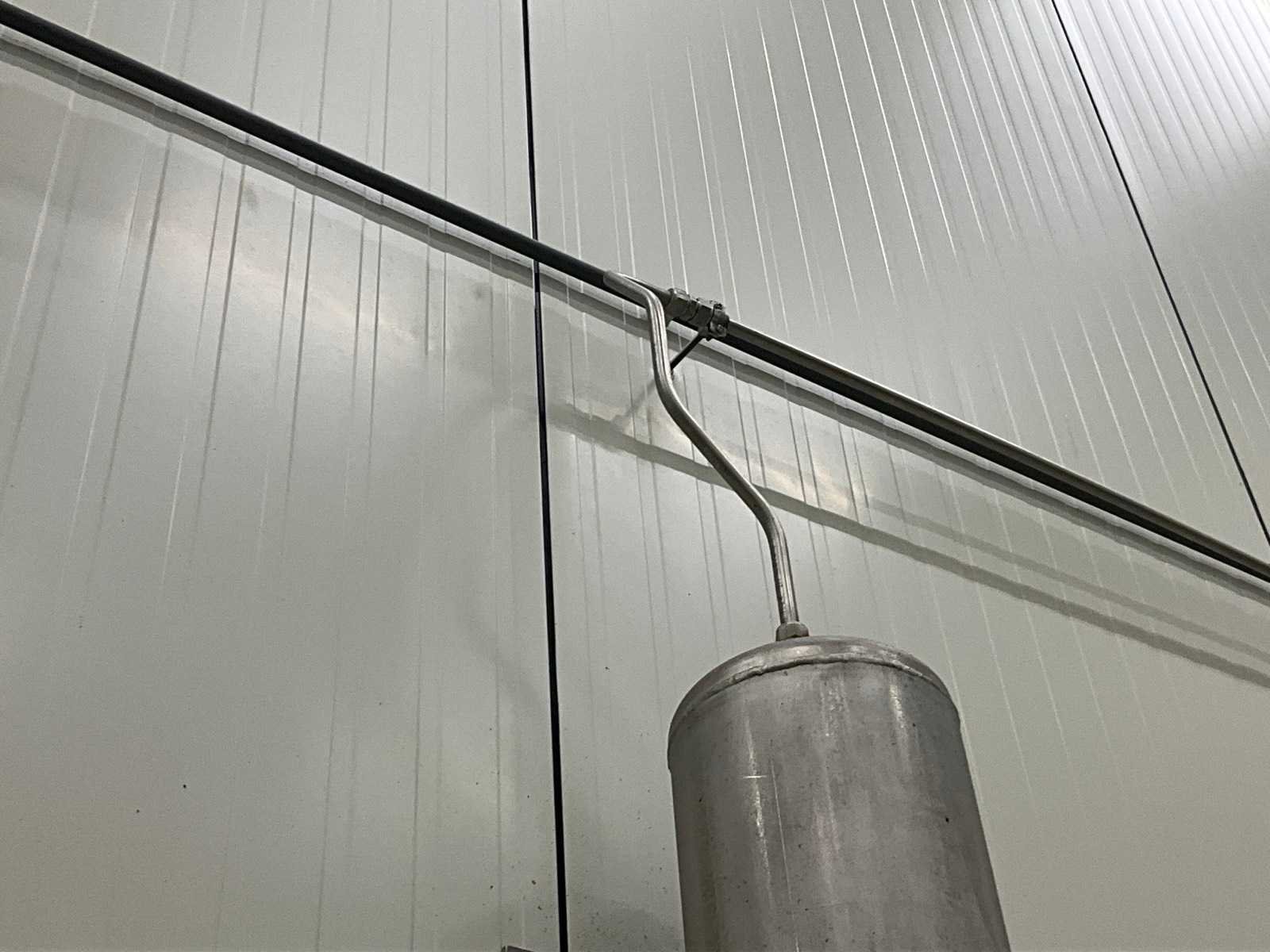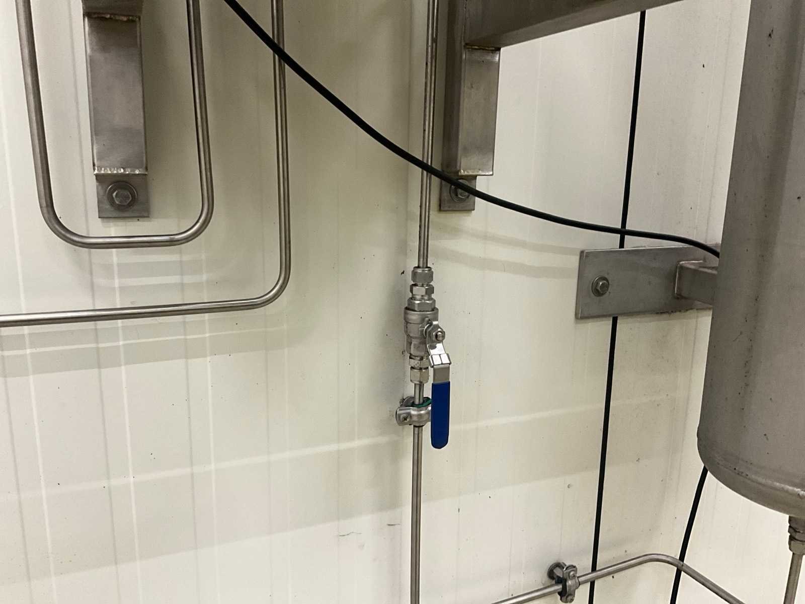Elektronische menger voor 2 gassen met motorgestuurde mengventieltechniek, op rvs wandhouder (dmv bouten in muur), compleet met drukvat van circa 155 cm hoog met 22 cm diameter, aan muur bevestigd. Nee Merk: WITT Type: KME100-2MEM+ Bouwjaar: 2020