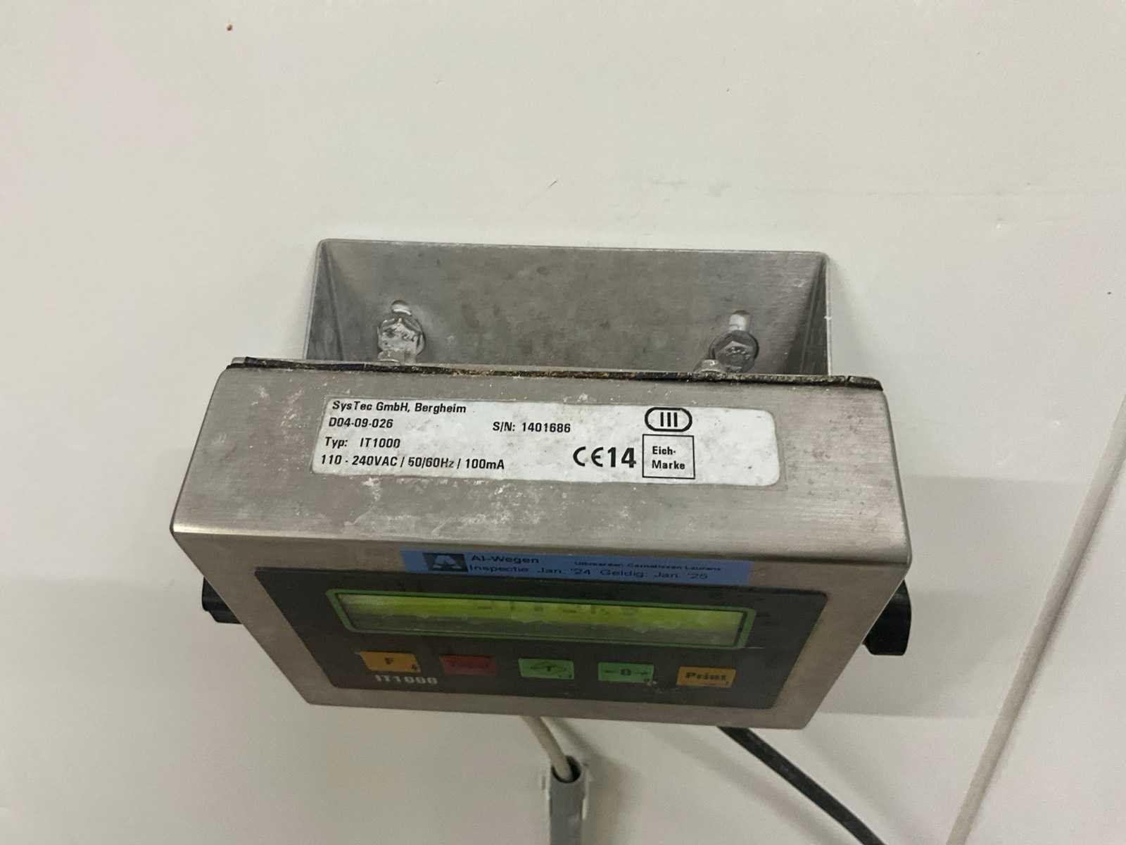 Vloerschaal door koper vakkundig te demonteren van de omgeving, zit in de vloer verwerkt. Nee Merk: SysTec Type: IT1000 Plateau afm. l: 1250mm Plateau afm. b: 1250mm Digitale uitlezing: true