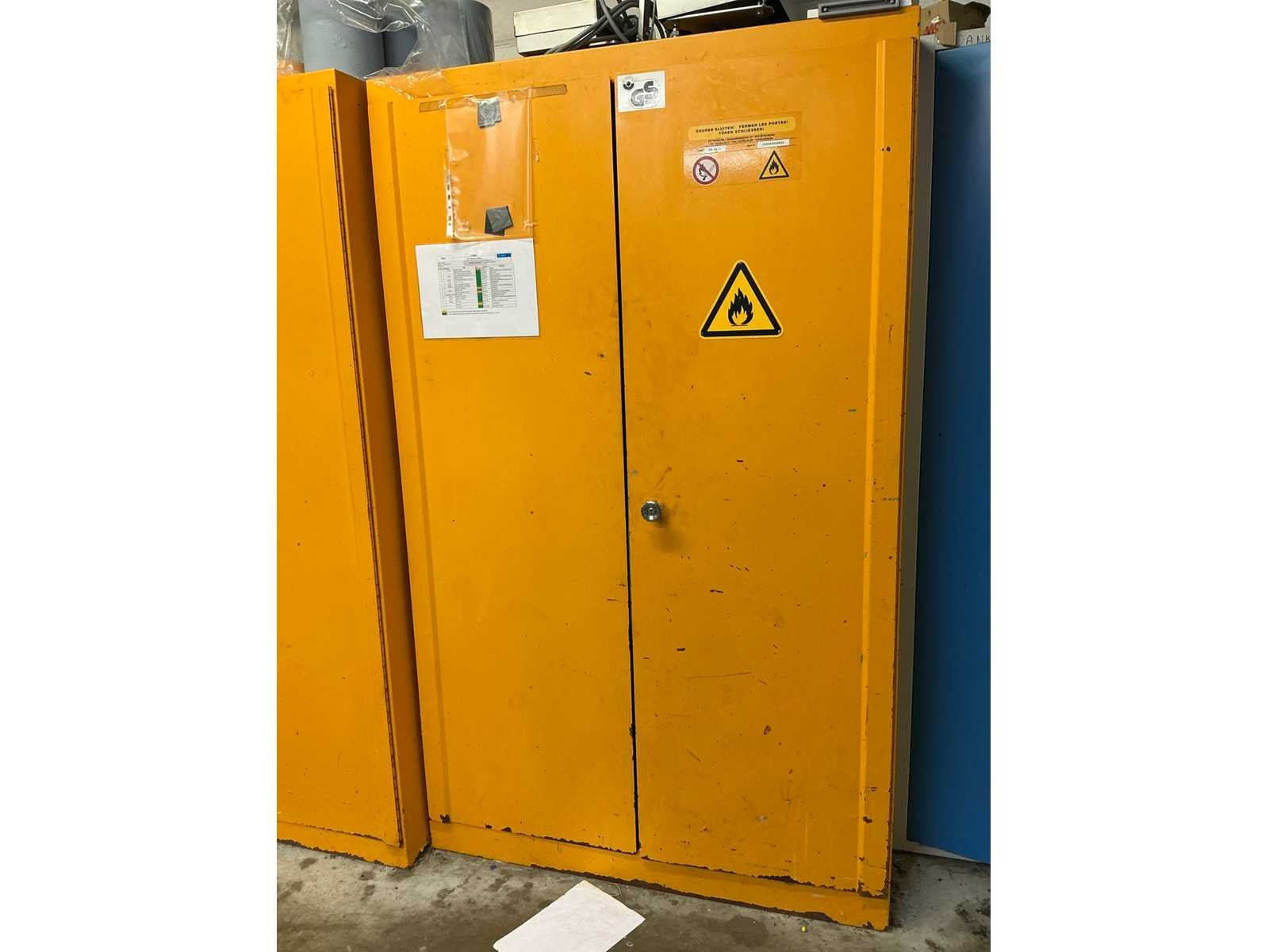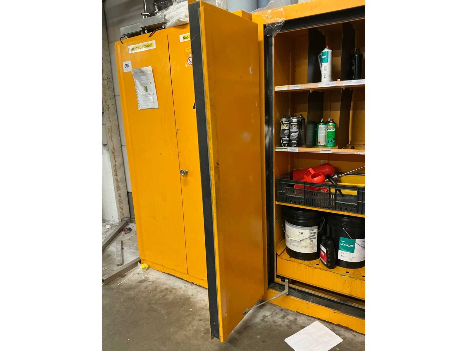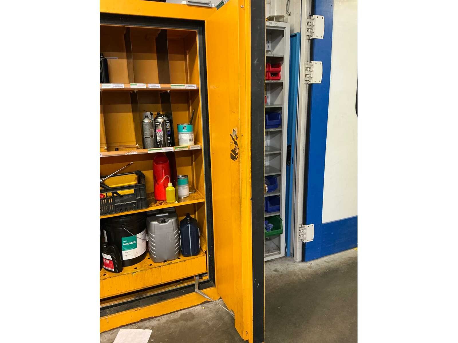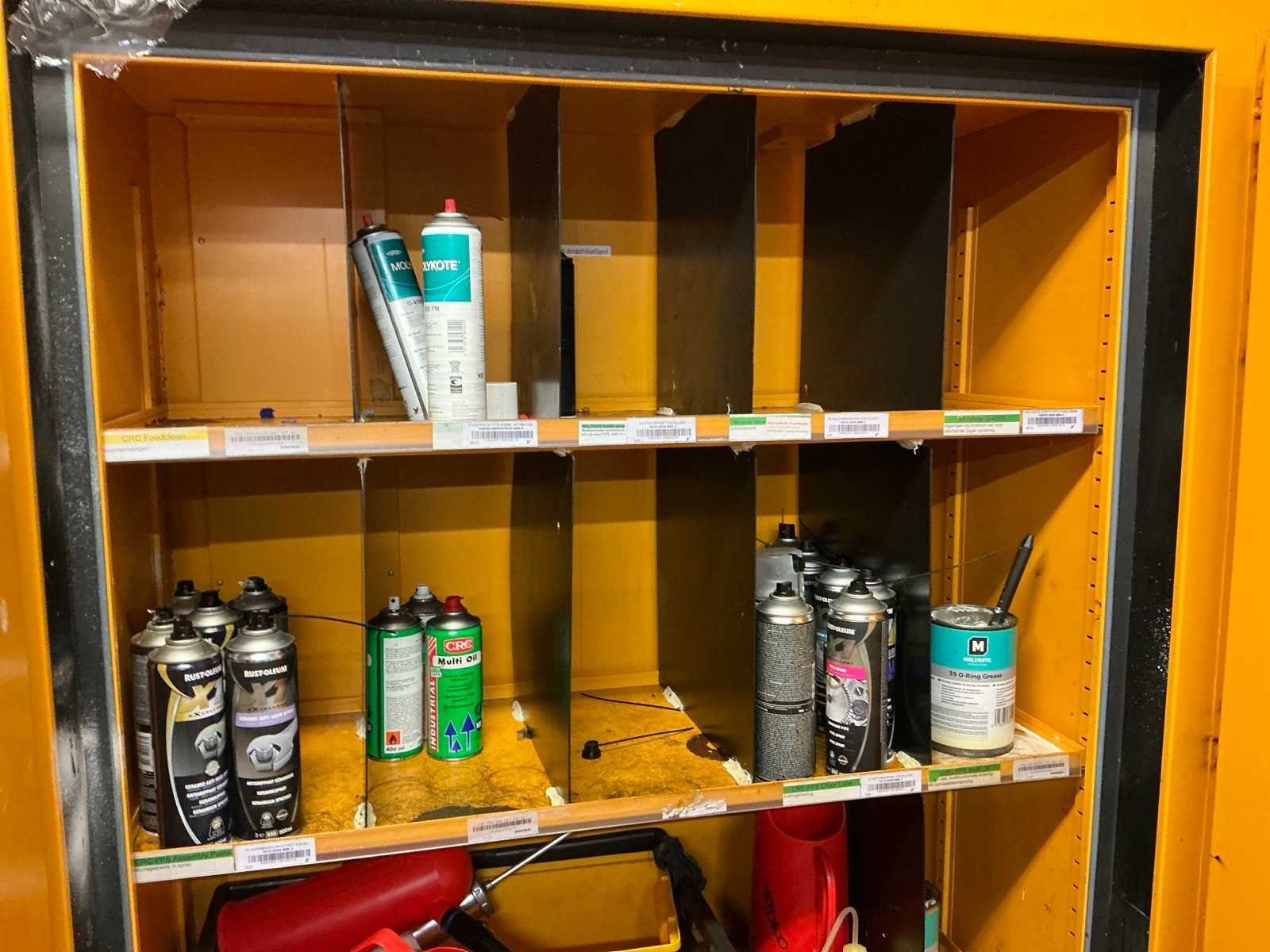 Compleet met metalen opbergkast met afmetingen ca. 70 x 30 x 200cm. Allen met inhoud waaronder diverse verfproducten en bevestigingsmaterialen. Nee Lengte: 62cm Breedte: 117cm Hoogte: 196cm