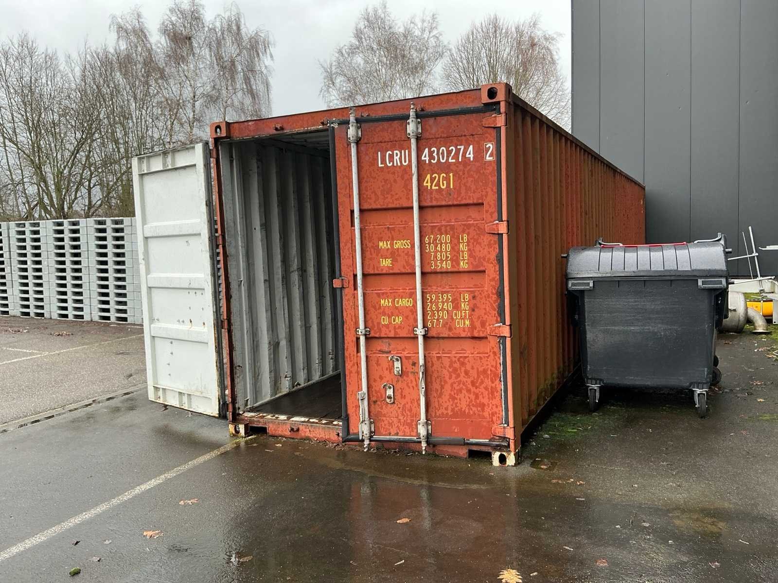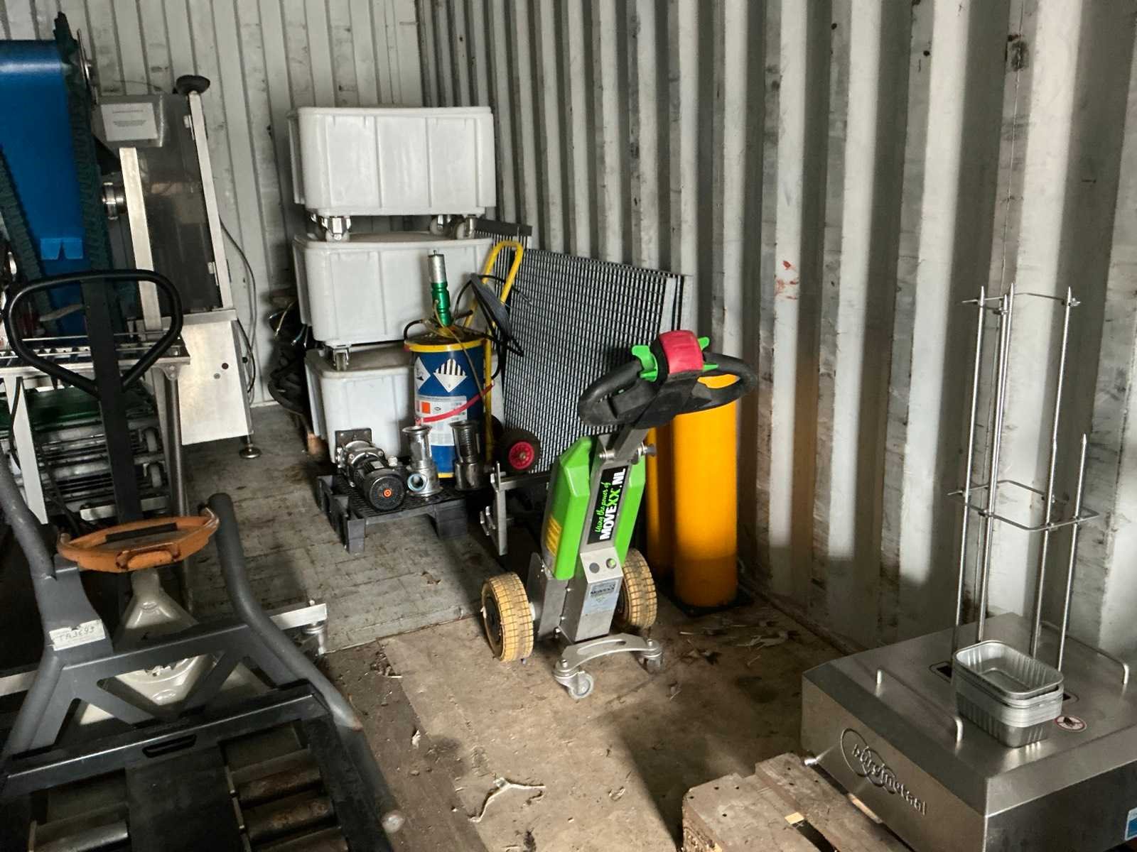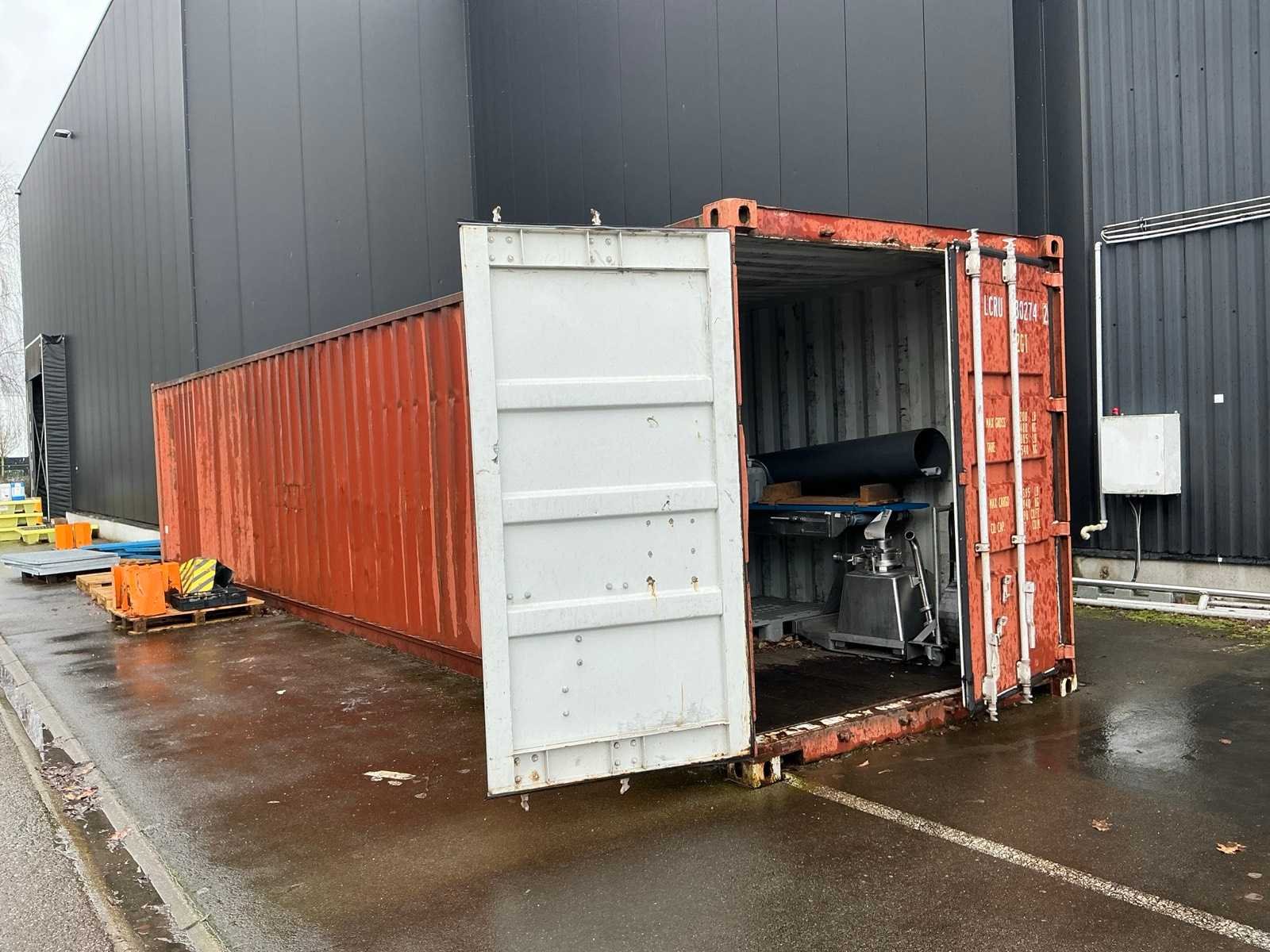 Met inhoud (zie foto’s ter referentie). Waaronder transportband, rvs machine onderdelen, transpallet, kruiwagen, rollenbaan, 3-fasige motor, pneumatische vetpomp, diverse transportkarretjes, DECA printsysteem, zware elektriciteitskabel op bobijn, transportband Burgmetaal. No Type: DAA-DC40-80 Bouwjaar: 1999 Totale afmeting L: 12192mm Totale afmeting Breedte: 2591mm Totale afmeting Hoogte: 2438mm
