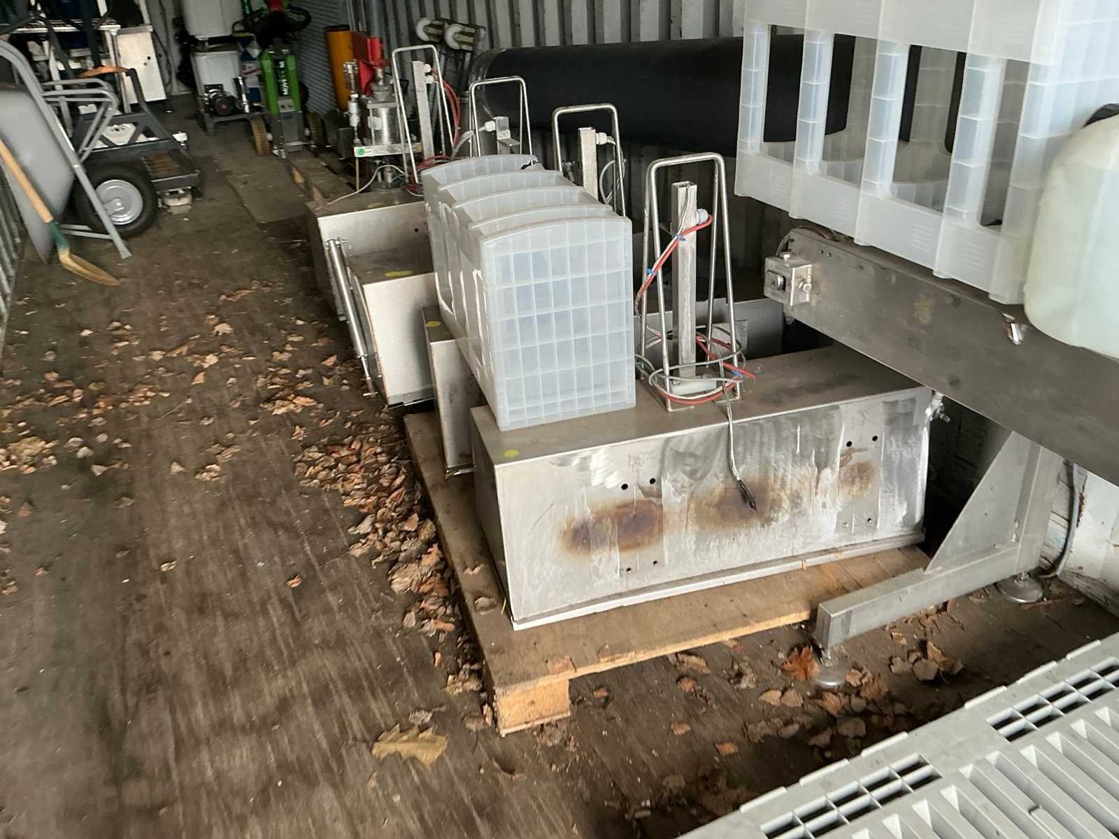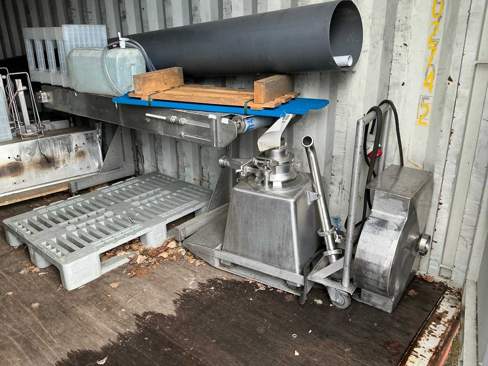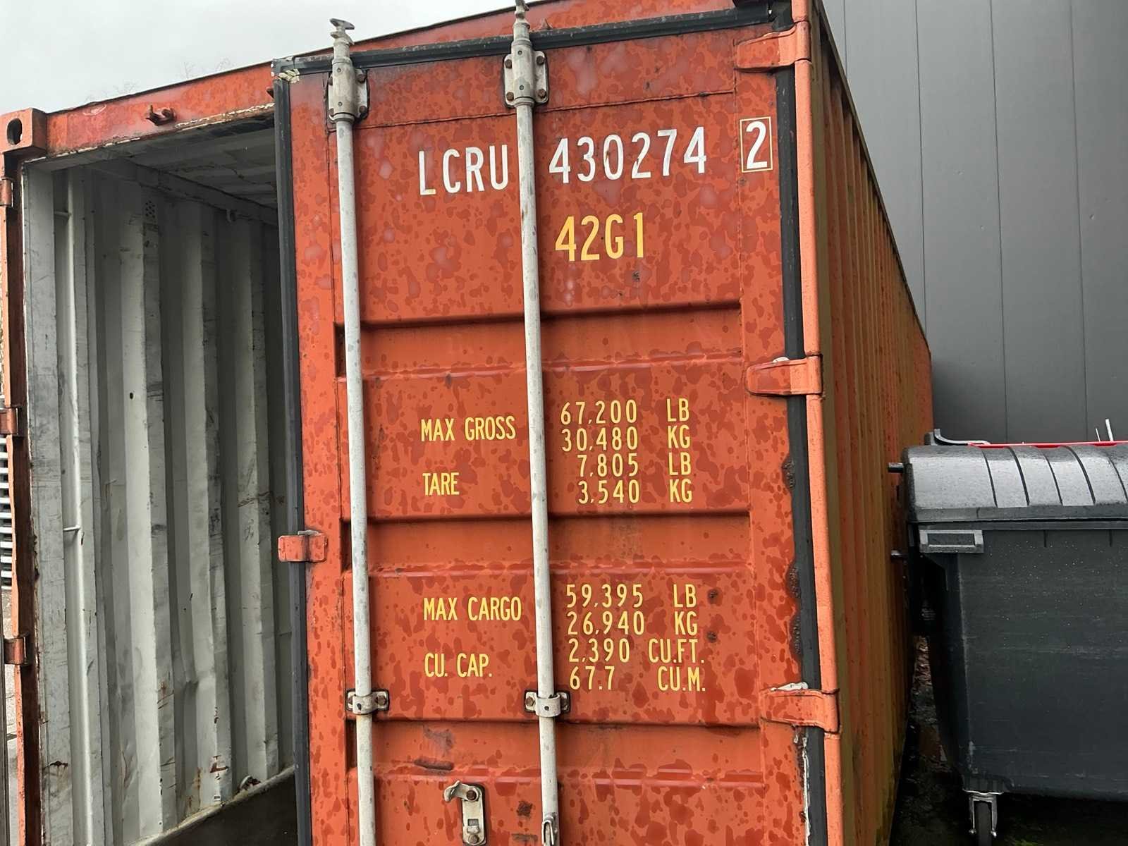 Met inhoud (zie foto’s ter referentie). Waaronder transportband, rvs machine onderdelen, transpallet, kruiwagen, rollenbaan, 3-fasige motor, pneumatische vetpomp, diverse transportkarretjes, DECA printsysteem, zware elektriciteitskabel op bobijn, transportband Burgmetaal. No Type: DAA-DC40-80 Bouwjaar: 1999 Totale afmeting L: 12192mm Totale afmeting Breedte: 2591mm Totale afmeting Hoogte: 2438mm