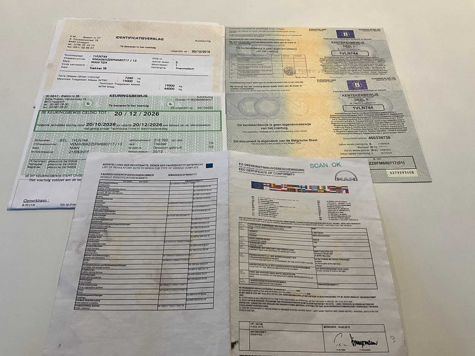 Belgische boord documenten compleet, geen exacte kilometerstand door lege accu Nee Merk: MAN Type: TGX 18.440 Bouwjaar: 2015 Chassisnummer VIN: WMA06XZZ5FM680717 Cilinderinhoud: 12419cc Kilometerstand bij opname: 330000km Datum eerste toelating: 21-08-2015 Type transmissie: Automatisch Aantal assen: 2 Asconfiguratie: 4x2 Fuel Type: Diesel Laadvermogen: 19000kg Aantal sleutels: 1 Slaapcabine: true Nationaliteit documenten: Belgische Automaat: true Diesel: true