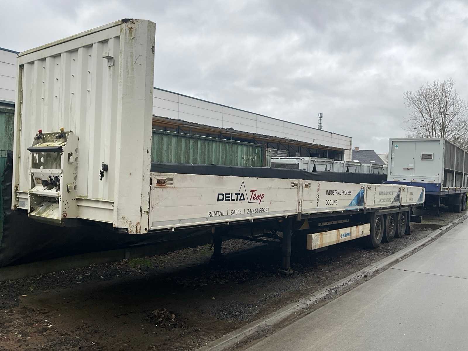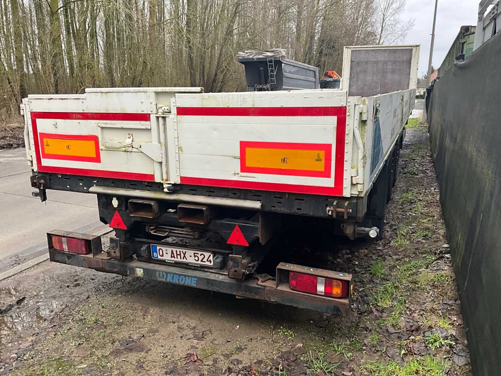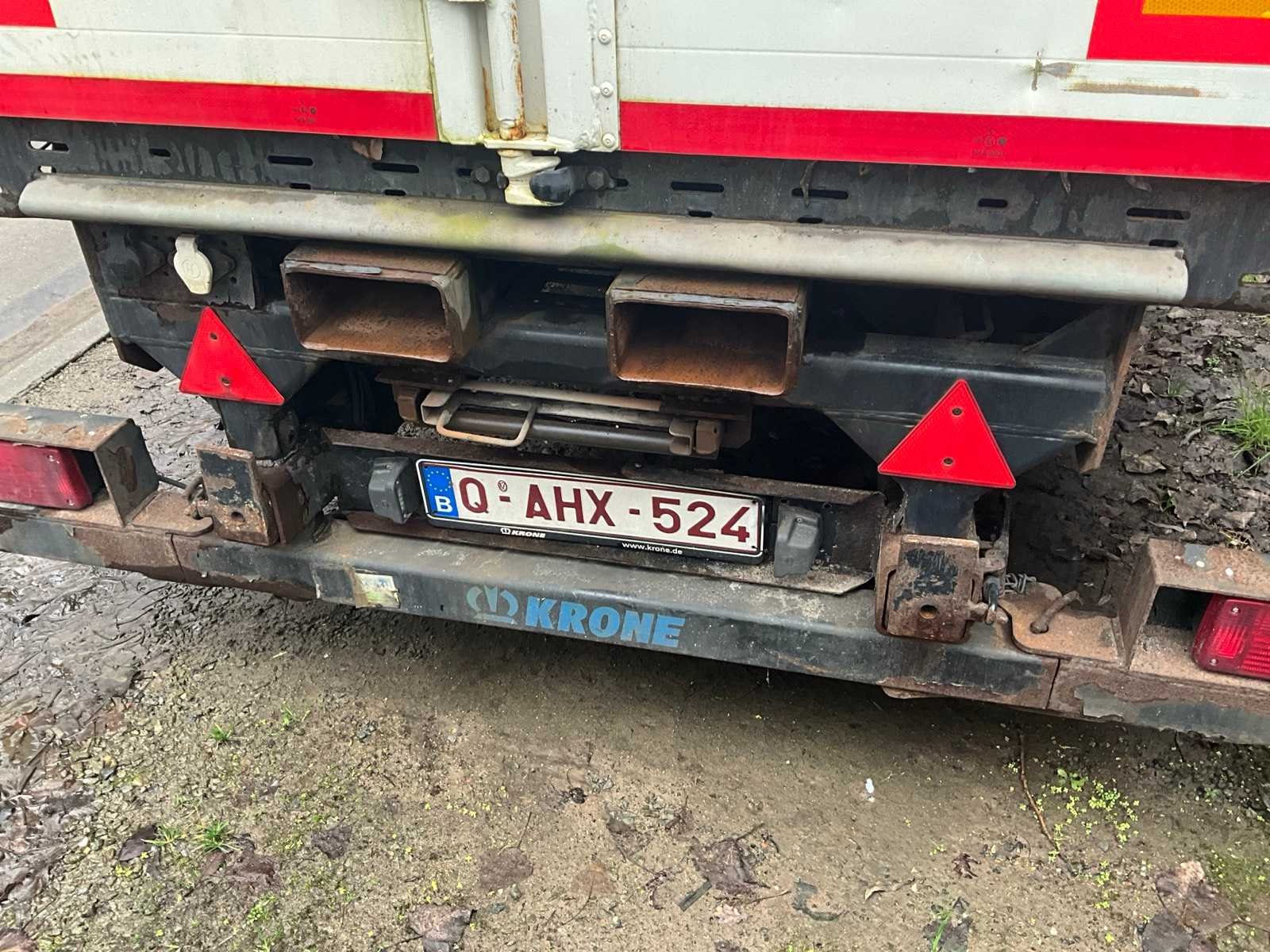 Voorzien van aluminium zijborden hoogte 550 mm, stoel achteraan voor meeneemheftruck, Belgische boord documenten compleet, Nee Merk: Krone Type: SDR Type aanhangwagencarrosserie: Open Aanhangwagen Bouwjaar: 2012 Chassisnummer VIN: WKESD000000520240 Datum eerste toelating: 20-01-2012 Aantal assen: 3 Laadvermogen: 39000kg Eigen gewicht: 5500kg Totale afmeting L: 13860mm Totale afmeting Breedte: 2550mm Totale afmeting Hoogte: 3000mm