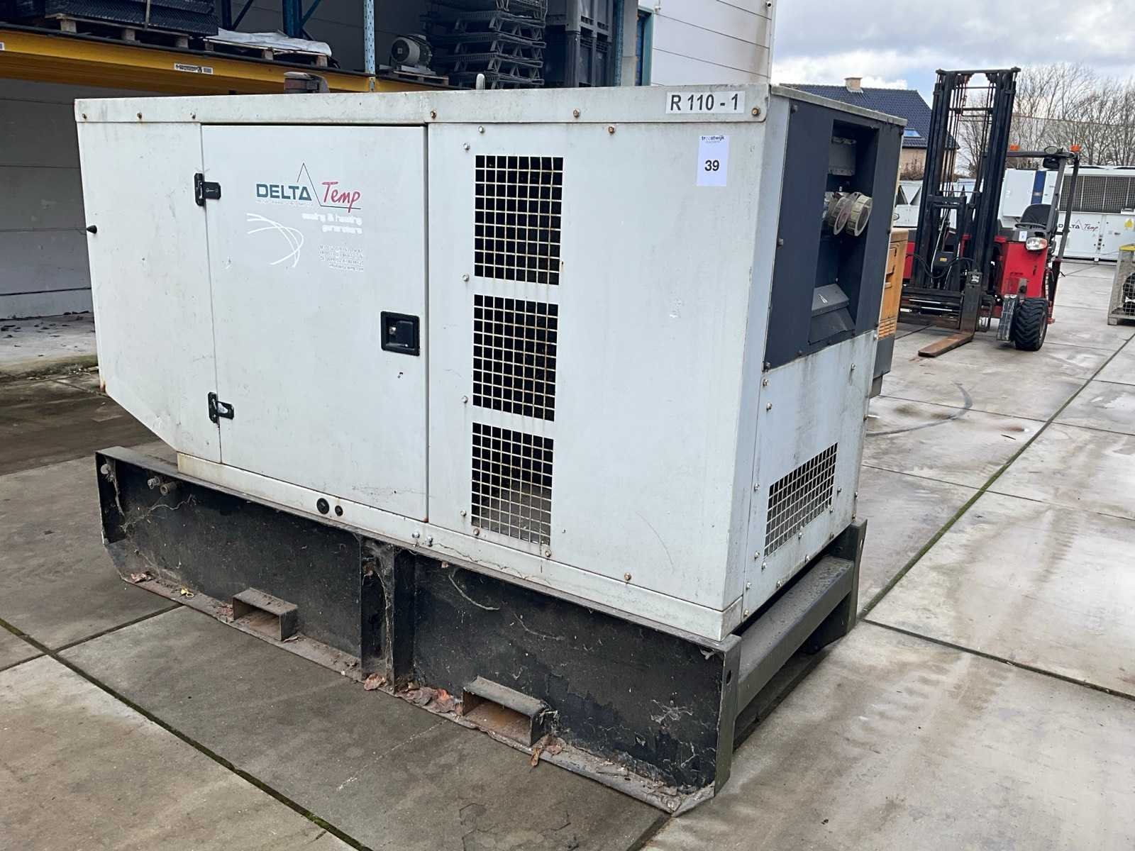 NA TE ZIEN!!, bedieningsscherm ontbreekt, zonder verdere gegevens, voorzien van onderliggende brandstoftank, heftruckkokers Nee Merk: SDMO Type: R110K Bouwjaar: 2005 Serienummer: R110K05013903 Capaciteit.: 110kVA Diesel: true Type motor: John Deere Aantal cilinders: 4 Motorvermogen (kW): 88kW Watergekoeld: true Machinegewicht: 2554kg Totale afmeting L: 1150mm Totale afmeting Breedte: 2630mm Totale afmeting Hoogte: 1780mm