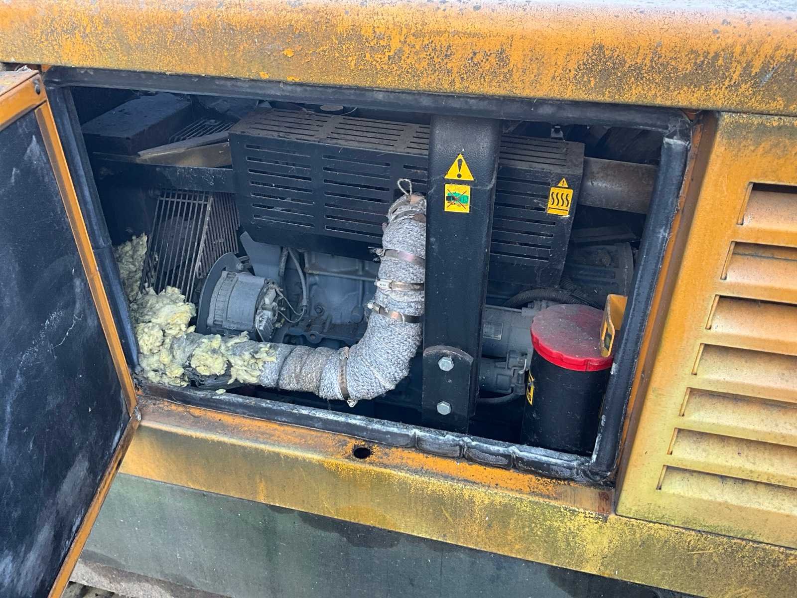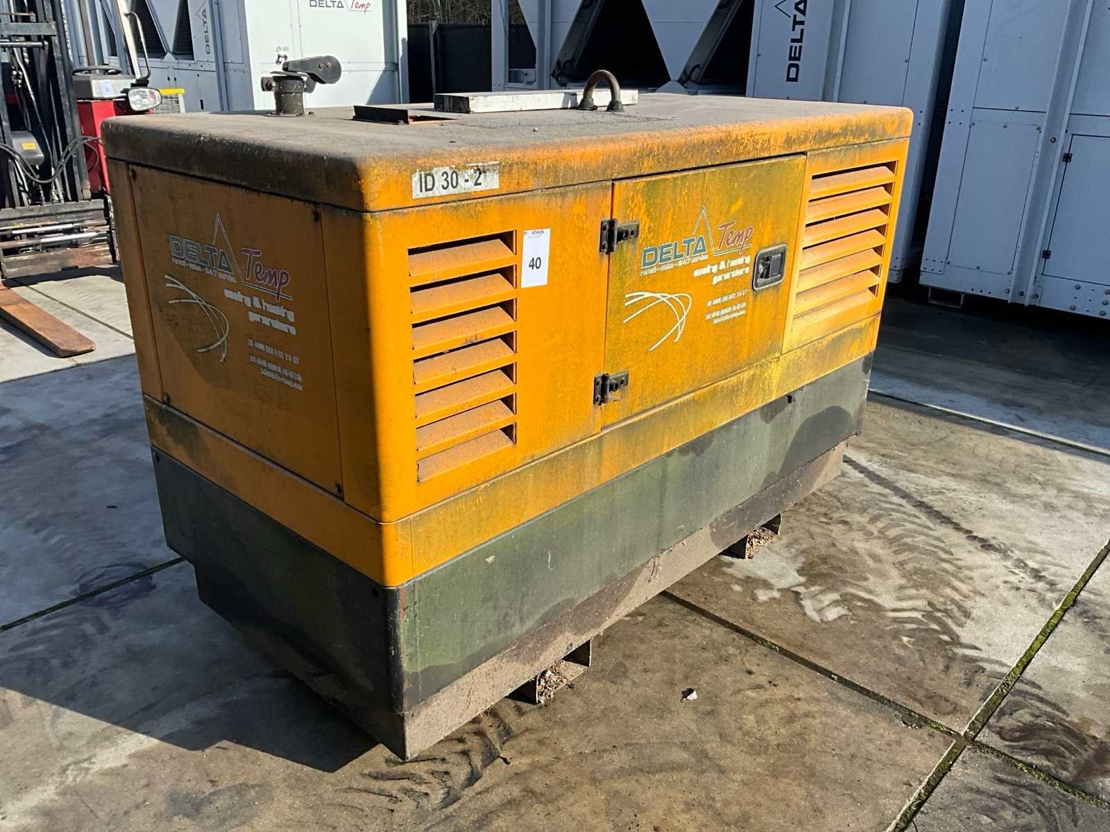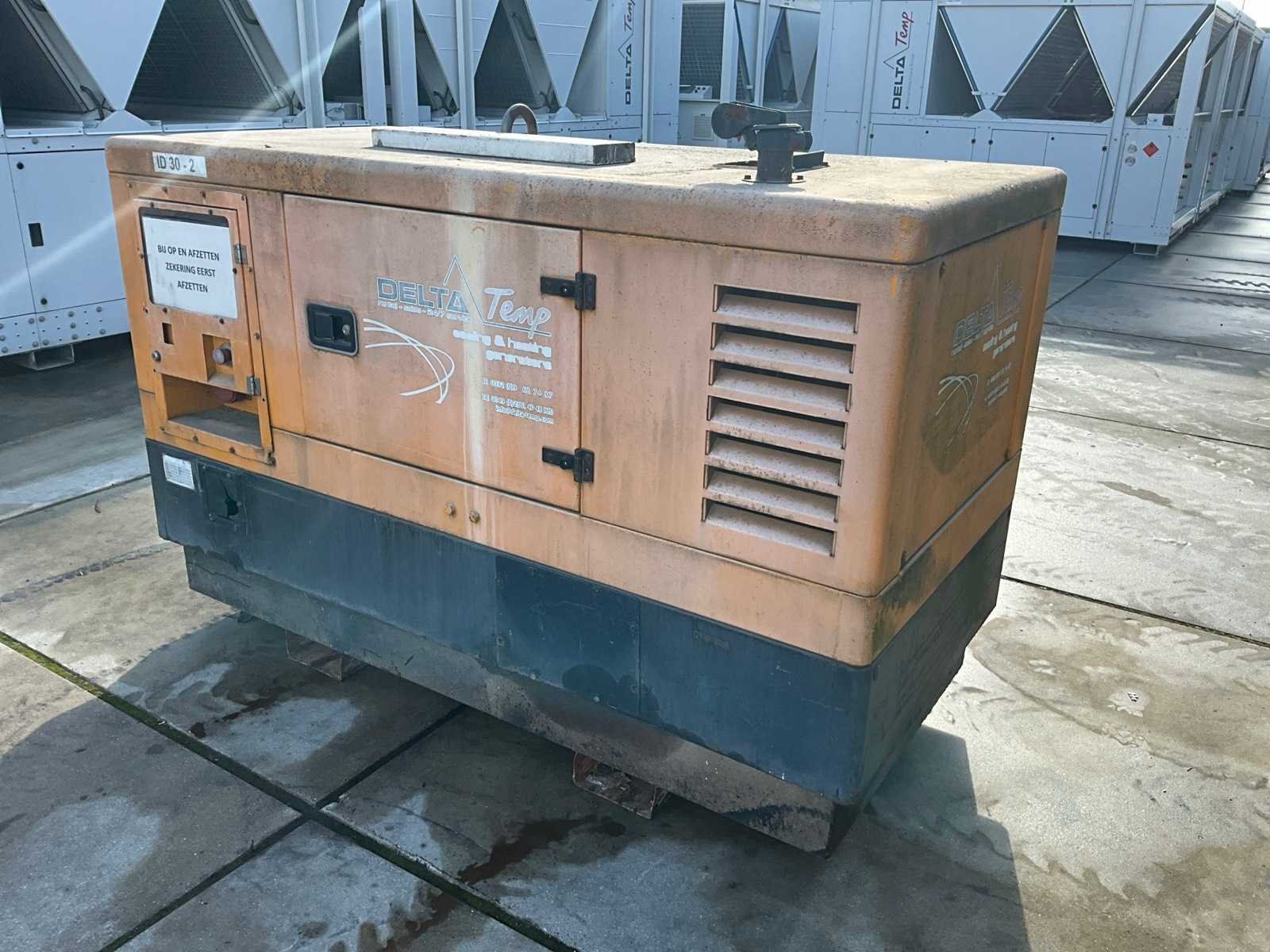 Werking niet gekend, sleutel aanwezig, werkuren niet gekend, voorzien van onderliggende brandstoftank, heftruckkokers Nee Merk: Solano Type: TD-30 Bouwjaar: 2007 Serienummer: 625807 Capaciteit.: 30kVA Diesel: true Type motor: Deutz Aantal cilinders: 4 Watergekoeld: true Machinegewicht: 2554kg Totale afmeting L: 1150mm Totale afmeting Breedte: 2630mm Totale afmeting Hoogte: 1780mm