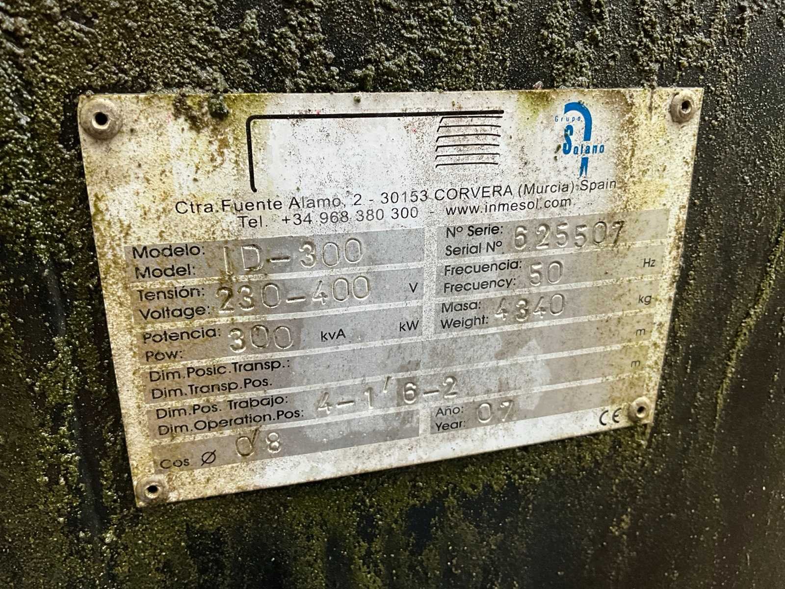 Voorzien van onderliggende brandstoftank, werking niet gekend, zonder verdere gegevens Nee Merk: SDMO Type: ID300 Bouwjaar: 2007 Serienummer: 625507 Capaciteit.: 300kVA Diesel: true Type motor: Deutz Aantal cilinders: 6 Watergekoeld: true Machinegewicht: 4340kg Totale afmeting L: 4500mm Totale afmeting Breedte: 1600mm Totale afmeting Hoogte: 2200mm
