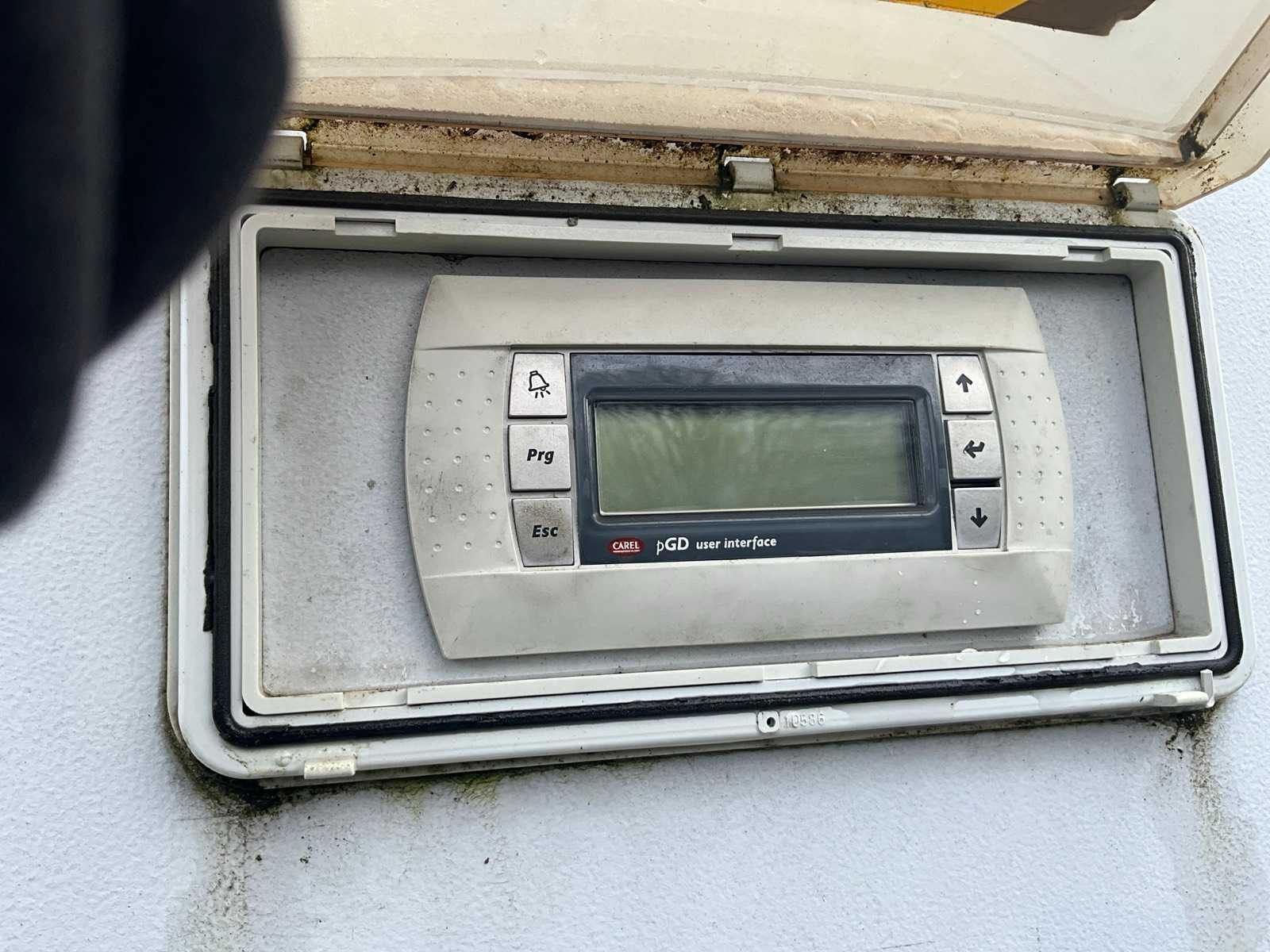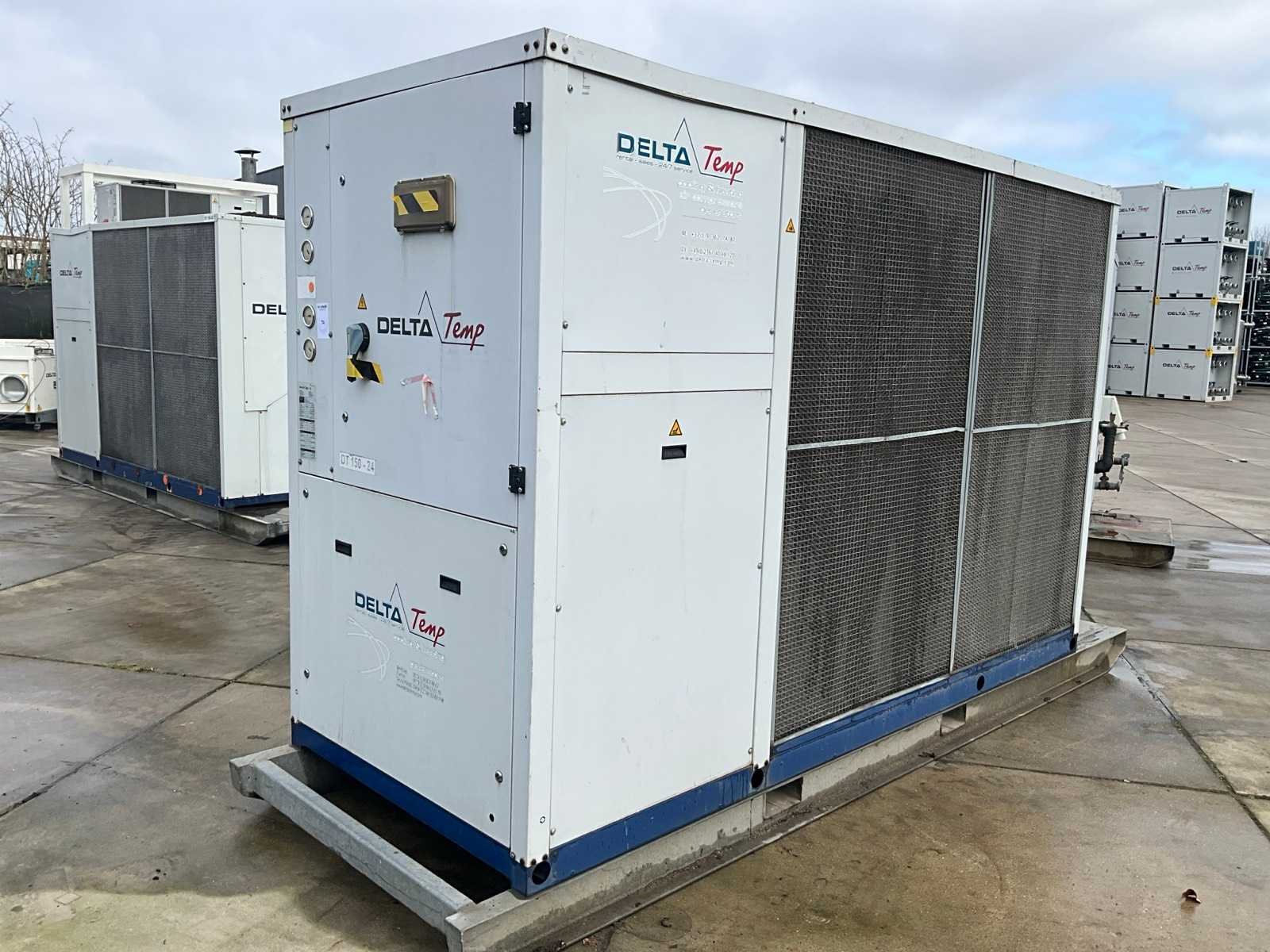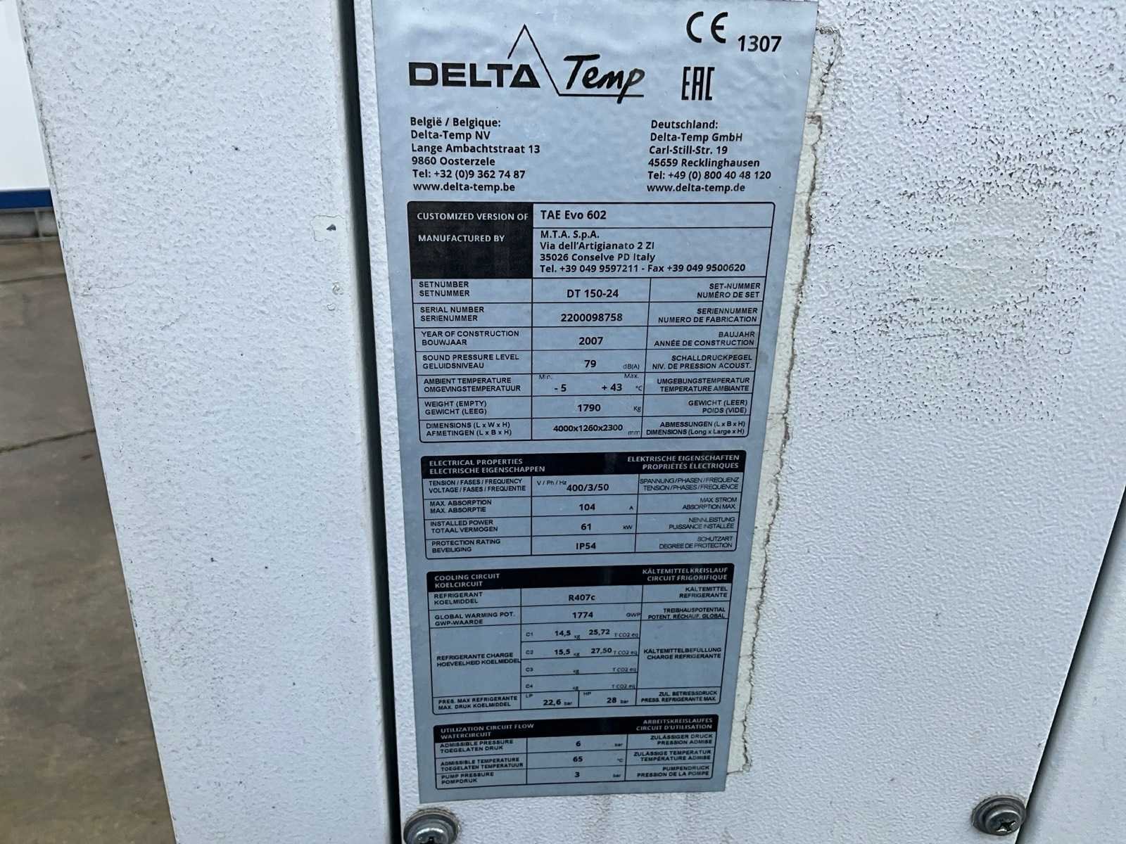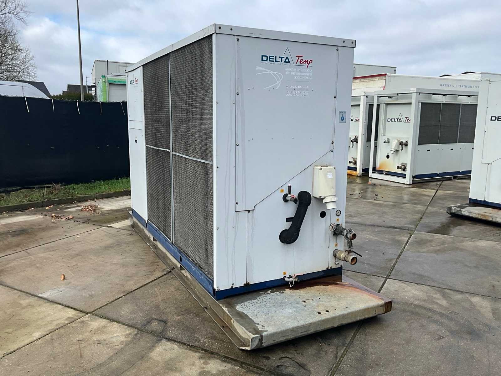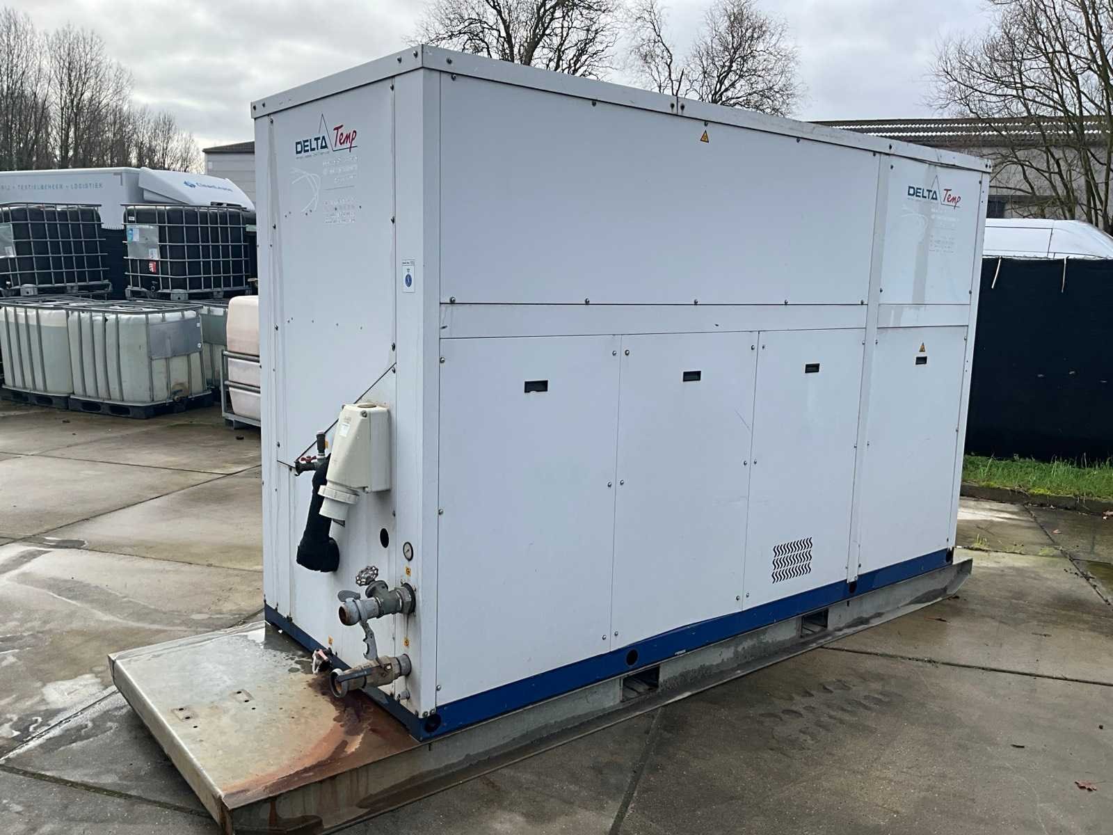 61 kw, voorzien van 2x ventilator, bouwer koppeling in en out 2’’, transport frame Nee Merk: Climaveneta Type: DT150-24 Bouwjaar: 2007 Serienummer: 2200098758 Eigen gewicht: 1790kg Totale afmeting L: 4000mm Totale afmeting Breedte: 1260mm Totale afmeting Hoogte: 2300mm