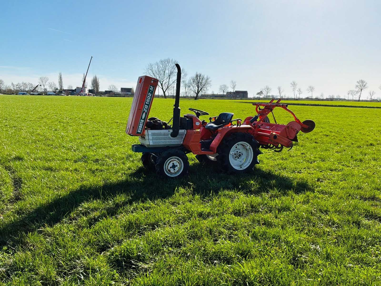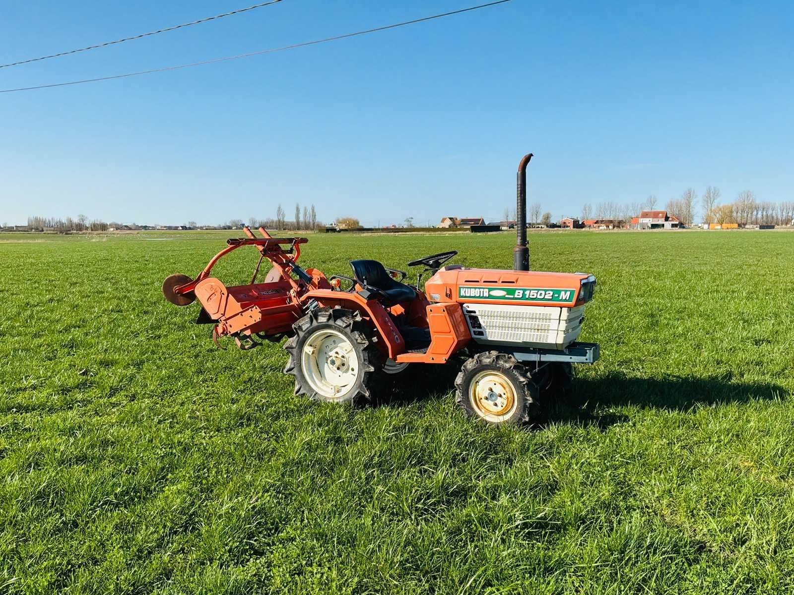 Kubota B1502-M compacte tractor. - Vermogen ca. 15 PK - Werkuren: 724 uur - 6 versnellingen vooruit - 2 versnellingen achteruit - Aftakas Machine start, rijdt en werkt. Geschikt voor tuin- en onderhoudswerken. No Merk: Kubota Type: B1502 Motorvermogen (kW): 11kW Afgelezen urenstand: 724 Aftakastoerental: 540rpm