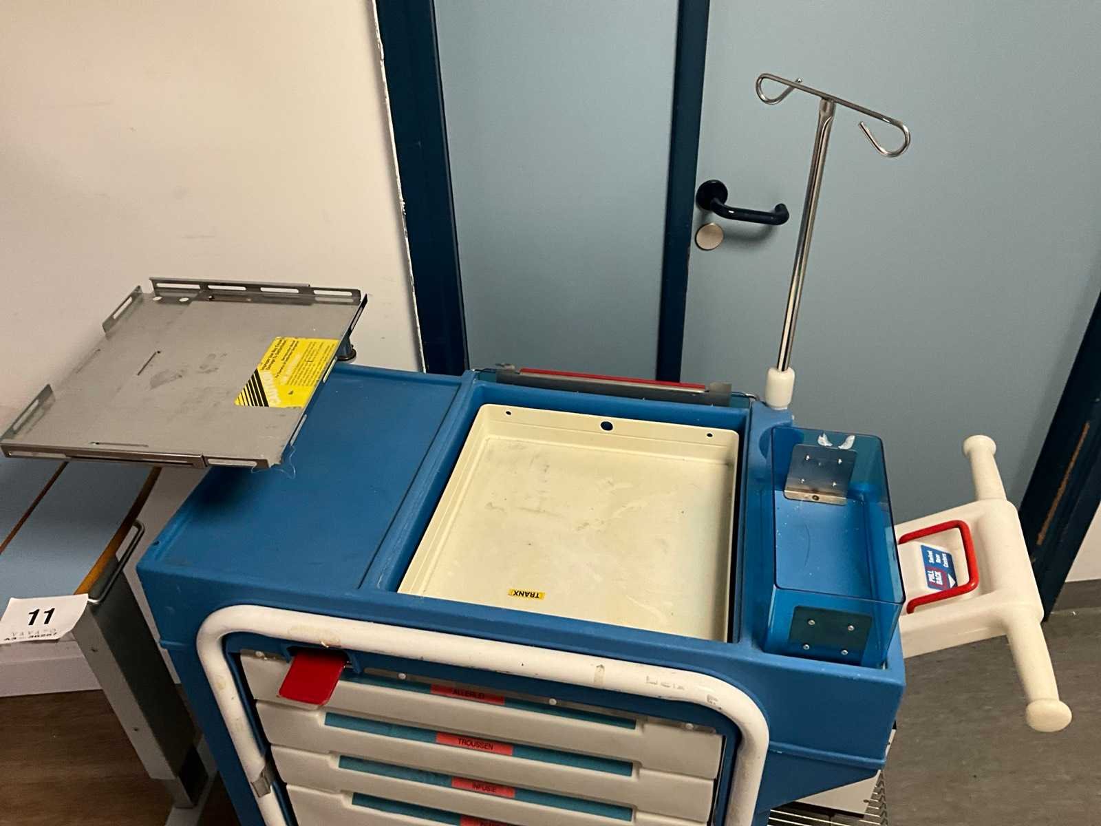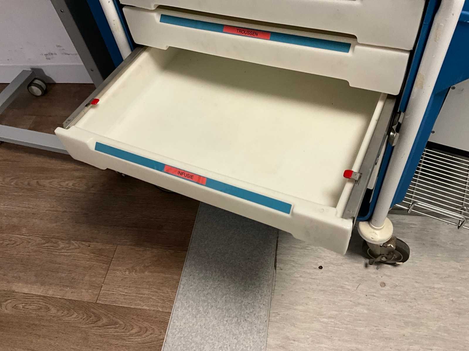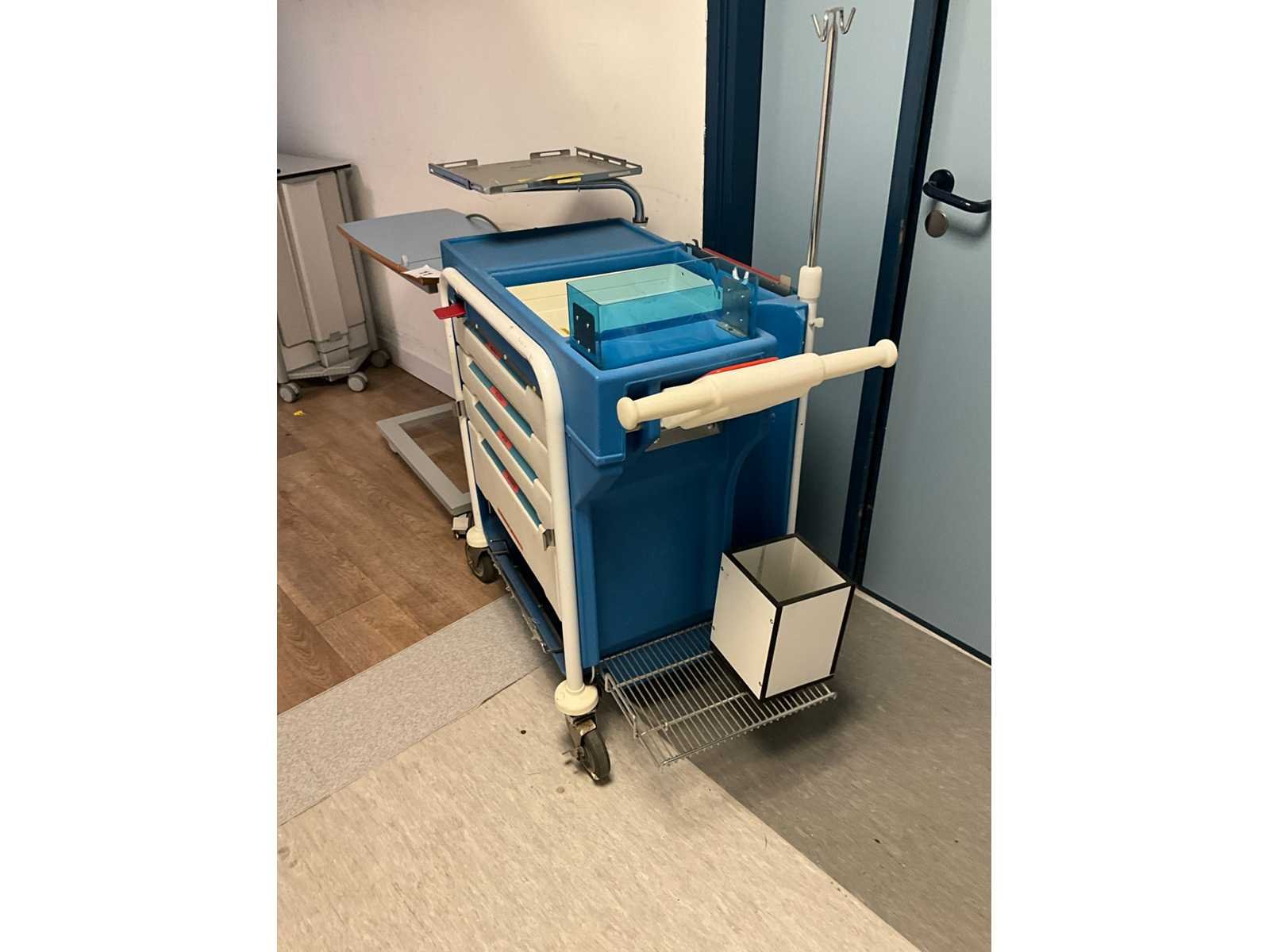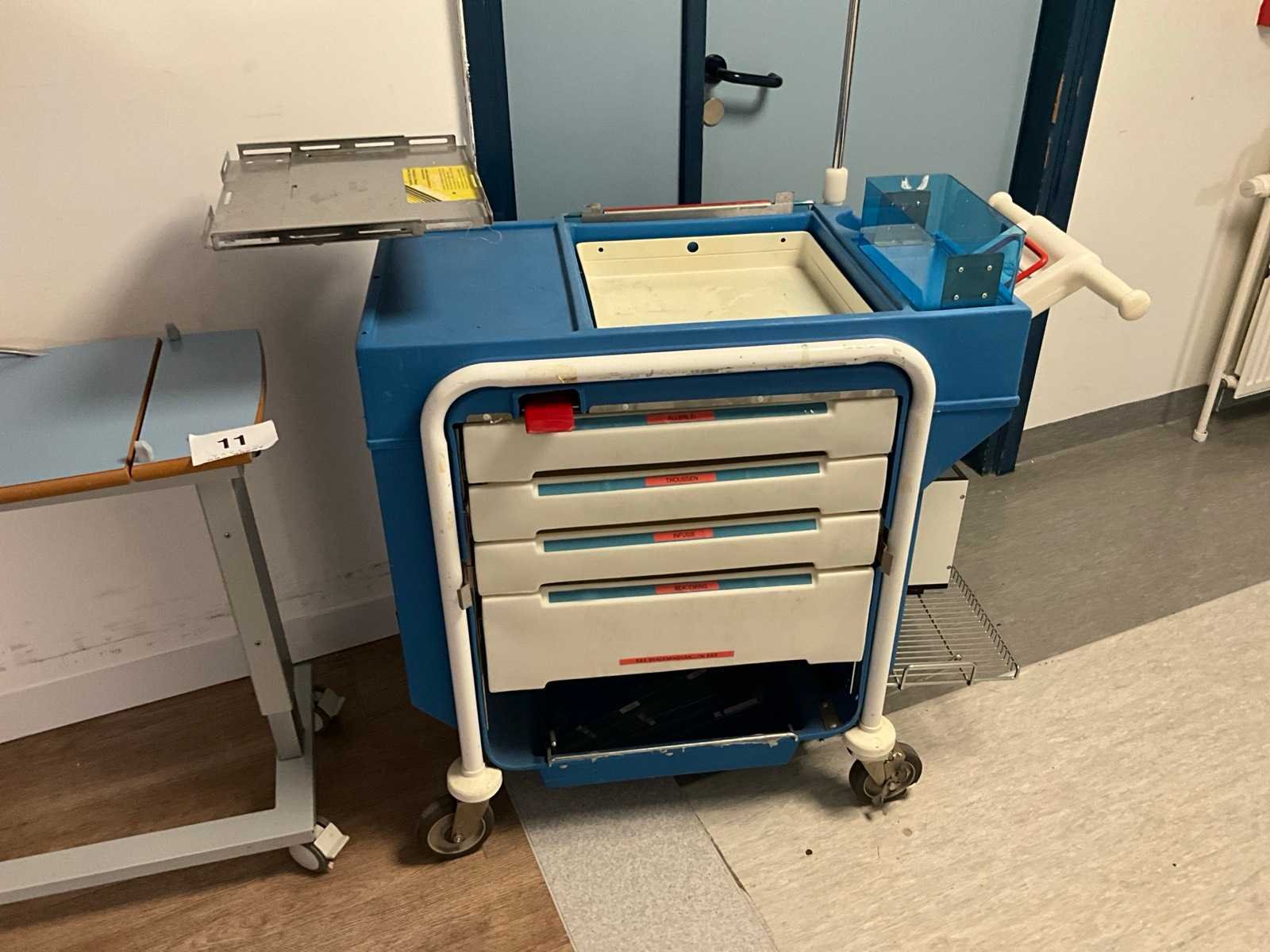 Waaronder spoedwagen/crashcart voorzien van 4 lades met afmetingen:125x60x100cm en verrijdbare verende tafel Nee