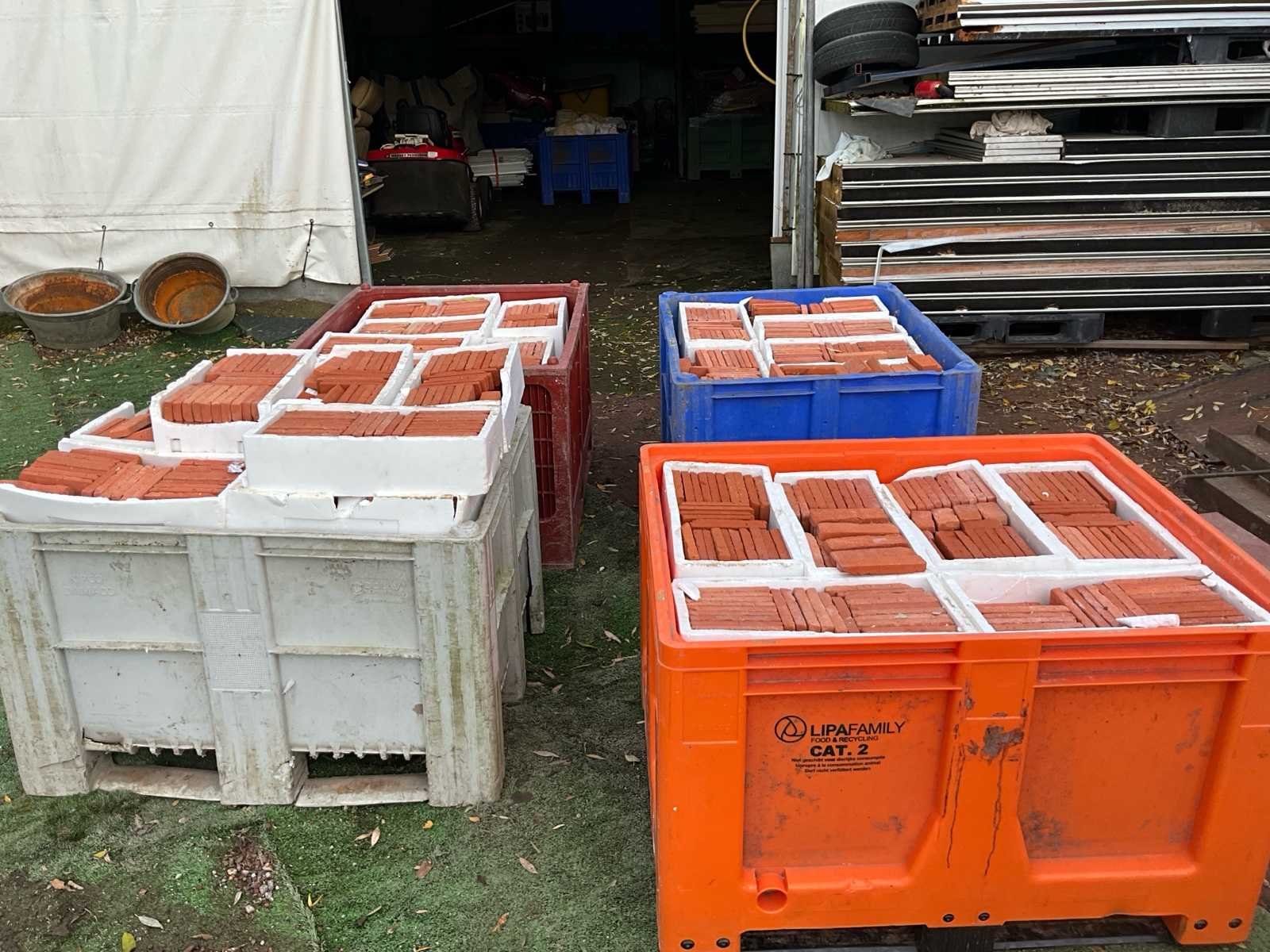105 ismobakjes met steenstrips 50 vierkante meter+- 2500kg +- Grote PVC bakken niet inbegrepen! Zelf over te laden Nee