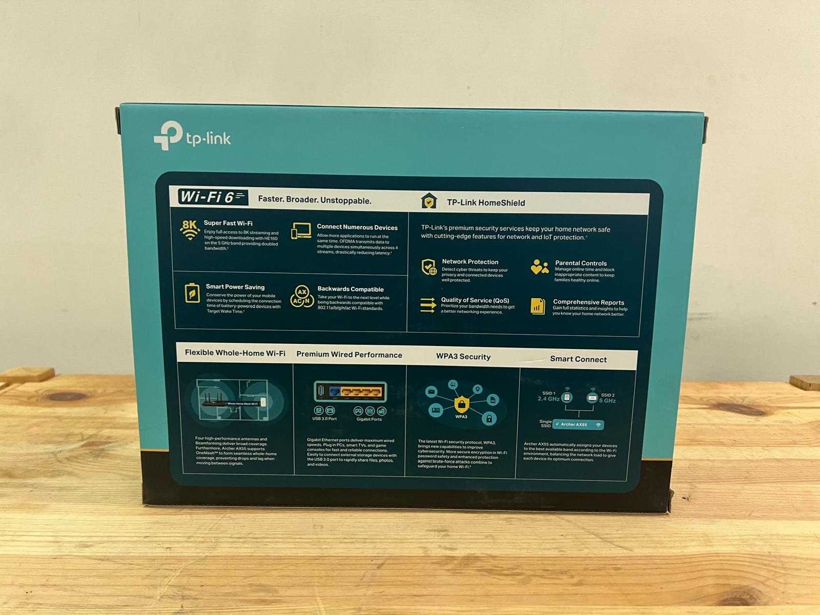 De TP-Link Archer AX55 is een Wi-Fi 6 (AX3000) dual-band gigabit router met 4 high-performance antennes, WPA3-beveiliging, TP-Link HomeShield voor netwerkbeveiliging, ouderlijk toezicht en QoS. Ondersteunt OneMesh™ voor flexibel whole-home Wi-Fi. Inclusief USB 3.0-poort voor bestandsdeling. Geschikt voor 8K-streaming, gaming en meerdere gelijktijdige verbindingen met OFDMA- en MU-MIMO-technologie. Nieuwe staat, compleet in originele verpakking met accessoires en handleidingen. Nee Merk: TP-Link Type: Archer Model: AX55 Product type: Router Wifi: true 5GHz: trueGhz Verbinding wlan: Dual-Band Wi-Fi 6 Transmissiesnelheid: 3000 Mbps Kleur: Zwart Materiaal: Kunststof Met voedingskabel: true