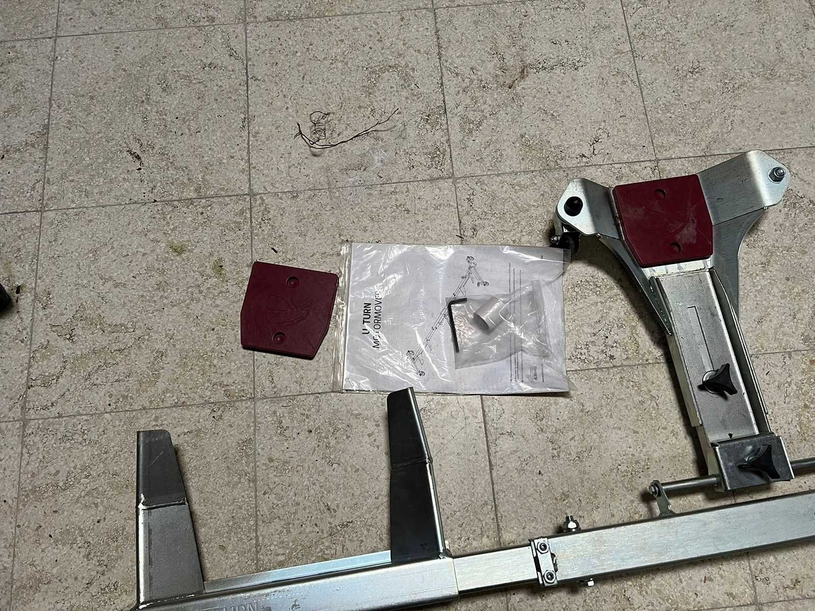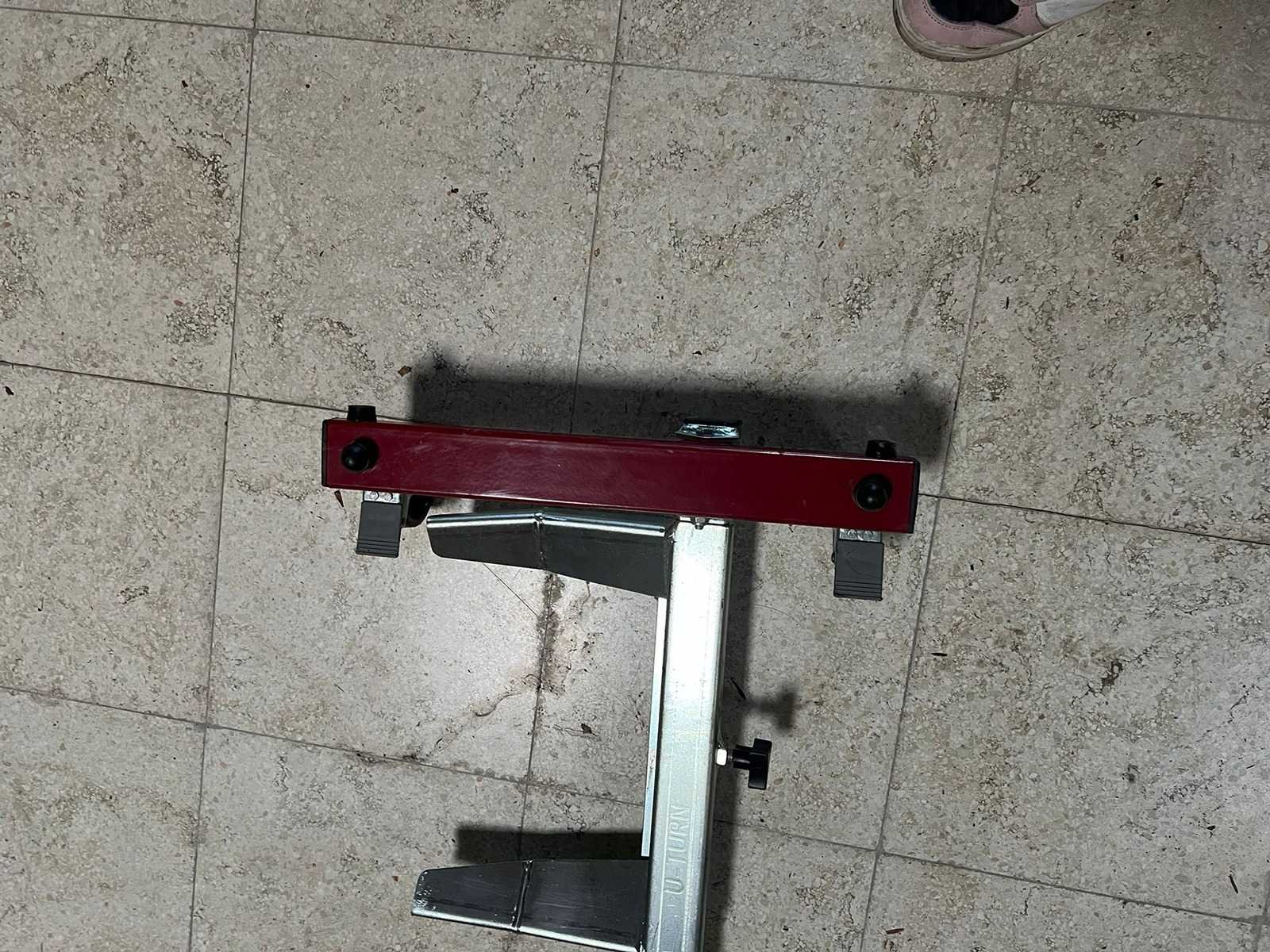 Professionele motormover van het merk Acebikes. Model: U-Turn. Geschikt voor het verplaatsen en draaien van motorfietsen in beperkte ruimtes (garage / werkplaats). Voorzien van: zwenkwielen, verstelbare wielhouders, bediening met hefboom, handleiding en toebehoren aanwezig (zie foto) Robuuste metalen constructie. Staat: gebruikt maar goede werkende staat. Normale gebruikssporen zichtbaar. (zie foto's) Nee Merk: Acebikes