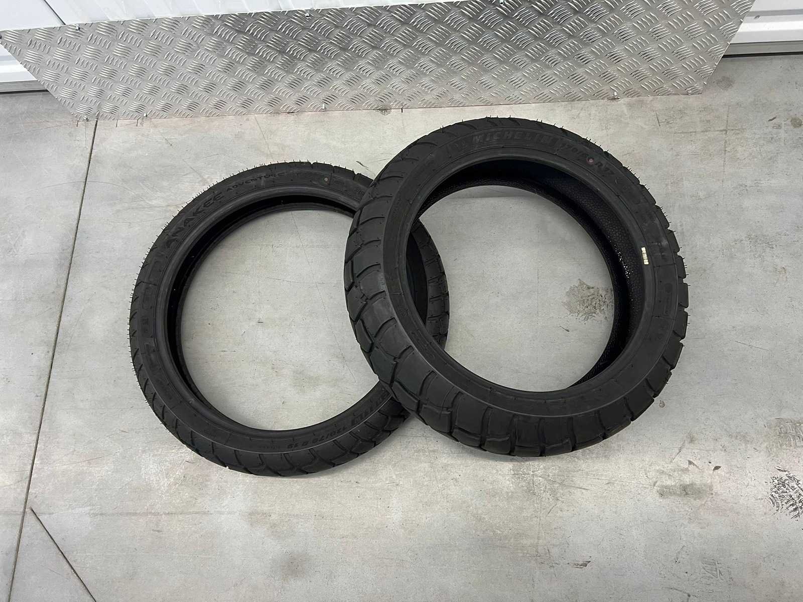 Set van 2 Michelin Anakee Adventure banden. Adventure / allroad profiel. Maten zijn zichtbaar op de foto's. Staat: kortstondig gebruikt maar zeker nog bruikbaar en in goede staat. Productieharen nog zichtbaar. Geschikt voor diverse adventure motoren zoals BMW GS, Yamaha Tenere, Africa Twin, etc. (controleer maatvoering). Nee Merk: Michelin