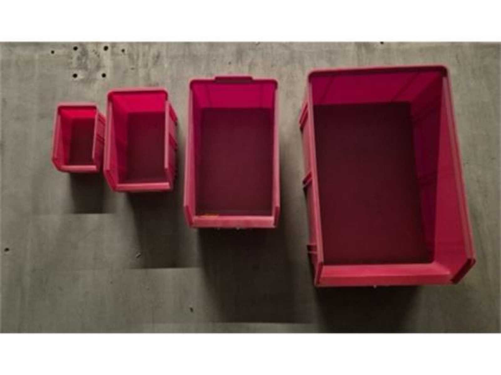Lot van circa 760 magazijnbakken bestaande uit: 48x31x18,5 (64 stuks), 35x21x16 (120 stuks) en 24x15x13 (576 stuks. No Kunststof: true