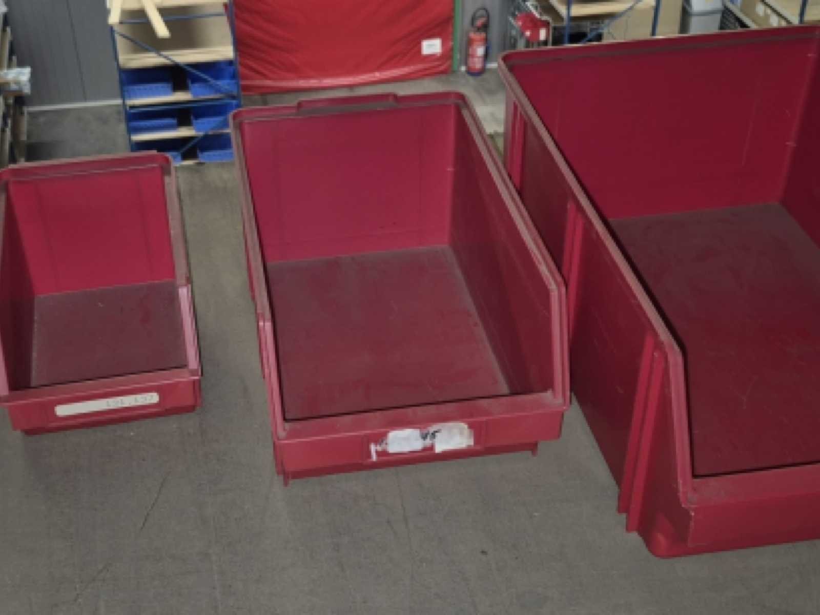 Lot van circa 760 magazijnbakken bestaande uit: 48x31x18,5 (64 stuks), 35x21x16 (120 stuks) en 24x15x13 (576 stuks. No Kunststof: true