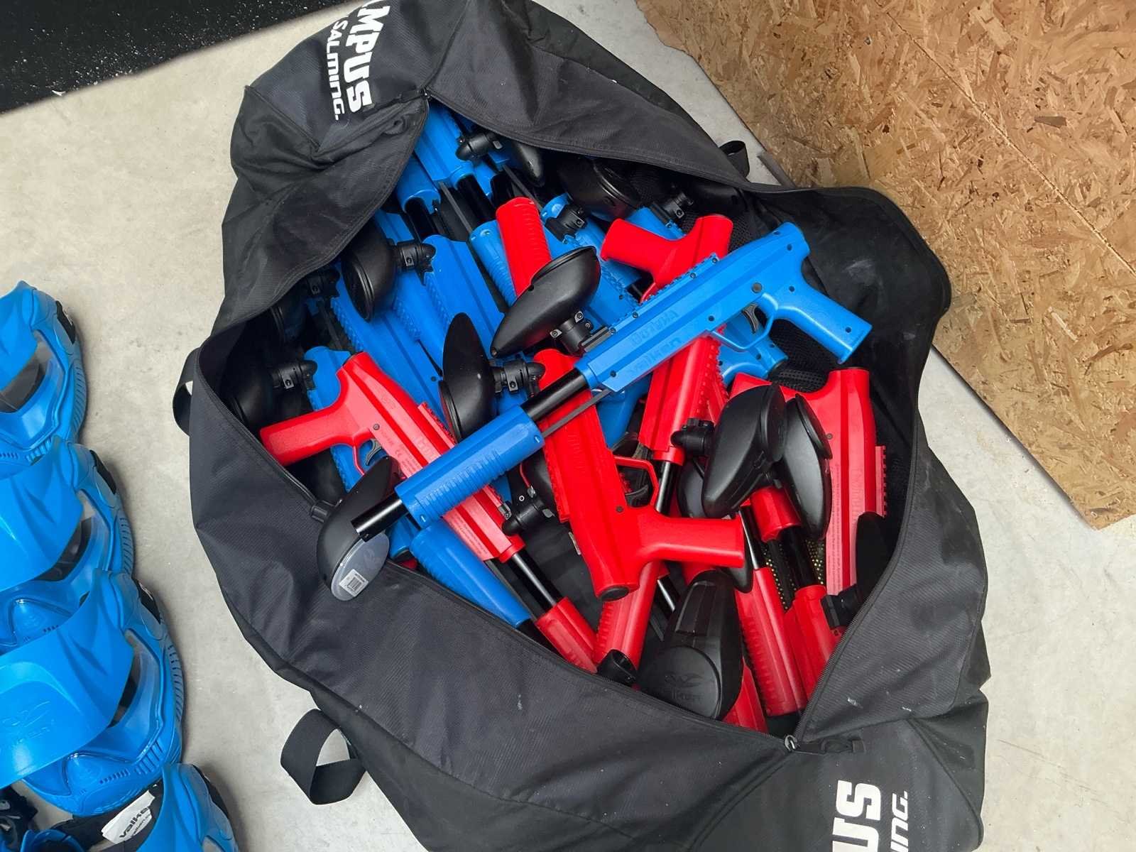 Mogelijkheid om met 20 personen te paintballen dus 20 shotguns 20 vesten en 20 maskers Ophaal datum 06/03/2026 en 09/03/2026 No Merk: Valken Model: Paintbal en rebals Kleur: Blauw en rood