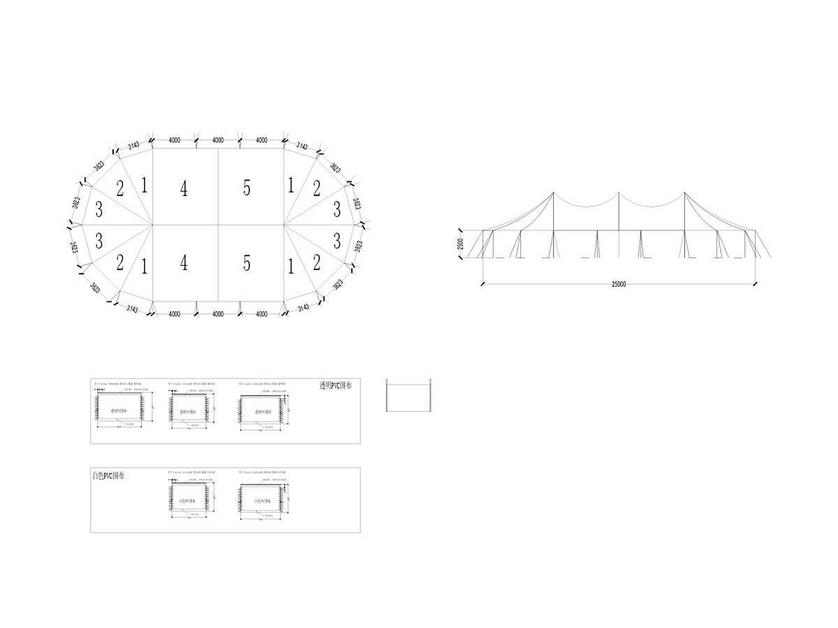 Hoofdzeilen, zijkant zeilen en kopstukken uit ijzer voor op palen. Zonder houten palen No Kleur: Wit Lengte: 14000cm Breedte: 25000cm