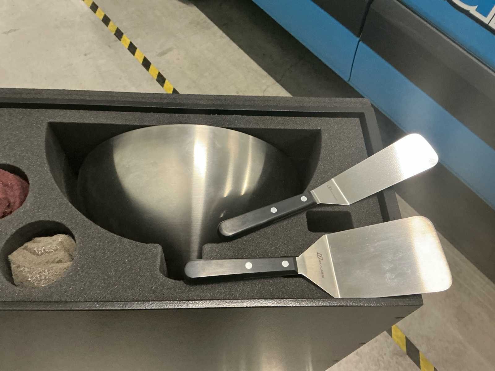 Qookingtable TS 90 in Flightcase met accessoires -diameter 90cm -kookzone 60cm -warmhoudzone 10cm -koude zone 10cm No Merk: Qookingtable Model: TS 90
