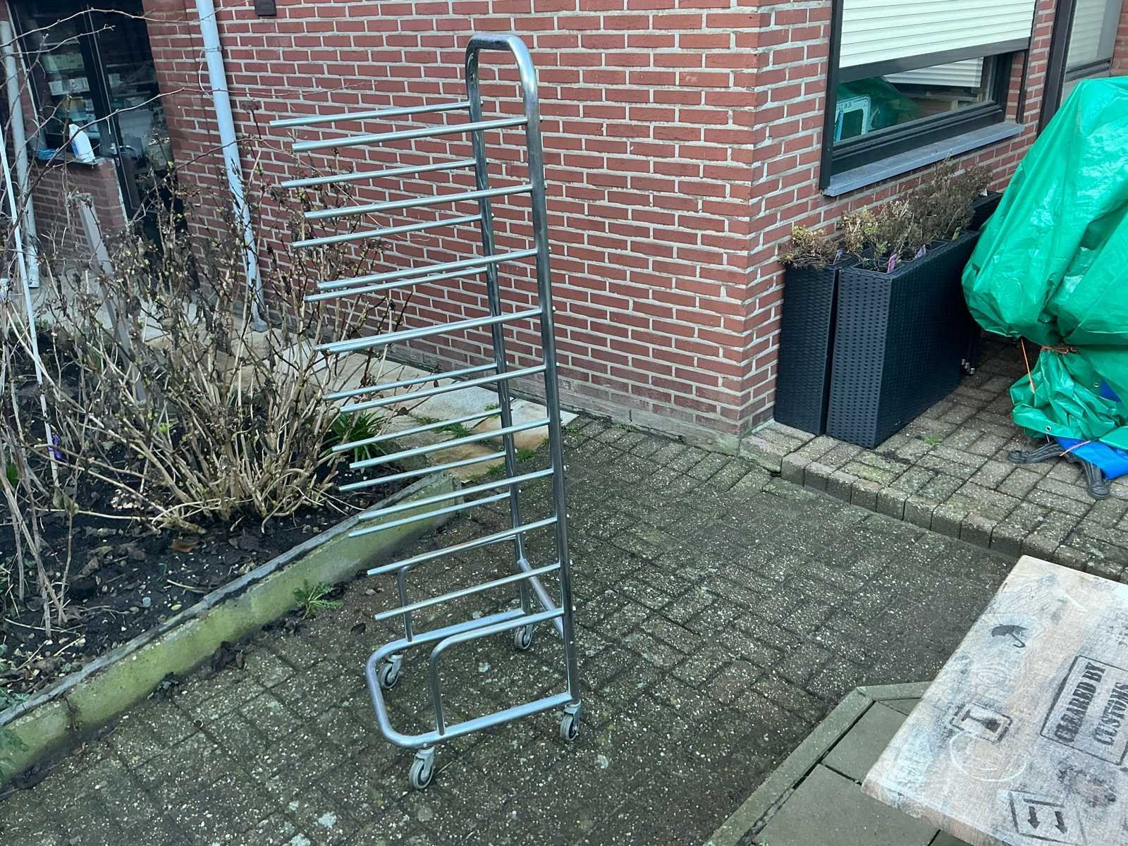 Reclamebord inox en rek overige keukenbenodigdheden