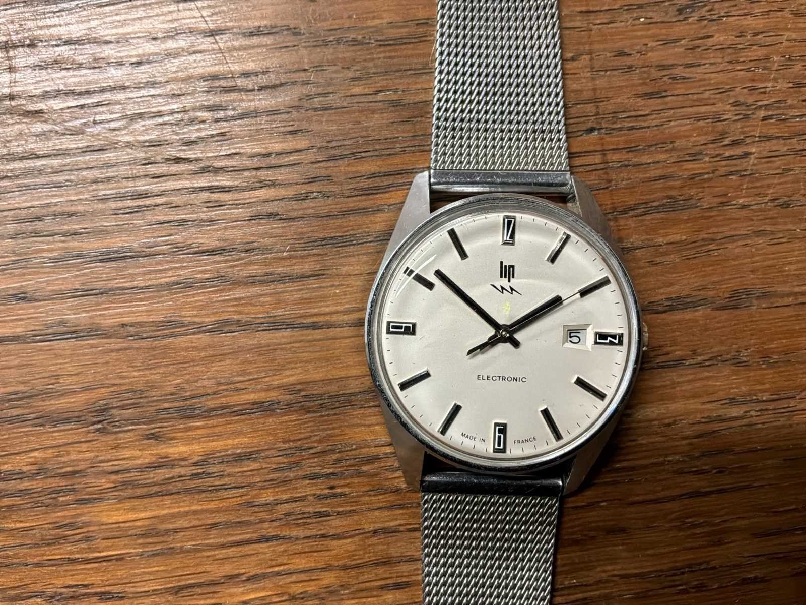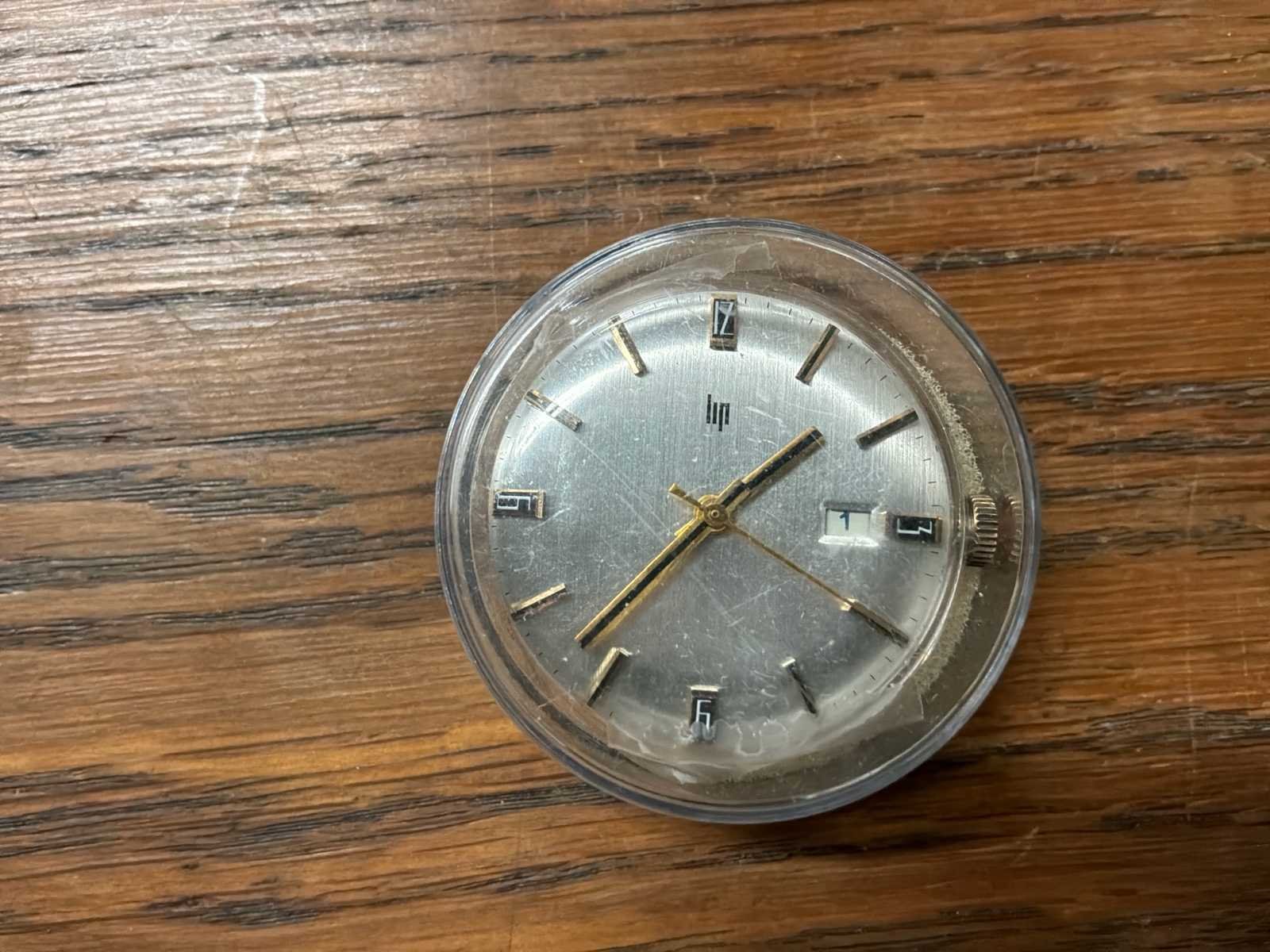 Bekijk als onderdeel van een partij op een veiling Tussen de jaren 50 en 60 in goede staat. No Merk: Lip Model: Électronique R184 + lip mecanique Kleur: Bruin en grijs