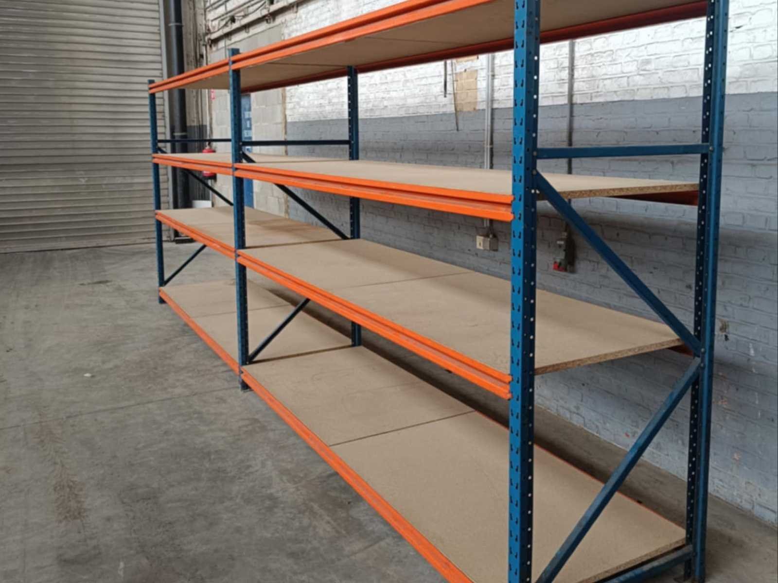 3 ladders van 280 cm + 8 verdiepingen van 280 cm Gedemonteerde batch No Merk: Minipal Polypal Model: Rayonnage d’entrepôt, mini rack (lot2) Kleur: Blauw - oranje Lengte: 515cm Hoogte: 200cm Breedte: 80