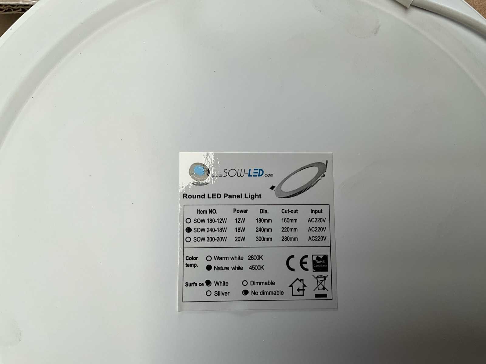 Lot van 77 nieuwe stukken No Merk: SowLed Model: 240mm 18W 4500K SMD Spanning: 220V Kleurtemperatuur: 4500K Diameter circa: 240 Wattage: 18W