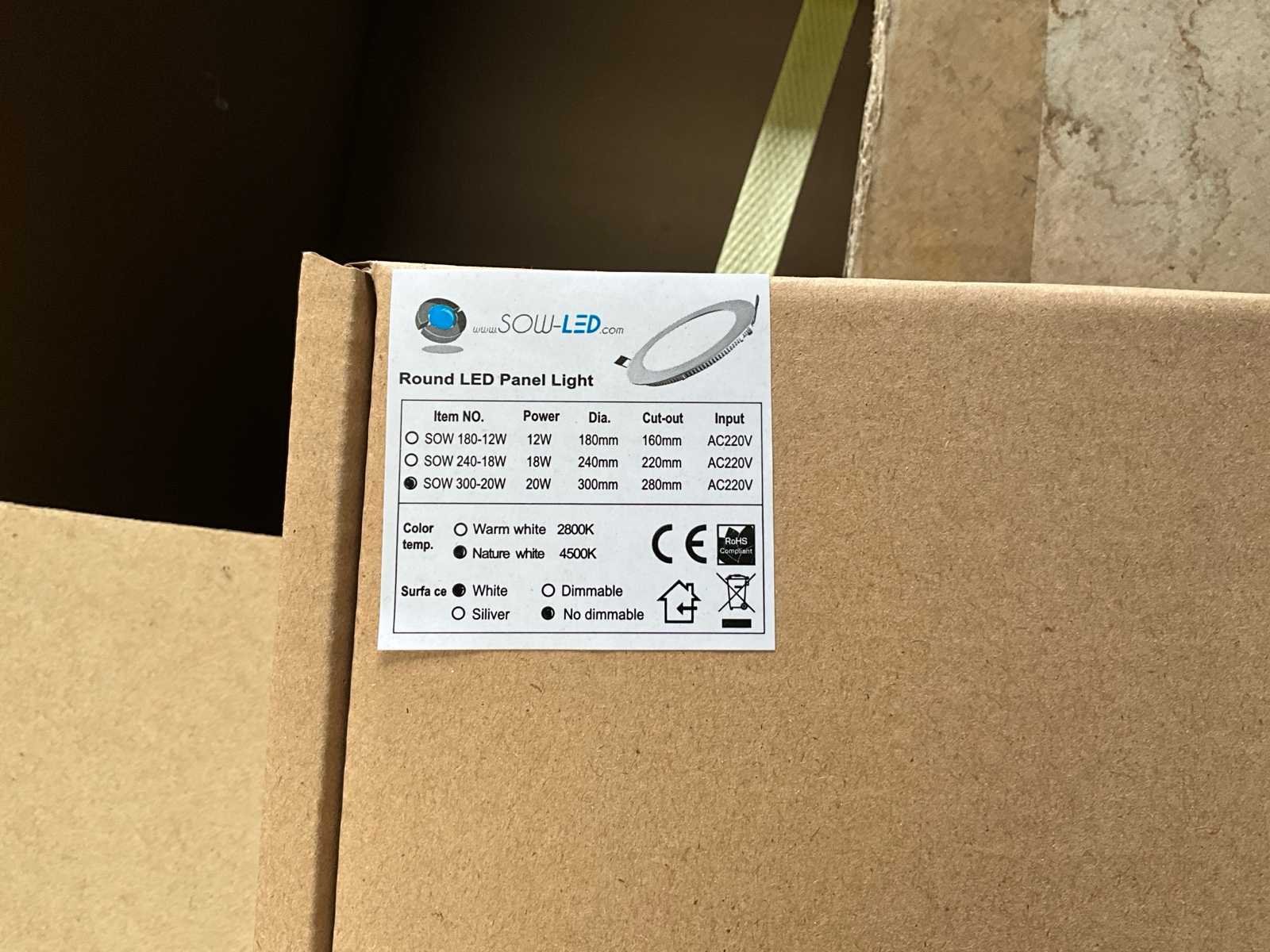 Set van 54 nieuwe stukken No Merk: SowLed Model: 300mm 20W 4500 K SMD Spanning: 220V Kleurtemperatuur: 4500K Diameter circa: 300 Wattage: 20W